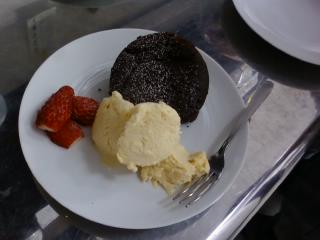 お知らせどおり、2/22は限定5皿でガトーショコラを出しました。