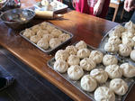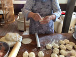 5日(土)は手作り肉まん教室をやりましたよ。餃子(■■■)のときと同じK先生に本場中国の味を教わりました。 有報堂のピザ用ののし棒だと大きすぎるので、ラップの芯を使って皮を伸ばします。そんな手があったとは。 皮作りの合間に 具を作ります。具は 肉まんで大根とセロリ初めてです。 具を皮で包みますが、 早くてみんな要領が飲み込めません。先生にゆっくりやって貰いながら 一人10個くらいは貰えました。 通常の 作りましたよ。先生お手製のラー油で食べます。焼いたのも美味しい。そして、セロリ入りが物凄く美味! 堪能しました。 ずっと出張営業で肉まんをやってみたいと思っていたから、来年の出張営業では挑戦するかもしれません。 ※12月の営業のお知らせは、11/27の記事(■■■)にあります。ブログ右側の営業カレンダーもご覧下さい。 ※カイロは予約制にて営業しております。予約が埋まってしまいご希望のお時間を承れないことが増えてきましたので、お早めにお問い合わせ・ご予約をいただきますようお願いいたします。