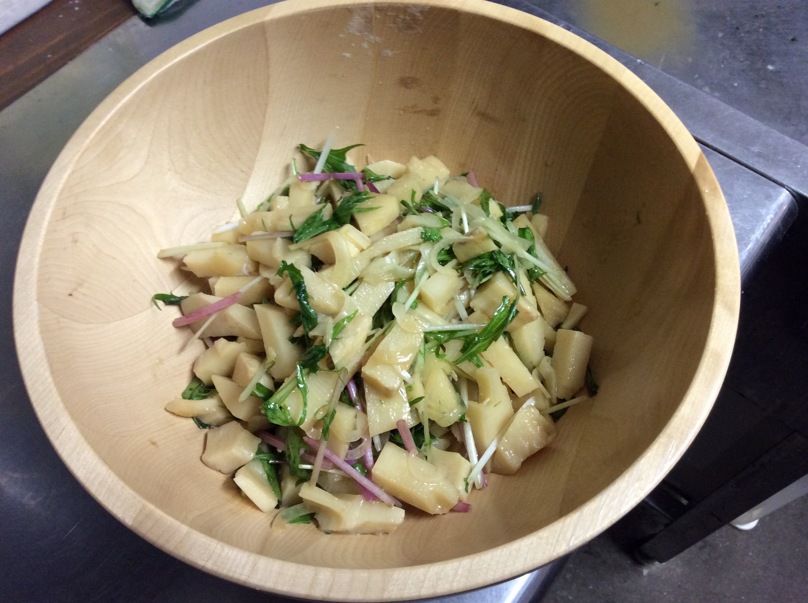 日中の気温がかなりあがってきたので、いつもより早く始めました。 氷が溶けても薄くならない!氷が溶けるのを待ちながら、ゆっくり飲むのがお薦め!本を読みながら、ゆっくり飲む。ブックカフェにぴったりのドリンクです。 冷たいコーヒーの氷に冷たい牛乳。冷え冷えきんきんのコラボ。さあ召し上がれ。 最近は、追い牛乳(100円)をするお客さんも。みんな色々考えますね。 夏季限定ドリンクを始めたので、秋冬限定ドリンクは終了です。またシーズンをお待ちください。材料はあるので対応は出来ますけどね。朝晩はここ西箕輪は寒い(今朝の気温は2度。有報堂の仕事が終わる頃は、最近はいつも7度位です)ので、まだ秋冬ドリンクのほうが良いかもしれません。 ※5月の営業のお知らせは4/25の記事(■■■)にあります。ブログ右側の営業カレンダーもご覧下さい。 ※カイロは完全予約制にて営業しております。早めに電話または窓口でお問い合わせ・ご予約をいただきますようお願いいたします。 「飛び石でも連休があればいいじゃないか」と有報堂Aがラジオに向かって叫んでいます。 世の中は、ゴールデンウィークらしい…長い人は11連休の方もいるとか。有報堂は、いつも通りと言うかいつもよりもよく働いています。今日から5月11日(日)まで通し営業です。「どこかでサボろうかしら」と有報堂Aが小声でつぶやいています。 有報堂カフェのお食事予約。コース料理をご注文いただくと、当たり前ですが通常とはちょっと違ったメニューが出ます。 筍のシーズンになりました。 が人気です。今日もお出ししました。 有報堂では、ゴールデンウィークから、筍天国です。 写真のサラダは、新玉ねぎと筍をベースに、水菜を入れました。 新玉ねぎと筍がポイントです。味付けは、オリーブオイルとかけぽんで洋風にしました。今回は洋風にしましたが、オリーブオイルを菜種油に代えて和風にしても美味しいです。酒の肴にもなります。 この筍サラダは、通常メニューのスープサラダセット(¥250)で、お出しすることもあります。珍しい筍サラダを食べに来ませんか。 ※5月の営業のお知らせは4/25の記事(■■■)にあります。ブログ右側の営業カレンダーもご覧下さい。 ※カイロは完全予約制にて営業しております。早めに電話または窓口でお問い合わせ・ご予約をいただきますようお願いいたします。