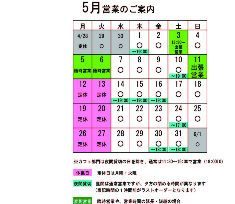5月の営業のお知らせです。