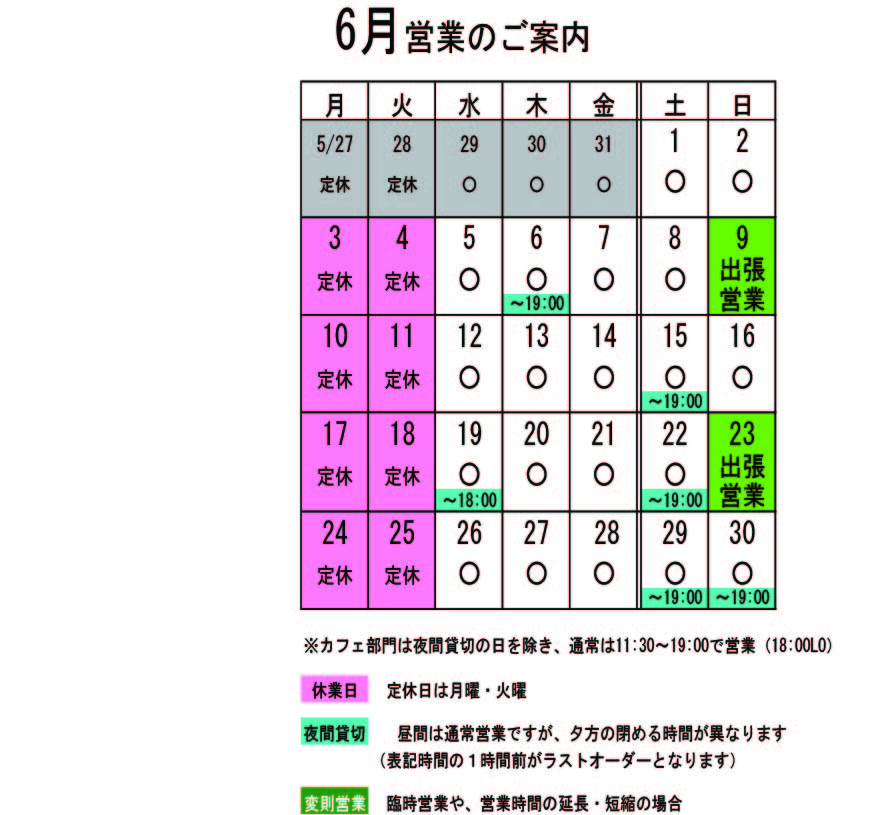 営業カレンダー