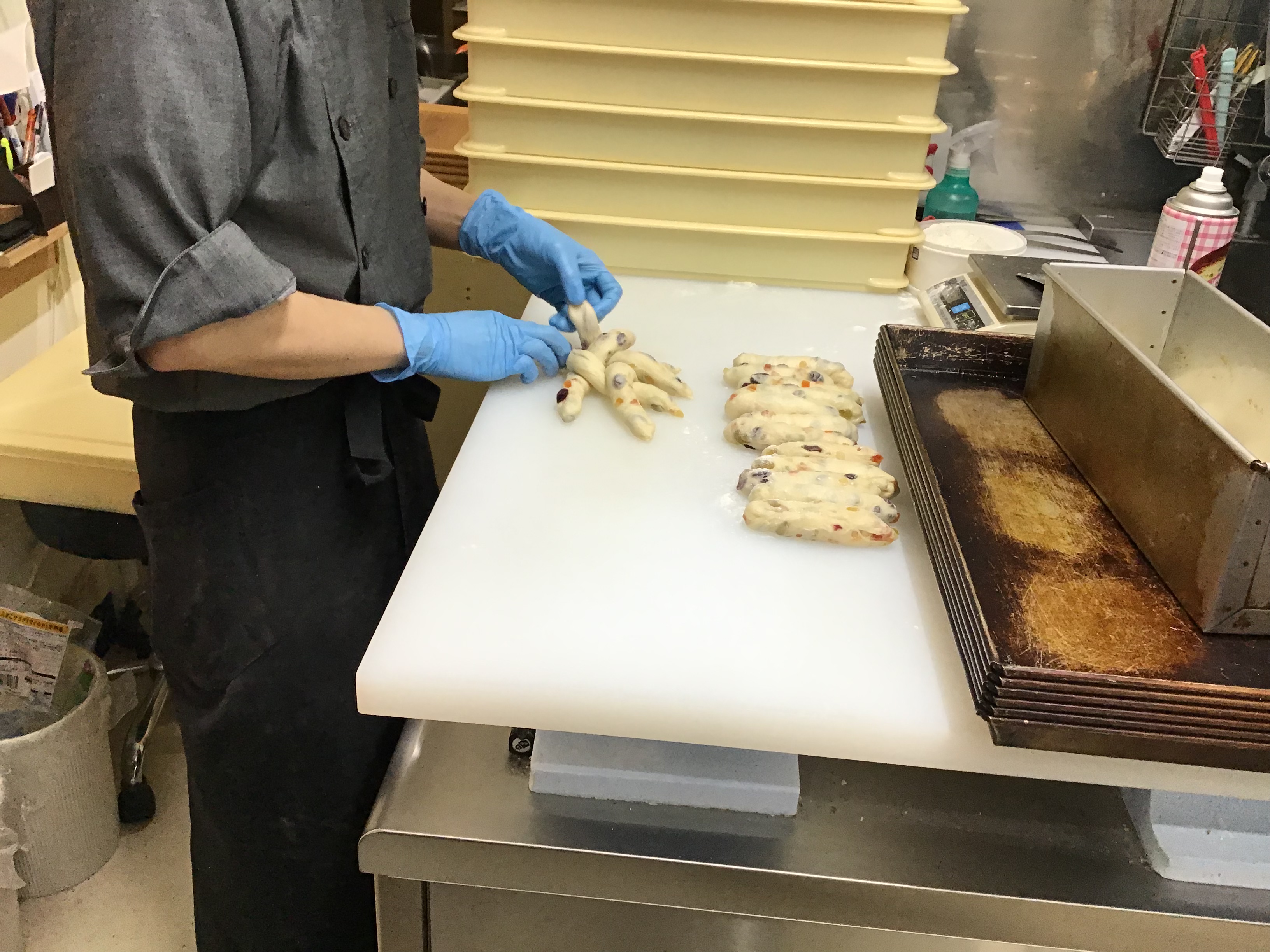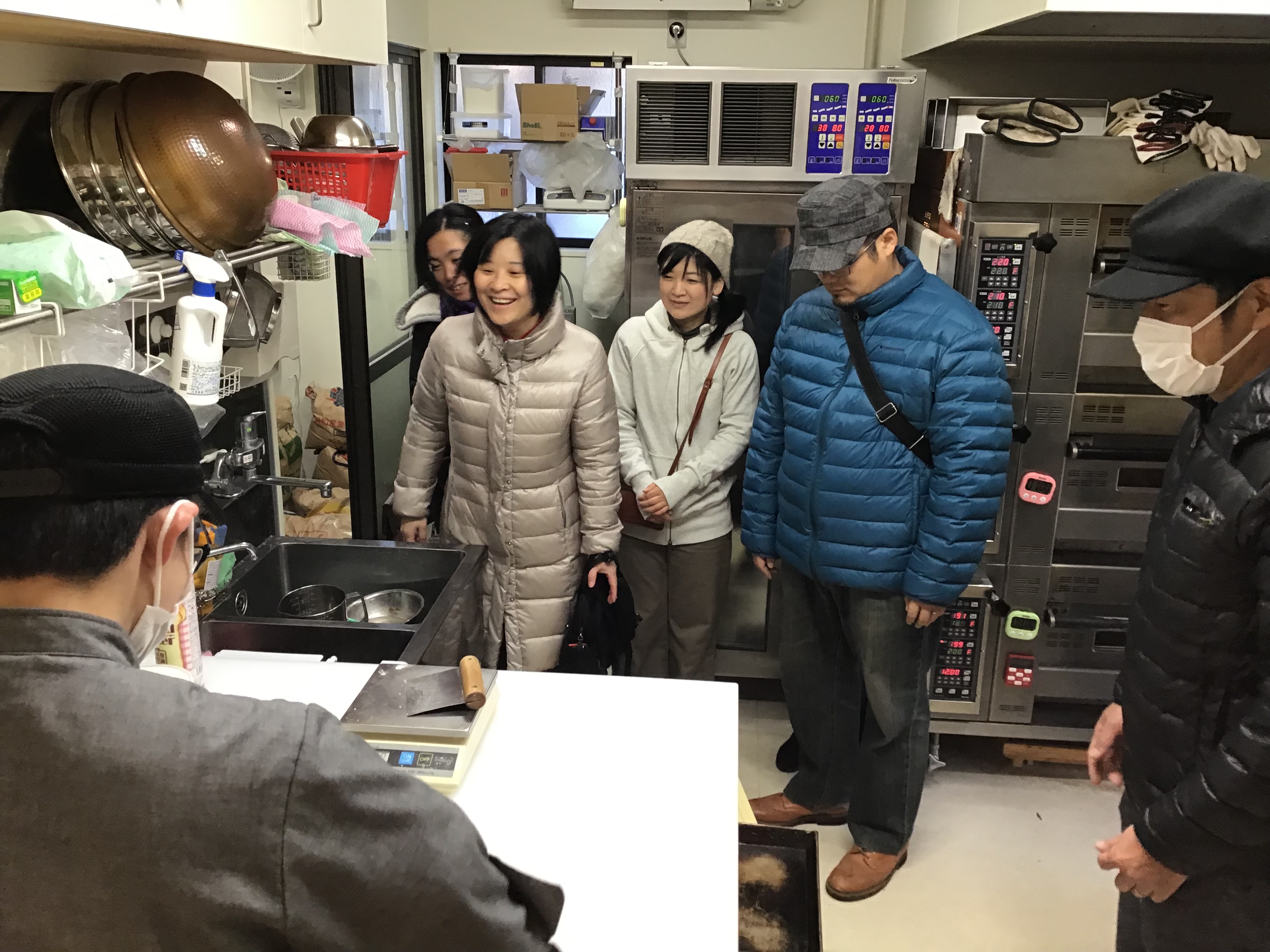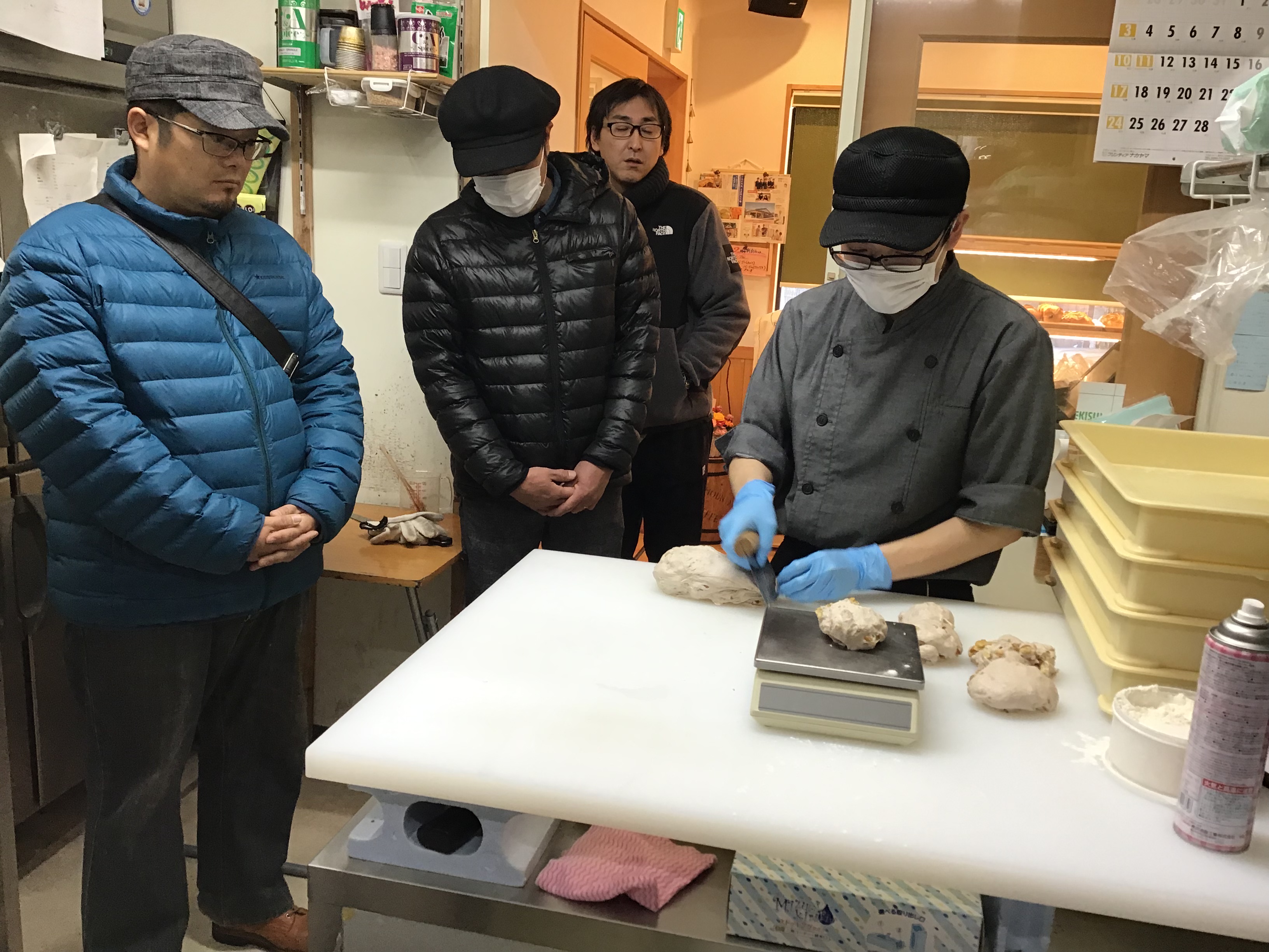 「ふきのとうピザ始まっていますか」先週から、問い合わせが続いていました。 3月の営業のお知らせです。 月・火が定休日です。 ↑↑↑ クリックすると大きくなります。 3月変則営業 13日(水)予約のため終日貸切 20日(水)予約のため終日貸切 31日(日)終日出張営業 貸切の予定は、 3月 3日(日)夜貸切 16日(土)夜貸切 17日(日)夜貸切 24日(日)14:00まで貸切 となっております。夜貸切の日は、通常営業は19:00までです。(いずれも通常営業の1時間前がL.Oになります) 貸切以外は通常営業をしています。 ぜひお立ち寄りください。 夜の予約営業も貸切日以外は受け付けていますので、 お気軽にお問い合わせください。 ※カイロは完全予約制にて営業しております。早めに電話または窓口でお問い合わせ・ご予約をいただきますようお願いいたします。 久々に愉快な仲間達(上伊那民商青年部)の「お仕事訪問」をやりました。先週の日曜日10日の午前中にやりましたよ。3連休の中日でもおかまいなし。自営業者は、連休はほとんど関係ないので、みんなで 今回は、昨年2月にオープンした。パン屋の「コフレ」に突撃♪オープンと同時に愉快な仲間になった偉い人です。 有報堂でもラザニアコース(■■■)や出張営業のサンドイッチなどで大変お世話になっています。 7時にお店に向かいましたが、 通常は、4時頃から作業開始だそうです。予約などがあると2時から働くときも…大変です。 作業がたくさんあるというので、朝一からの訪問は遠慮して、7時からにしました。あんまり早いとこちらの仕事にも支障をきたすからね。 まずは、成形の 90種類のパンを作ります。ほぼ毎月のように新作を作っています。 クランベリーのパン。 みんな「三つ編みかと思ってた」とつぶやいています。 最近売り始めた この日は、プレーンとクランベリーとチョコチップを作っていました。コフレのベーグルは、茹でずに蒸気で蒸すそうです。一人で作っているから、手間を省かないとね。 成形し終わると 発酵機(?)に入れています。 当たり前ですが、発酵すると さっきのクランベリーのパンです。 発酵が終わると パン屋さんは、このオーブンの設備投資が大変なのです。 パンが焼けたら終わりと思ったら、 するパンもあり、 ブログで書くと一つずつの作業を時間差でやっているように思えますが、全部並行してやっています。もの凄い作業量です。 久々に職人の仕事を見たと、愉快な仲間たちが感動しています。この感動をブログでは伝えきれない(>_<) オープン前なのに、焼きあがったパンを我先にと買って、食べたりしているので、最後は流れ解散っぽくなってしまいました。 次は誰のところにお仕事訪問行こうかな♪ 自分も愉快な仲間(上伊那民商青年部)のメンバーになりたい!という方大歓迎! 有報堂か上伊那民商(tel 0265-72-0550)までどしどし連絡を。お待ちしております。 ※2月の営業のお知らせは1/27の記事(■■■)にあります。ブログ右側の営業カレンダーもご覧下さい。 ※カイロは完全予約制にて営業しております。早めに電話または窓口でお問い合わせ・ご予約をいただきますようお願いいたします。