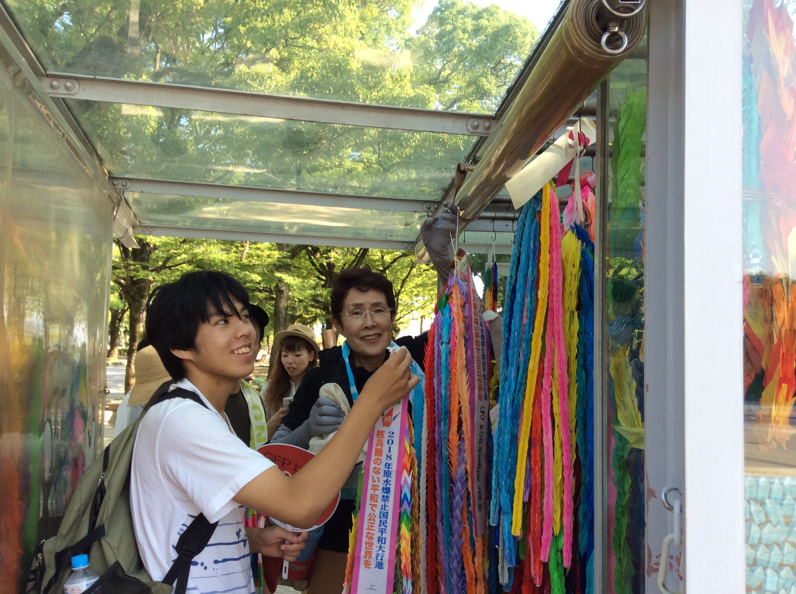 毎年広島、長崎を交互に訪問していますが、今年は、 行きましたよ。 皆さんに、ご協力頂きました折り鶴も奉納してきました。 一緒に行った初参加の学生さんなどに 貰いました。皆さんの折った鶴もこのなかに。ご協力ありがとうございました。今年も、広島市の折り鶴データベースへ有報堂として登録してきました。一昨年(2016年)のデータは、既に登録(■■■)されています。お時間あったら覗いてみてください。 今年は、土日も絡んだため広島市内に宿が取れず、初めて呉市に泊まりました。ので、 もオプションツアーでやってきました。 このツアーは半年以上前から準備をしているので、豪雨災害など予想もせず、呉市の宿を手配しましたが、高速も鉄道も1ヶ月たった今でも不通で、普段なら広島市から呉市へは20〜30分位の移動で済むそうですが、今回は2時間かかる日もありました。 災害復旧にはまだまだ時間がかかりそうな気配でした。折角呉市まで出かけたので、皆様から頂いた義援金を有報堂代表から ご協力いただいた義援金は、35,274円でした。ありがとうございました。 昨年7月に国連で人類史上初めて核兵器禁止条約が採択され、国際NGO・ICANがノーベル平和賞を受賞し、世界は確実に核兵器廃絶の方向へ進んでいます。それを更に推し進める活動をみんなでしたいと思っています。 その一歩が、平和のブックフェア(■■■)であり、折り鶴だと思っています。来年に向けて、早くも鶴を折ってくださっているお客様がいます。この小さな一歩が平和に繋がります。皆さんと一緒に平和を考えて商売をしたいと思っています。 ※8月の営業のお知らせは7/26の記事(■■■)にあります。ブログ右側の営業カレンダーもご覧下さい。 ※カイロは完全予約制にて営業しております。早めに電話または窓口でお問い合わせ・ご予約をいただきますようお願いいたします。 |