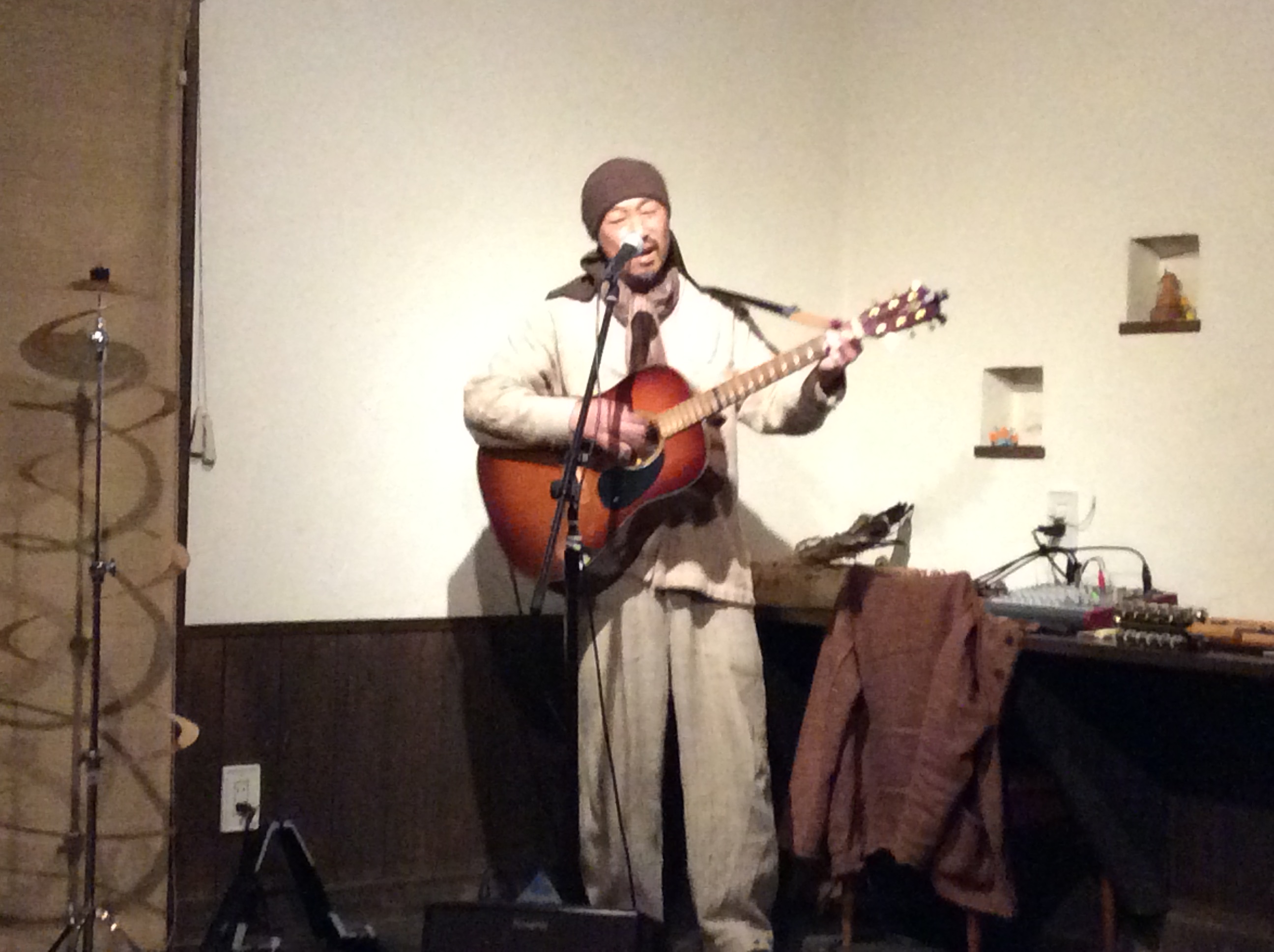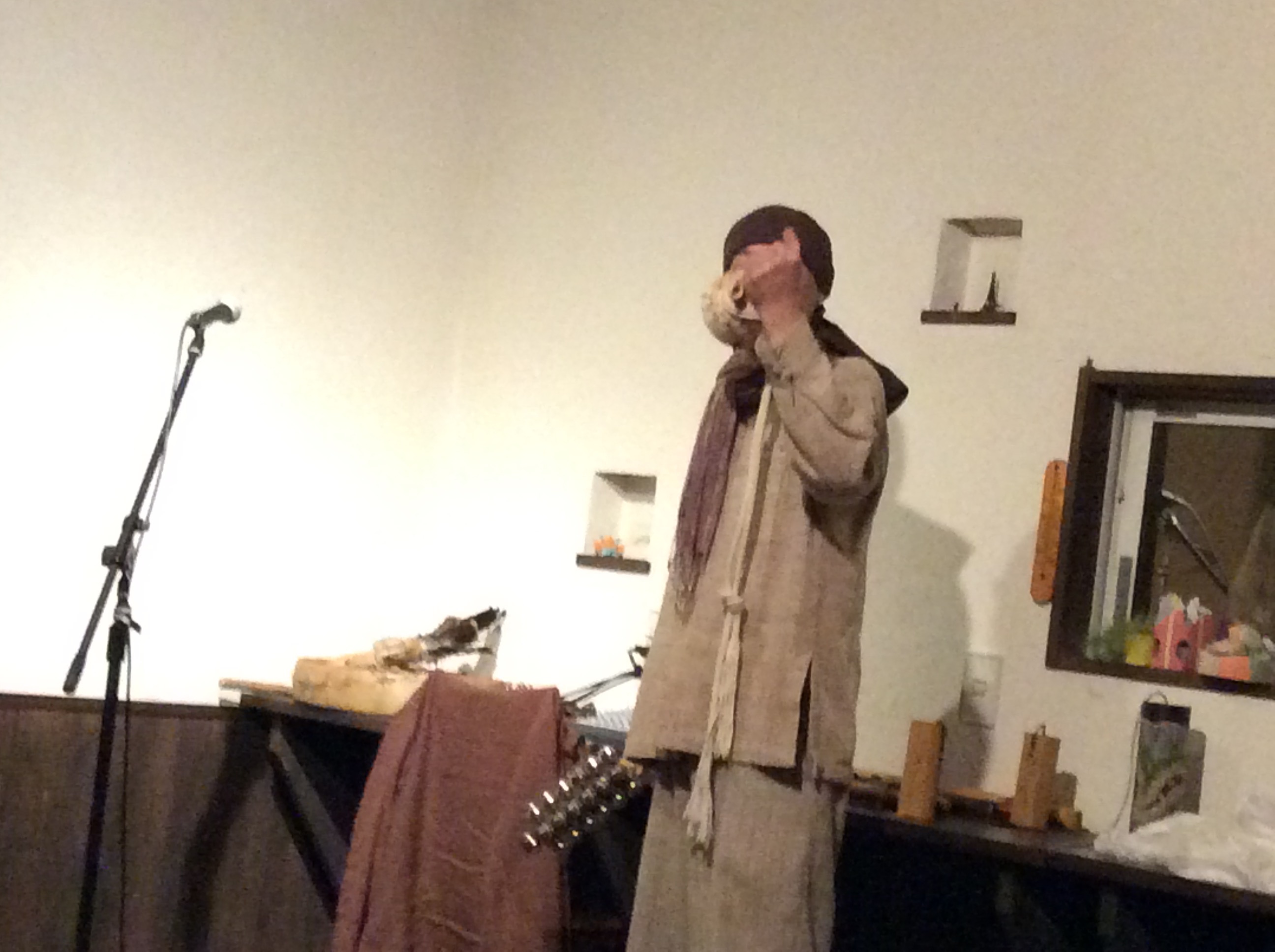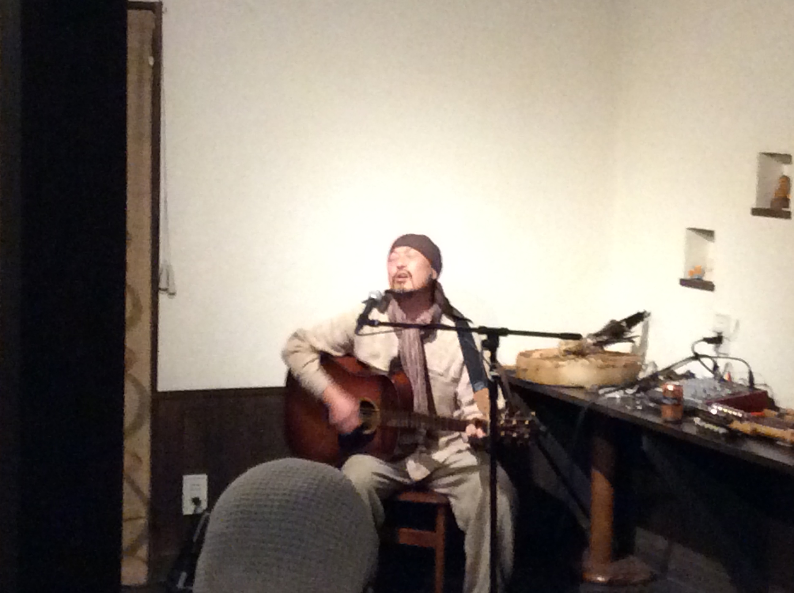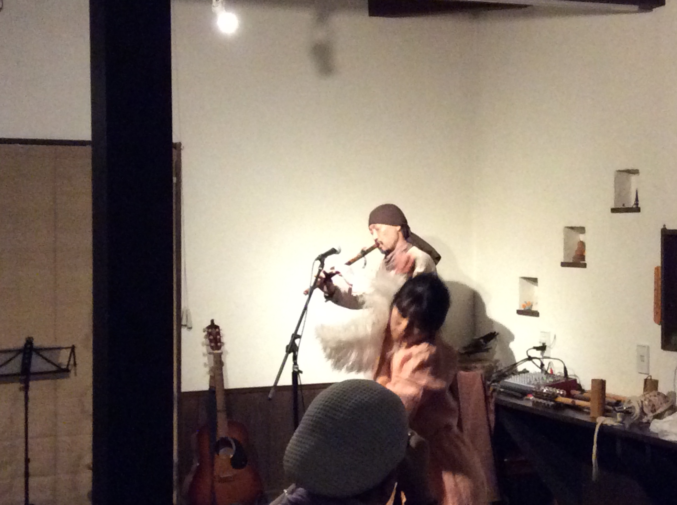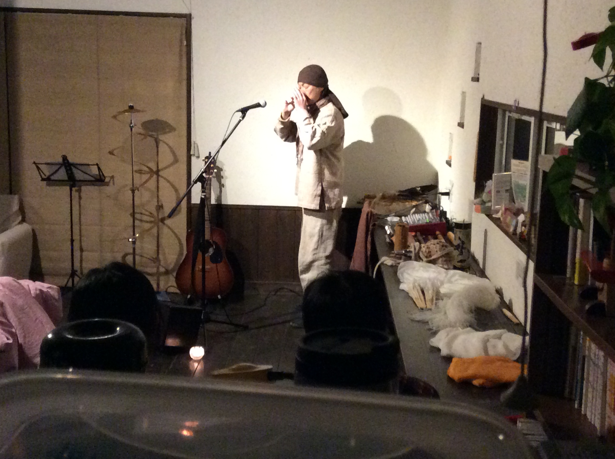 今年の冬は寒かったので、いつ始められるかと心配していましたが、この暖かさで一気にふきのとうが芽吹きました。 ついにきた!このシーズンが。 はじめました。 季節のピザで一番人気!ふきのとうピザ。ほろにが春の味。これを食せば春が始まる、ふきのとうピザ。ビールが合うふきのとうピザ。運転手が確保出来る方は、急いでビールも注文だ!残念ながら、ビールが飲めない方は、濃い水出しコーヒーがお薦め! 季節限定ピザでは、一番期間が短いふきのとうピザ。食べ逃しのないように有報堂へ急げ! ※3月の営業のお知らせは2/25の記事(■■■)にあります。ブログ右側の営業カレンダーもご覧下さい。 ※カイロは予約制にて営業しております。予約が埋まってしまいご希望のお時間を承れないことが増えてきましたので、お早めにお問い合わせ・ご予約をいただきますようお願いいたします。 忙しくてなかなかブログの更新ができていません。反省… 昨日は、営業のお知らせでちょっとだけお知らせしていたライブの日でした。 有報堂初登場のシャーマニック・ユニット華宮夜(かぐや)の 第1部は、chamaこと鈴木茂生さんと 大須賀 望恵さんのユニット「 華宮夜 」の演奏と舞でした。鈴木さんは、羽黒古修験道の山伏だそうです。華宮夜は、各地で奉納舞をしているそうです。 かなり 名前を全部覚えきれませんでした。有報堂Aが気に入ったのは、 「クワーンワーン〜」とずっといってます。 と、 山伏がライブにくると聞いた時から、山伏は法螺貝を持ってくるのだろうかと気になっていたのです。良い音でした。 第2部は、chamaの でした。こちらはブルースで、とっても渋くて良い感じでした。 ご来場いただいた皆様、華宮夜のお二人もありがとうございました。 ※3月の営業のお知らせは2/25の記事(■■■)にあります。ブログ右側の営業カレンダーもご覧下さい。 ※カイロは予約制にて営業しております。予約が埋まってしまいご希望のお時間を承れないことが増えてきましたので、お早めにお問い合わせ・ご予約をいただきますようお願いいたします。