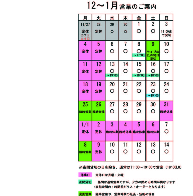 営業カレンダー