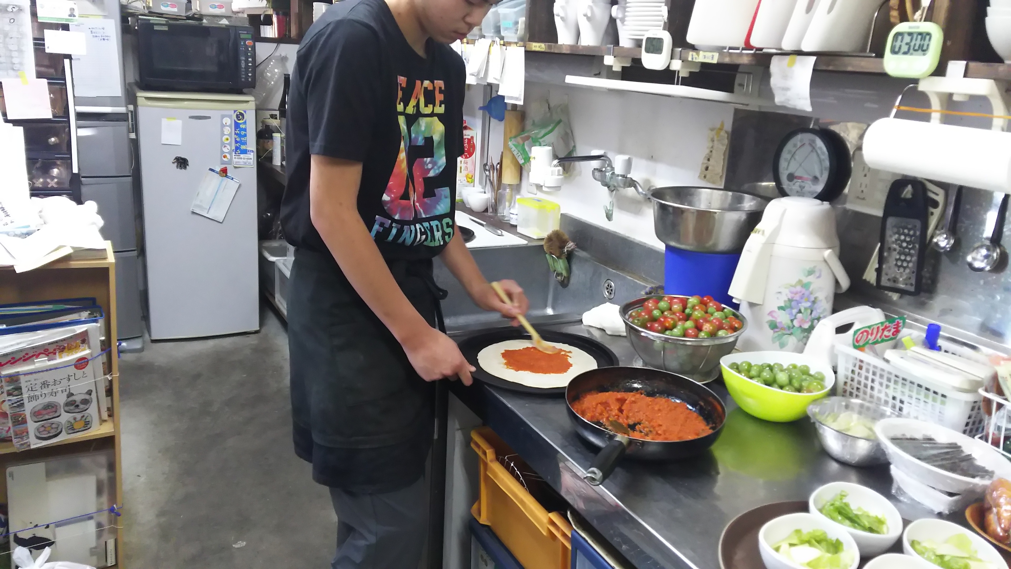 有報堂カフェのお食事予約。コース料理をご注文いただくと、通常とはちょっと違ったデザートが出ます。 最近予約で人気のデザートは、 今年は、どういうわけかたくさん柿を頂くので、シャーベトにしてみました。これが、きちんと柿の味がして美味しいんだな。「タッパーで買いたい」というお客様も。 予約はデザートも特別♪あなたも予約でしか食べられない、特別メニューを食べてみませんか? ※11月の営業のお知らせは10/25の記事(■■■)にあります。ブログ右側の営業カレンダーもご覧下さい。 ※カイロは予約制にて営業しております。予約が埋まってしまいご希望のお時間を承れないことが増えてきましたので、お早めにお問い合わせ・ご予約をいただきますようお願いいたします。 大好評の製本教室。先月は糸綴じノート(■■■)をやりましたが、いよいよ手帳のシーズンなので、ハードカバー製本をやりますよ。 日 時 11月23日(木・祝)13:00〜 参加費 2,000円(製本材料費、お茶・お菓子代込み) ※文庫・新書サイズより大きなものを製本する場合は、追加料金がかかります 持ち物 製本したい手帳や文庫本・製本に使う布・はさみ・定規 定 員 8名(定員になり次第受付終了) お申し込みは、有報堂(76-4353)まで。 あなたもお気に入りの本で、お気に入りの布で、自分だけの世界に一つしかない、特別な一冊を作りませんか。ご予約、お待ちしております。 いよいよ手帳のシーズンです。今年も手帳の製本をしたい!というあなた!お気に入りの手帳と布を見つけてぜひご参加くださいね。 ポケットつきの布を使えば、 一昨年製本した手帳(■■■)です。これはエプロンで作りました。有報堂は、必ず古着で作ると決めていますが、お客さんは新しい布を買ってきたりもしています。布選びも楽しいですね。 糸綴じノートもハードカバー製本も、3人以上集まれば皆様のご都合に合わせて日程を組みますので、お気軽にお問い合わせください。 今年は、糸綴じノートの手帳も研究中です。 ※11月の営業のお知らせは10/25の記事(■■■)にあります。ブログ右側の営業カレンダーもご覧下さい。 ※カイロは予約制にて営業しております。予約が埋まってしまいご希望のお時間を承れないことが増えてきましたので、お早めにお問い合わせ・ご予約をいただきますようお願いいたします。 久々の新メニュー 登場です。 以前このブログでもご紹介した(■■■)飯島町の「越百農産」のなめこを使っています。これまで、越百農産のなめこは、コース料理でしか使っていませんでしたが、ついに通常メニューに登場しました。 通常よりも大きサイズのなめこです。歯ごたえもしかっりあって、ぬめりもしっかりあって、うどんと合います。 冬の時期にぴったりのポカポカうどんです。さあ、召し上がれ。 ※11月の営業のお知らせは10/25の記事(■■■)にあります。ブログ右側の営業カレンダーもご覧下さい。 ※カイロは予約制にて営業しております。予約が埋まってしまいご希望のお時間を承れないことが増えてきましたので、お早めにお問い合わせ・ご予約をいただきますようお願いいたします。 今週は、水曜日から今日まで三日間中学生職場体験がありました。今年5校目です。伊那中の生徒さんです。 中学生職場体験は、「地域で子どもを育てよう」がコンセプト。有報堂もその趣旨に賛同して、毎年受け入れを行っています。 今回は、三日間の上にお一人だったので、ありとあらゆることをやりました。 まず、民商と有報堂の説明を受けたら、1日目はずっと お昼は、 おやつは、 お土産は、 チョコバナナマフィン。この間にも、次の日の仕込みや接客など休む間もありません。 2日目は、朝のお掃除をしたら、午前中はカフェでお昼を作ります。 塗っているトマトソースは、前日自分で作ったものです。今日は、お土産もピザです。 お昼は、 午後は、まずはカイロプラクティックの講義です。 その後、 身体が整ったら これまでの中学生で、一番斧で割るのがうまかったです。 お祖父ちゃんの家のお風呂は薪で沸かしていて、薪割りも手伝ったことがあるそうです。 おやつは、白黒ゼリー。前の日に自分で仕込んだものです。 3日目は、お掃除をしたら、ひたすら大根を洗っています。昨日たくさん頂いたので、処理をしているのです。その後、お昼ご飯を作ります。今日のお昼は、ねばねば丼、里芋の煮物、なめこ汁とねばねばづくし。 午後は、お土産の おやつの カイロで 元々カイロプラクティックに興味があったそうなので、今回は2日間体験してみました。 ようやく最後のおやつです。 綺麗に盛り付けができました。 大忙しでしたが、ホッと一息です。今日のお土産は、アップルパイ6個。ご家族は5人ですが、妹に二つあげたいと自己主張したので、6個もらえました。しかも、1日目のお土産バナナマフィンは、家族が勝手に食べて自分は一口も食べられなかったということで、バナナマフィンもおまけで貰いました。自