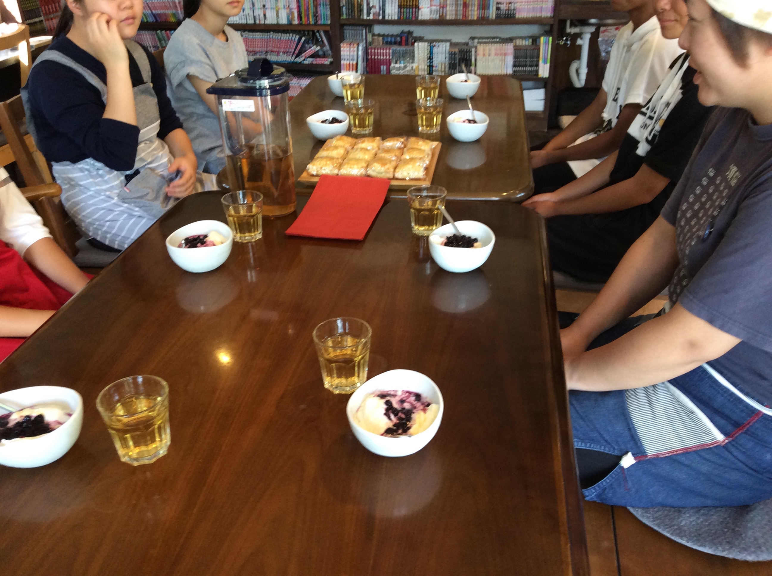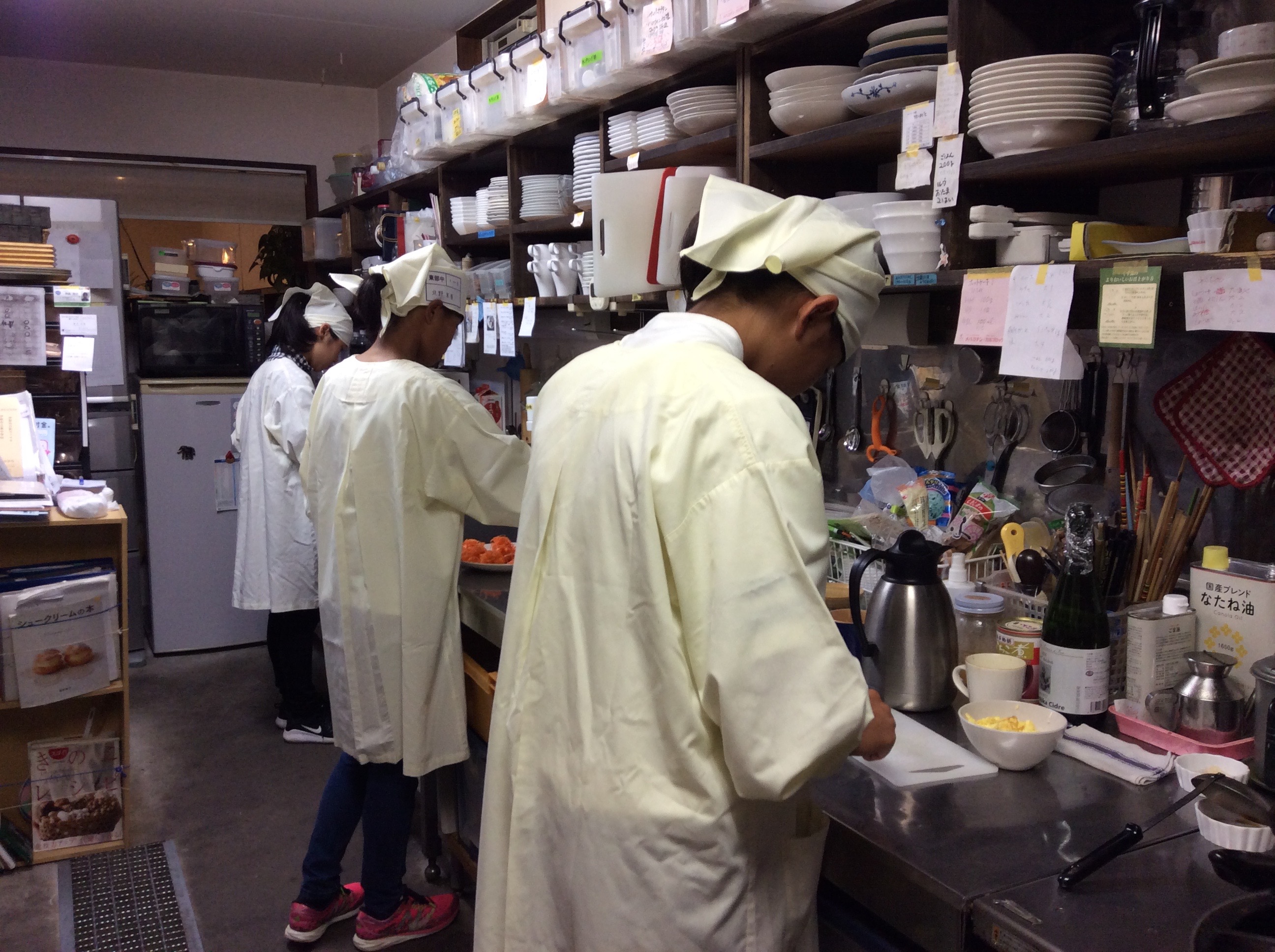 中学生職場体験は、「地域で子どもを育てよう」がコンセプト。有報堂もその趣旨に賛同して、毎年受け入れを行っています。 今回は伊那市最大の東部中学校の受け入れなので、人数も多い。5人の生徒さんがやってきました。5人もいるので、一日目と二日目で、カフェ組とカイロ・外仕事組と交換しながら体験します。 まず、民商と有報堂の説明を受けたら二手に分かれます。 1日目のカフェ組は、必ず 作ります。3人も厨房に入ると この日の3時のおやつは、 でした。頑張ってたくさん焼いたので、一人2枚食べられました。 お土産は このマフィンは、土曜日の出張営業(■■■ )でも販売しました。 カイロ組は、何と 挑戦しましたよ。生憎の雨だったので、外回りの仕事はできませんでした。 2日目のカフェ組は、 その他ひたすら ネギを刻んだり、こんにゃくをちぎったりと出張営業のお手伝いをしてもらいました。 その間隙を縫って、 お土産を作りました。おやつは、ブルーベリーサンデー。お土産は、チョコパイです。 2日目のカイロ組は、講義を受けたり、施術を受けたり、施術の見学をしたりしています。 金曜日は晴れたので、 やってみましたよ。 散々こき使われましたが、「面白かった」そうです。良かったです。仕事は、面白いけど大変。大変だけど楽しいがわかるといいなと思ってますよ。また、一緒に働きましょう。二日間ありがとうございました。 ※9月の営業のお知らせは8/27の記事(■■■)にあります。ブログ右側の営業カレンダーもご覧下さい。 ※カイロは予約制にて営業しております。予約が埋まってしまいご希望のお時間を承れないことが増えてきましたので、お早めにお問い合わせ・ご予約をいただきますようお願いいたします。