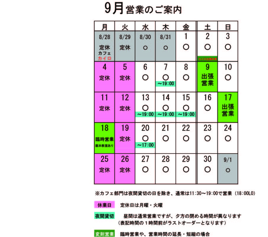 営業カレンダー