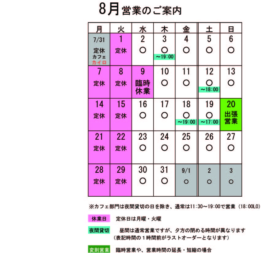 8月の営業のお知らせです。