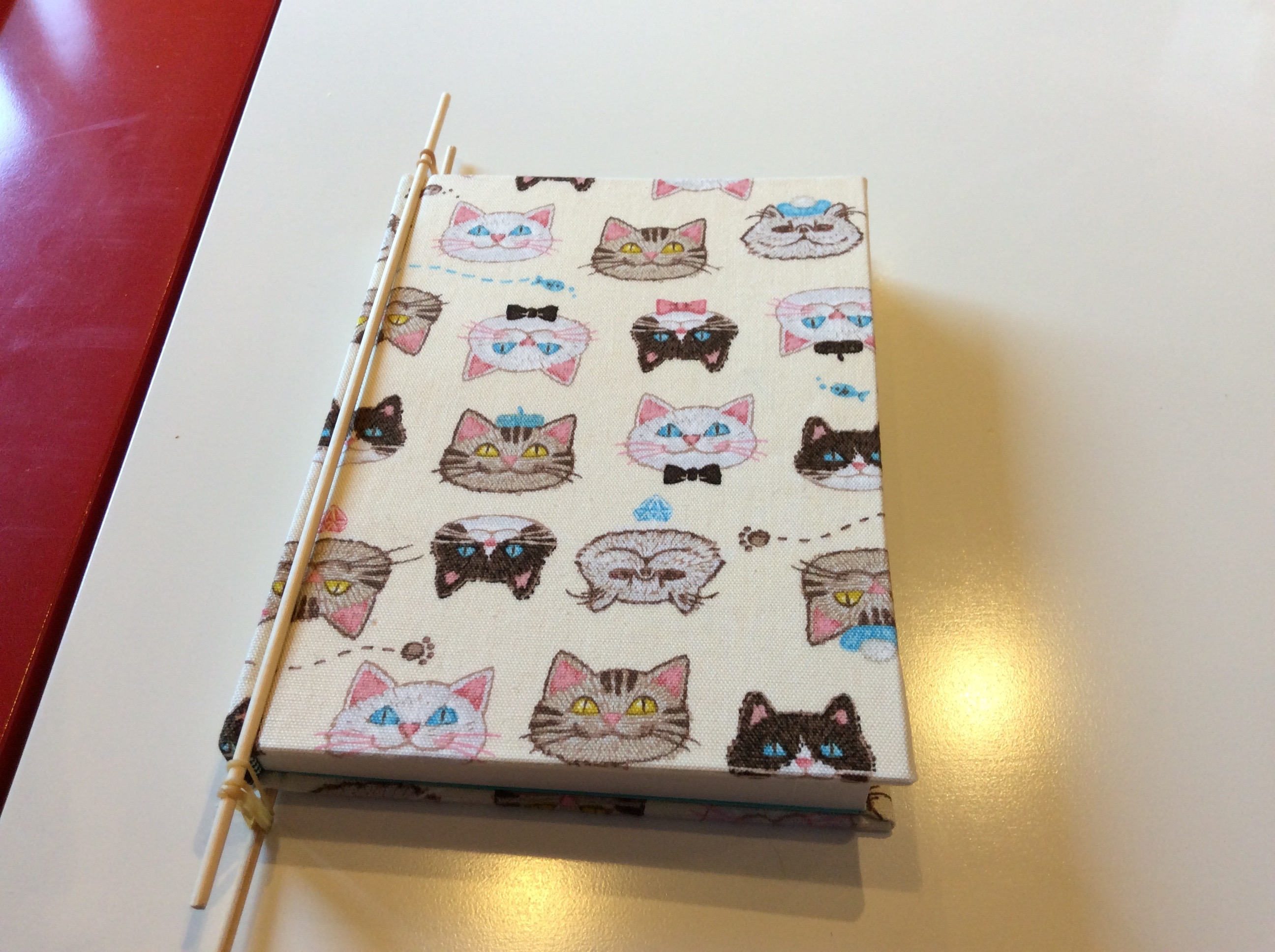 みんなでハードカーバー製本に挑戦! 3年ぶりくらいに参加したMさんは、 手ぬぐいで製本しました。 beforeはこんな感じ。 絵も思ったところに配置できましたよ。 これまでも大きめな本を何度か製本したBさんは、大型の 製本します。しかも2冊。 渋くて格好良く仕上がりました。大柄の模様が映えています。 最近毎回参加のMさんは、 こんなに 猫がなんとも言えません。 同じノートを有報堂Bは、 同じ布のストライプをまっすぐ使うか、斜めに使うかで ずいぶん違います。 有報堂Aは今年も人にプレゼントする手帳を製本しました。 手帳が 有報堂Aが使った布は、以前バイブルシャーロックホームズを製本するときに使った(■■■)Tシャツの残りです。あの時は、無地の部分だけを使いましたが、今回は残った柄のある部分を使いました。無地も良かったけどこっちもいいね。 回数を重ねると皆さん色んなアイデアが生まれますね。それぞれが、本人らしくて面白いです。 あなたも世界で一つだけの本を一緒に作ってみませんか。 好評につき1月も開催します。詳しくはまた。 ※12月の営業のお知らせは、11/26の記事(■■■)にあります。ブログ右側の営業カレンダーもご覧下さい。※カイロは予約制にて営業しております。予約が埋まってしまいご希望のお時間を承れないことが増えてきましたので、お早めにお問い合わせ・ご予約をいただきますようお願いいたします。 |