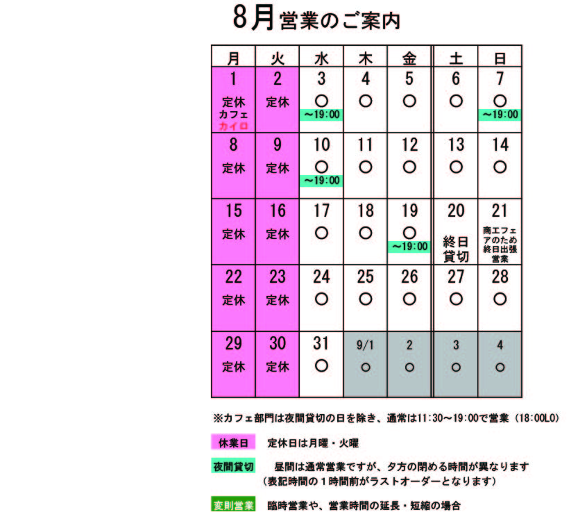 営業カレンダー