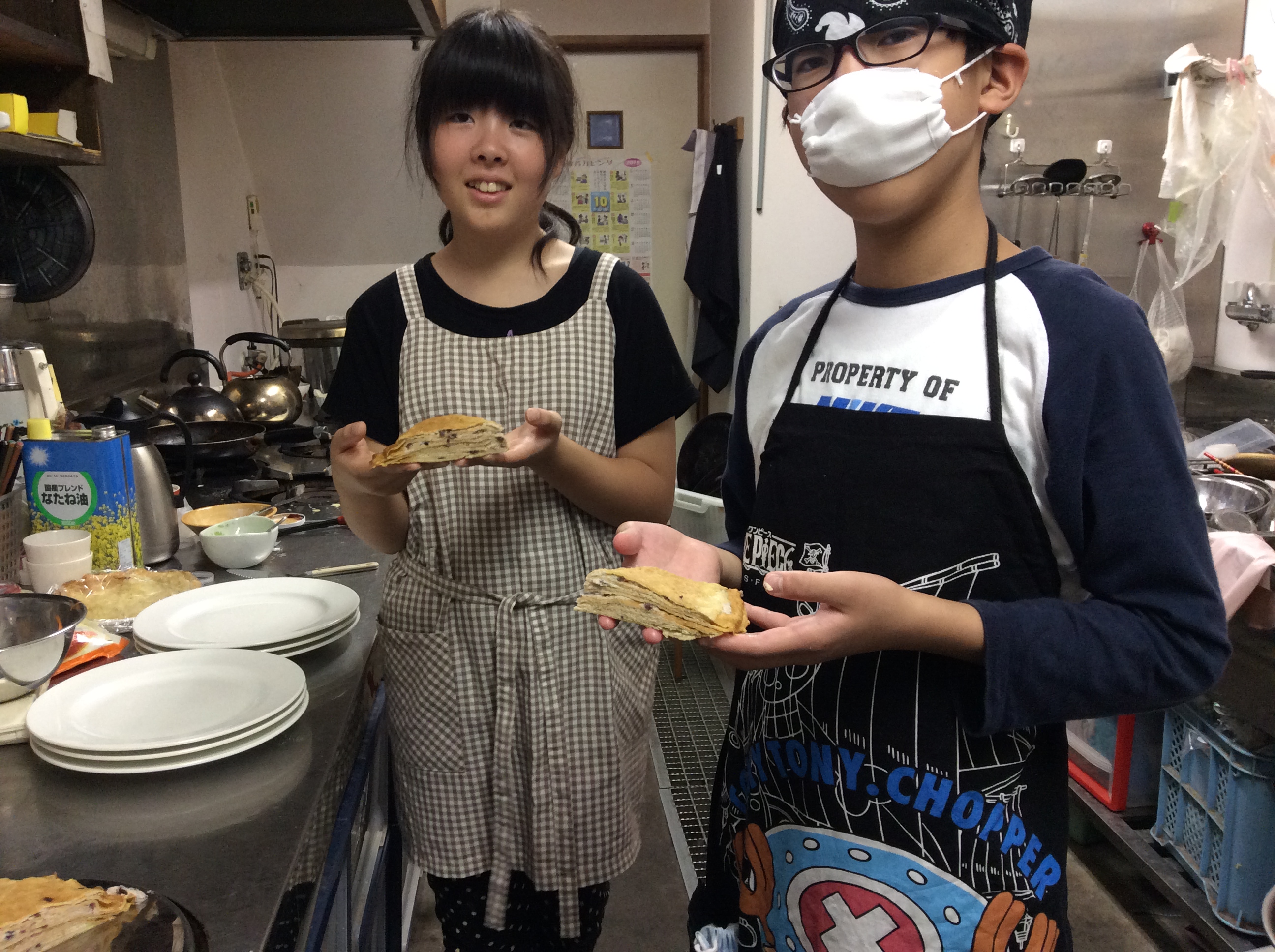 今回は、東部中の生徒さんです。 中学生職場体験は、「地域で子どもを育てよう」がコンセプト。有報堂もその趣旨に賛同して、毎年受け入れを行っています。 1日目の朝は、いつもの通り 受けます。東部中はいつも5人の生徒さんがきます。今回は珍しく女子が多い。5人もいるので、一日目と二日目で、カフェ組とカイロ・外仕事組と交換しながら体験します。 一日目の いつもの通り自分たちの食べる 作ります。 外仕事組のYさんは、こつを掴んだのか、 薪を割っています。凄い。 2日目のカフェ組は、何とお客様のテイクアウトの 作りましたよ。生地を伸ばすのもとても上手で感心していたら、小学校の総合学習の時間に嫌になるくらいたくさん作ったんだそうです。それで上手なんだ。今は授業でやんなるくらいピザを作るのね。 一日目のグループが焼いたクレープを使って、二日目のグループがミルクレープを完成させました。 嬉しくて手で持ってしまいました。 二日目の3時のおやつは、 自分たちで作ったから美味しさも格別です。「有報堂に来て良かった」と毎年みんなが思うのは、この瞬間です。 生徒さんが5人もいるとスタッフも忙しくてなかなか写真が撮れないのです。1日目のおやつとかお土産も美味しそうだったんだけどね。 皆さん二日間お疲れ様でした。 ※9月の営業のお知らせは、9/2の記事(■■■)にあります。ブログ右側の営業カレンダーもご覧下さい。 ※カイロは予約制にて営業しております。予約が埋まってしまいご希望のお時間を承れないことが増えてきましたので、お早めにお問い合わせ・ご予約をいただきますようお願いいたします。
