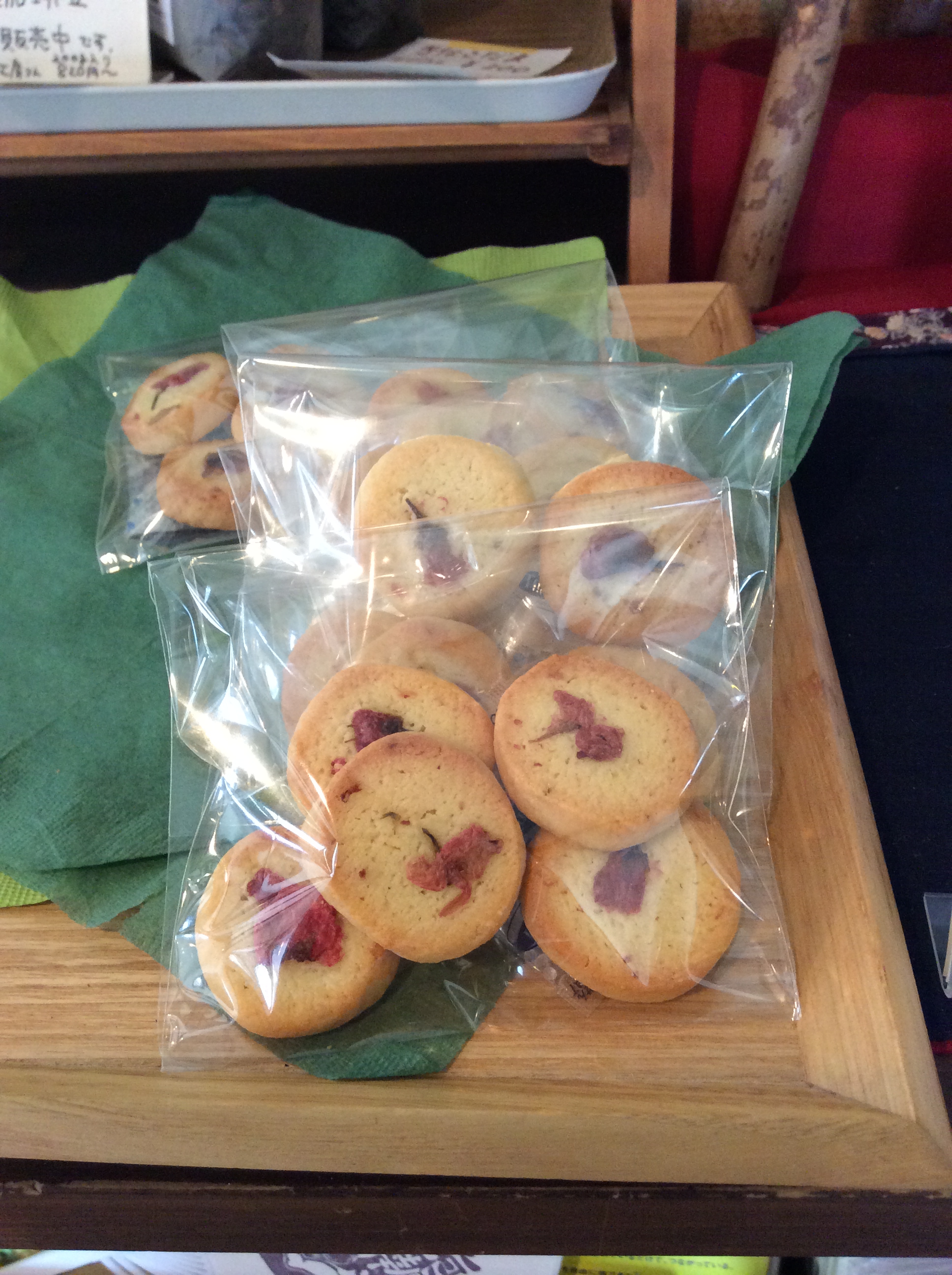 春限定です。桜の塩漬けがポイント。最初桜餅を食べた気分になった・・・(有報堂A)。ほんのり甘くてちょっと塩味。このバランスが美味。あなたも春限定のクッキーを召し上がりませんか? 今売っている商品は、薄力粉ベースです。試作でアーモンドプードルのバージョンも作りましたが、低価格で売るには厳しかったので、お蔵入り・・・何かの機会に豪華なさくらクッキーもお出しするかもしれません。 テイクアウト商品は2営業日前までにお申し込み頂ければ、準備できます。毎日有報堂に来られない人は、ぜひご予約を。 ※4月の営業のお知らせは、3/27の記事(@営業のお知らせ)にあります。ブログ右側の営業カレンダーもご覧下さい。 ※カイロは予約制にて営業しております。予約が埋まってしまいご希望のお時間を承れないことが増えてきましたので、お早めにお問い合わせ・ご予約をいただきますようお願いいたします。 |