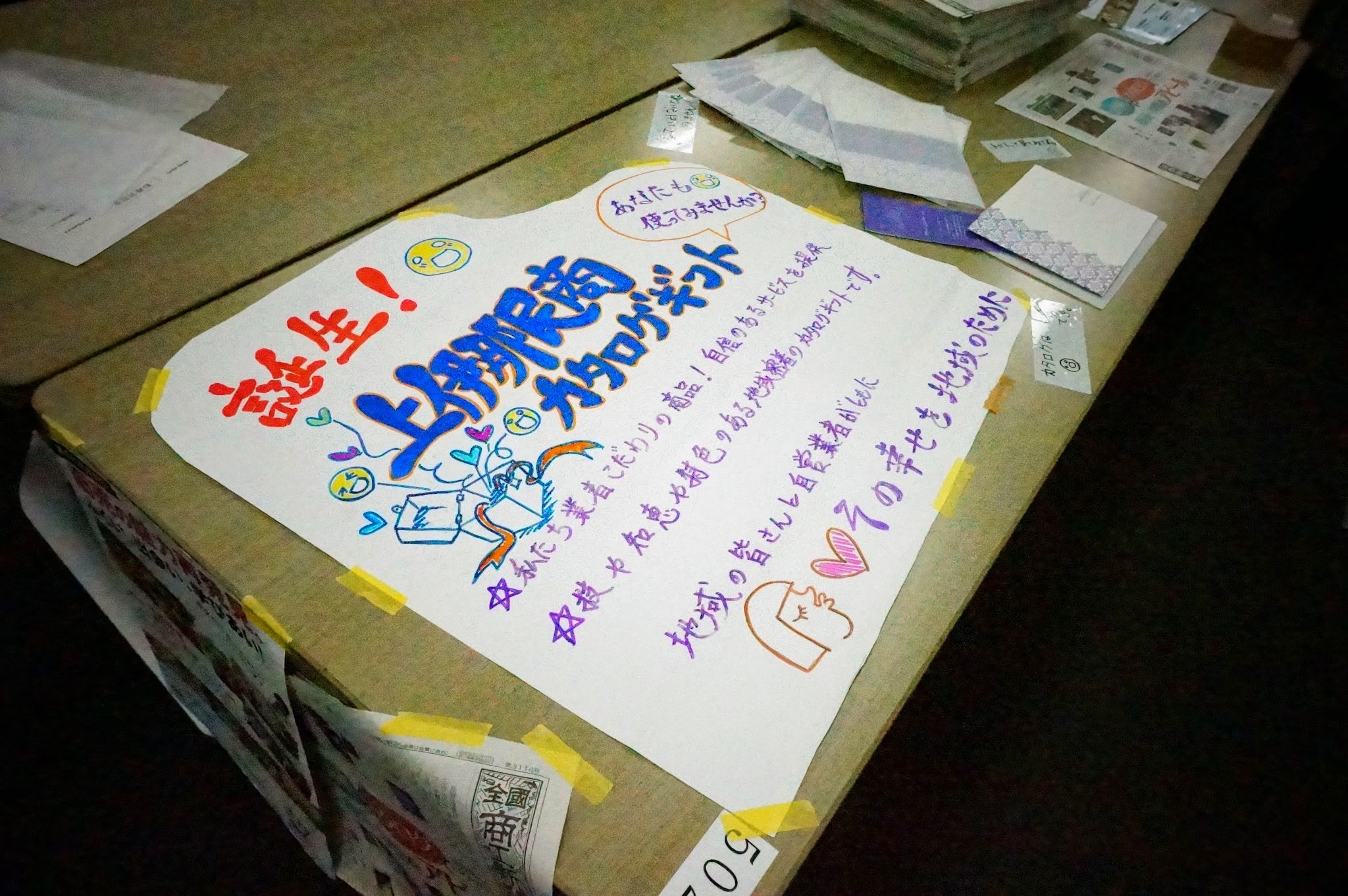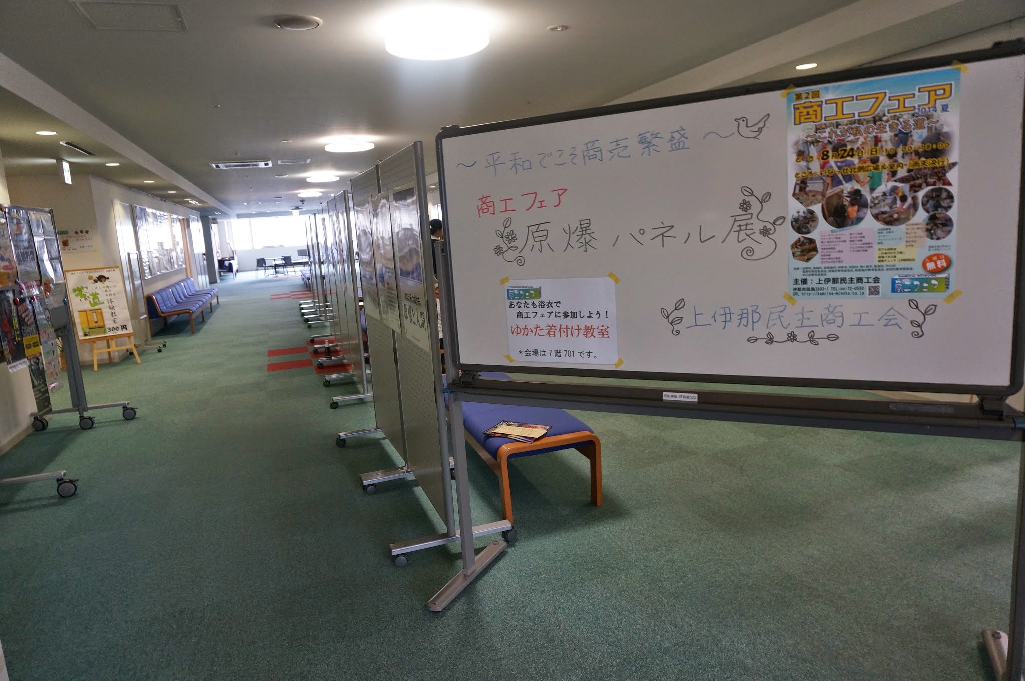 第6弾の日程が決まりました。 有報堂を堪能せよ!!! 有報堂特製ヘルシーランチ& カイロプラクターの骨盤体操教室 日 時 10月11日(土) 9:30 受付開始 10:00〜骨盤体操教室 11:45〜お食事 参加費 1,800円(ランチ代込み)(BCBお持ちの方は1,500円) 持ち物 BCB(運動用チューブ) ※お持ちでない方は、有報堂で用意します。 タオル1本 お申し込みは、有報堂(76-4353)まで。 カイロの骨盤体操で体を整えたら、カフェのお食事で体の中から整える。 有報堂をすみからすみまでご堪能ください。大勢の皆さんのご参加をお待ちしております。 以前にもお知らせした(■■■)ように、「しまっていこー」はスタンプラリーをやっていますよ。どの回からでも参加できます。ぜひチャレンジを。 しまっていこーもついに6回目。皆勤賞の方は、ついにスタンプコンプリートです。 「第2回商工フェア〜これが私の生きる道〜」では、愉快な仲間達(上伊那民商青年部)のお仕事風景の写真を展示する「しごとのかたち展」をやりました。 こうでなければ商工フェアではない。 古い部員たちは、写真を新しくする時間はなかったけど、新入部員さんの分の写真は足しましたよ。(やめてしまった(-_-;)部員のは残念ながらはがした・・・) 今年のしごとのかたち展の目玉は、以前も紹介した(2014年2月6日〜2月22日の記事参照)、 私たち地域業者のこだわりの商品、自信のサービスを提供。 技や知恵や特色のある地域密着のカタログギフトです。 地域の皆さんと自営業者がともに、その幸せを地域のために。 と大々的に売り込んでいます。カタログギフトの記事が載った 置いてアピール。記事を熟読している人も。本当は宣伝要員を置きたかったんだけど、人手が足りず・・・ しごとのかたち展でアピールした、それぞれの業者お薦め商品は、 有報堂カフェ 「一人で読書」と「グループでお食事」 有報堂ブックス 『世界の夢の本屋さん』『アーサーランサム全集』 ヒーリングスペースダーチャ「オーダーメイドトリートメント」 田楽座「田楽座の若いスタッフ」 山岸農場「米」 伊那谷里山くらし研究所「ブナ林見学ツアー」(天然のブナ林) 大和屋農園「シャキッとした歯応えと果汁がたっぷり入ったりんご」 さらら農園「何と言っても干し柿」 湯澤左官「漆喰と土の壁」 矢澤建築所「丁寧な仕事」 T&Hサポート「個人授業で一人一人を伸ばします」 田村建築「細部の装飾にこだわった家づくり」 地球環境デザインMOC「住まい手の生き方や将来設計に合わせ、風土や地域、景観に合わせて、計画・設計した、愛着の持てる住まいづくり」 ・・・・・・でした。 こんな地域業者たちのカタログギフトいかがですか。 ※9月の営業のお知らせは、今日の別の記事(@営業のお知らせ)にあります。ブログ右側の営業カレンダーもご覧下さい。 ※カイロは予約制にて営業しております。予約が埋まってしまいご希望のお時間を承れないことが増えてきましたので、お早めにお問い合わせ・ご予約をいただきますようお願いいたします。 「第2回商工フェア〜これが私の生きる道〜」では、原爆パネル展もやりましたよ。 今年の商工フェアでは、二階展示室が利用できなかったこともあり、 原爆パネル展の趣旨に賛同して頂き、特別にロビーでの展示が認められました。準備の都合で前日からセッティングした、原爆パネルを食い入る様に見ていた、人たちがたくさんいました。来場された方に、核兵器の悲惨さを確実に伝えられたと思っています。 被爆体験のない私達が後世へ原爆の悲惨さを伝えるために何が出来るのかをいつも考えています。その一つの答えが原爆パネル展です。 原爆パネル展は、「平和でこそ商売繁盛」の民商だからこそ、商売を見せる商工フェアとコラボさせられる企画であると思っています。お楽しみだけではなく、一緒に学習できる場も商工フェアでは作っていきたいと思っています。皆さんも原爆パネル展で、原爆について考えてみませんか。 ※9月の営業のお知らせは、今日の別の記事(@営業のお知らせ)にあります。ブログ右側の営業カレンダーもご覧下さい。 ※カイロは予約制にて営業しております。予約が埋まってしまいご希望のお時間を承れないことが増えてきましたので、お早めにお問い合わせ・ご予約をいただきますようお願いいたします。 「第2回商工フェア〜これが私の生きる道〜」では、有報堂以外にも、出店がたくさんありました。 大和屋農園、 大和屋農園は、あっちでもこっちでも大活躍。 スズキ農園 大島農園 を売りました。 農事組合法人いつわは、 エコショップワンと木の鈴は、 小林建具は、 パックの 県の青年部は、 レンタルのたこ焼き器に苦戦しています。 を売っていたのは、大工さん。 生ビールは、スナック、墓石、舞茸、大工が入り乱れ。 みんな本業じゃないから 青年部の米農家軍団は、刈り入れ前で売る物がないので、 を売ってました。自営業者は、本職じゃないことをやっても手際が良いよ。 出店も去年よ