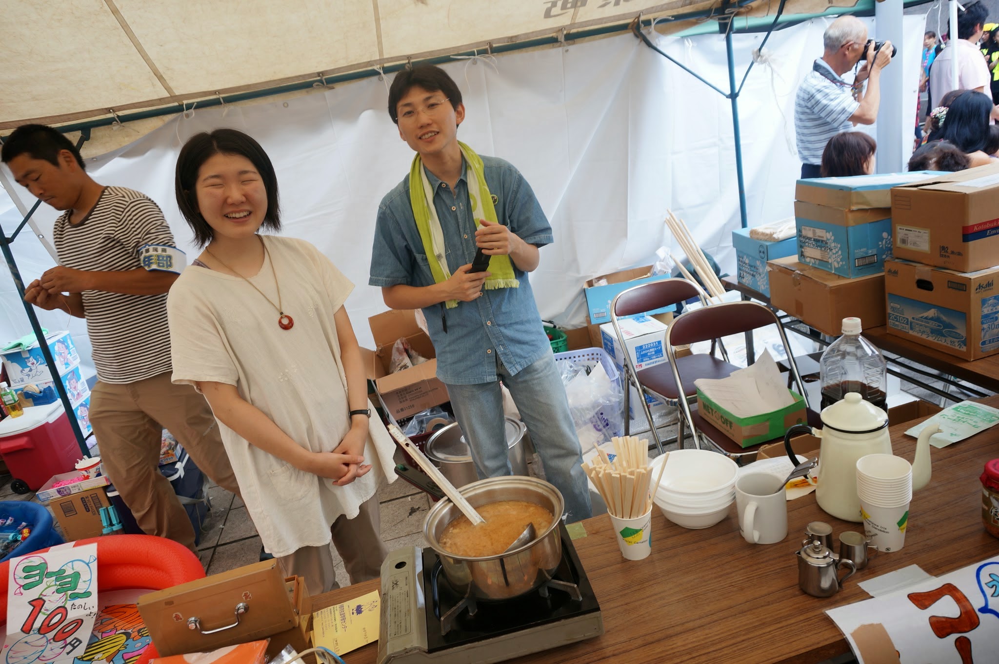 カフェ部門は、まずは北側広場で出店。 炊き込みご飯、チーズクッペ、コーヒーなどなどいつもの出張営業と同じように盛りだくさんで販売。食べ物系はほぼ完売!!ありがとうございました。有報堂売店は、MさんとHさんに手伝って頂きました。 午後一番で、 教室。みんな大興奮。シュークリームツリーは、NさんとKさんに手伝って頂きました。 シュークリームツリーは、人気ですが、こちらの余力の問題で1回しか教室が開けないので、来年はチーズクッペとかピザとかの教室を何回かやろうかなと検討中。いなっせの調理実習室は、結構なんでも揃っているから、何でもできる。 まあいなっせちょっと狭いから別の場所も模索中なんですが。 カイロ部門は、午前・午後と骨盤体操教室(写真はまた今度)と をやりました。ワンコイン整体は、Kさんにお手伝い頂きました。大人気で、昼休みもとれないぐらい頑張って頂きました。 Nさん、Kさん、Kさん、Mさん、Hさん本当にありがとうございました。お陰様で有報堂も無事出店できました。 こうして、有報堂ボランティア軍団に支えられて、有報堂スタッフは何をやっていたのか・・・・・・・・・ 全体のまわしでてんやわんや。 有報堂代表は舞台のMCやったり、 結構楽しんでいます。代表のバンドはいつもの通りやかましすぎて、来年は歌わせては貰えそうにありません。 その頃有報堂Aは、全体から問い合わせの電話が多すぎて、携帯の電池がなくなりそうになって血相を変えています。まつりが賑やかすぎて、最大音量の着信音でも電話がきたことに気がつけません・・・・・・ 有報堂Aが、ほぼ全体のまわしをやったので、写真があまり撮れなかったのです。だから今回のブログも他の人から写真を貰って何とかなっています。 有報堂Aは、愉快な仲間たち(上伊那民商青年部)の売店でも 決して遊んでいたわけではない。今年もお昼を食べる間もない忙しさ。でも、たくさんお客さんが来るのはありがたいことです。来年もよろしくお願いします。 明日以降も、商工フェアの模様をお知らせしますよ。 ※9月の営業のお知らせは、今日の別の記事(@営業のお知らせ)にあります。ブログ右側の営業カレンダーもご覧下さい。 ※カイロは予約制にて営業しております。予約が埋まってしまいご希望のお時間を承れないことが増えてきましたので、お早めにお問い合わせ・ご予約をいただきますようお願いいたします。