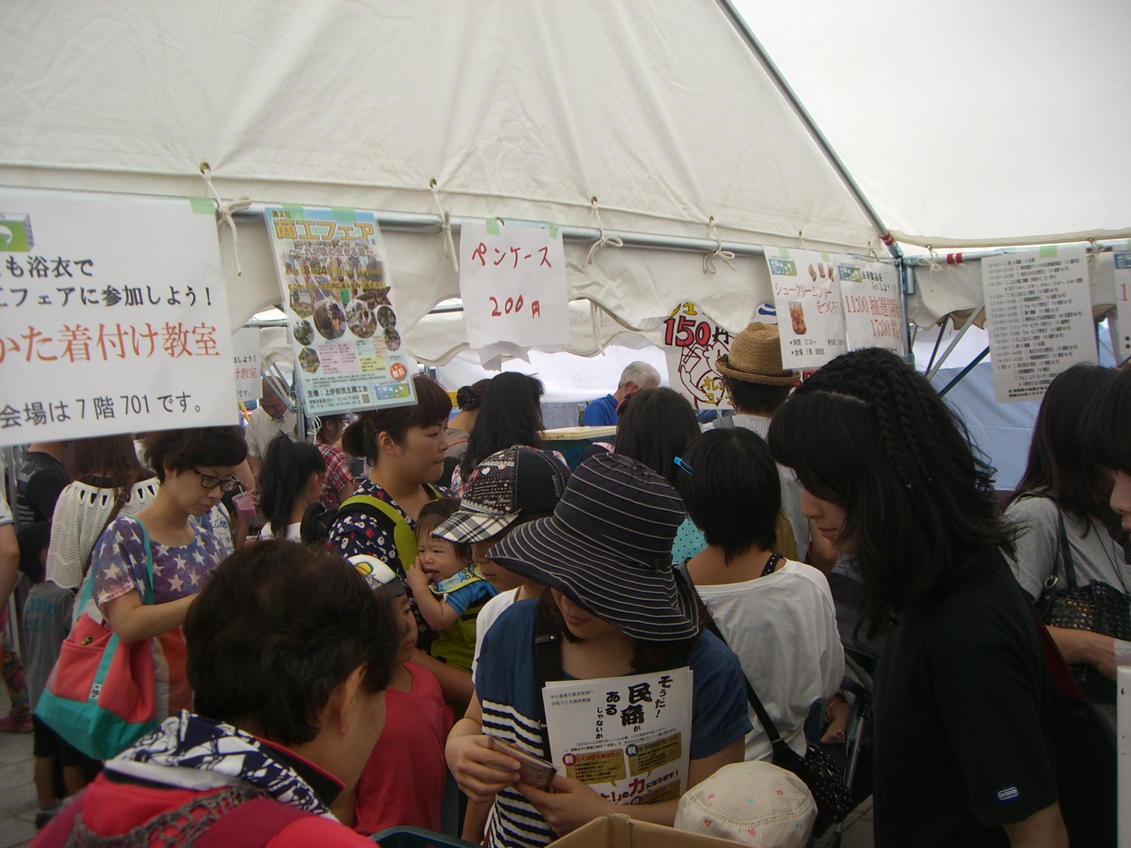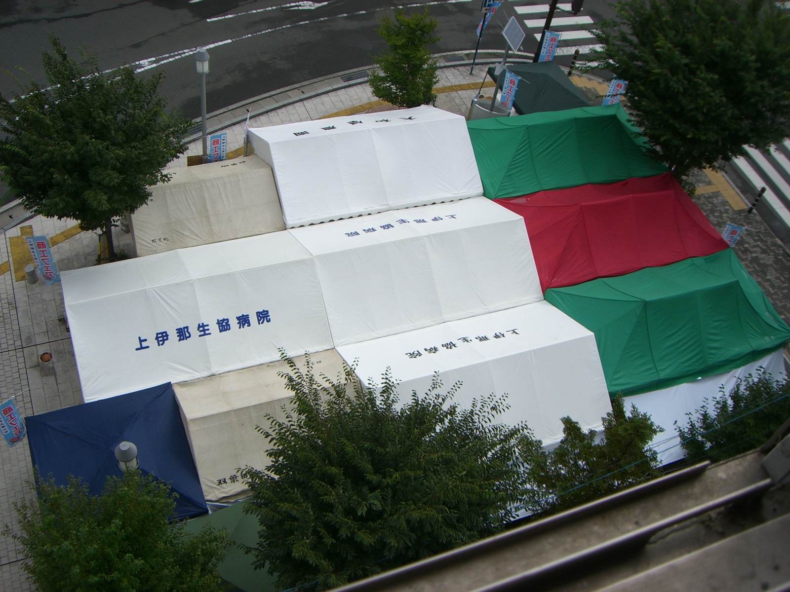 「第2回商工フェア〜これが私の生きる道〜」 は、おかげ様で無事終了しました。 ご来場頂いた皆さま本当にありがとうございました。 愉快な仲間たち(上南民商青年部)の新入部員さんが、足場屋さんだったので、今年は 大工さんが、 くれて完璧です。 昨年の経験を活かして、今年は通路まで 凄いでしょう。日除けにも、雨除けにもなります。 準備を始めた6時頃にぽつぽつきて、7時台は土砂降りだったのでどうなることかと思いましたが、開始時間には無事止んで、何とか夕方までは天気がもって良かったです。 雨が降ったらやれなかった、 オープニングも無事やれて、格好いい幕開けになりました。 天気が去年よりは良かったので、人出も多く 約1,600人のご来場者でした。(来年は会場を変えるかどうか。色々悩み中。)昨年よりはるかに忙しくって、写真も満足に撮れず・・・どこで何をやっていたのかもよく分からず・・・もっと大勢来たような感覚でしたが、出入り口がいくつもあるから正確な人数の把握は難しいところです。 何はともあれ、皆さんのご協力のおかげで無事開催することが出来ました。本当にありがとうございました。 商工フェアの様子は、このブログでも少しずつ紹介していきます。お楽しみに。(他の人から写真データ貰わなくっちゃ) ※8/30(土)は、出張営業(■■■)のため通常営業は致しません。何卒ご了承ください。その他の8月の営業のお知らせは、7/27の記事(@営業のお知らせ)にあります。ブログ右側の営業カレンダーもご覧下さい。 ※カイロは予約制にて営業しております。予約が埋まってしまいご希望のお時間を承れないことが増えてきましたので、お早めにお問い合わせ・ご予約をいただきますようお願いいたします。 24日の予報は雨(>_<) 何とか晴れますように。 8月24日・日曜日(10:00〜18:00)の「第2回商工フェア〜これが私の生きる道〜」体験系企画全体の日程が出来上がってきましたので、お知らせいたします。 しかも愉快な仲間たち編(■■■)でご紹介したときには落ちがあった・・・・・・ので、今日こそ全部お知らせします。 10:10〜 いつわ 餅つく体験 北側広場 10:10〜 大和屋農園 りんご(信濃レッド)の皮むき競争 北側広場ステージ ※問い合わせが多いため増やす可能性もあります。 10:30〜 田楽座(@歌舞劇団)南京玉すだれ 501 定数5名 ☆ 10:30〜 MOC 小枝細工ワークショップ 小枝のミニカー作り 定数3名 ☆ ※刃物を使用するため小学生以下は保護者同伴でお願いします。 ※以下11:30〜、13:00〜、14:00〜、15:00〜、16:00〜と開催予定 11:00〜 有報堂 骨盤体操教室(■■■) 501 定数10名 ☆ 11:00〜 宮脇 けしごむハンコ教室 502 ☆ ※刃物を使用するため小学生以下は保護者同伴でお願いします。 11:30〜 T&Hサポート(@T&Hサポート) ウォーキング教室 501 定数25名 ☆ 13:00〜 田楽座 踊り体験 501 ☆ 13:30〜 有報堂 シュークリームツリーを作ろう(■■■) 調理室 定数15台 ※定数は人ではなく台。1台を何人で作って頂いてもかまいません。 14:30〜 T&Hサポート ウォーキング教室 501 定数25名 ☆ 14:30〜 宮脇 けしごむハンコ教室 502 ☆ ※刃物を使用するため小学生以下は保護者同伴でお願いします。 15:00〜 いつわ 餅つく体験 北側広場 15:20〜 田楽座 南京玉すだれ 501 定数5名 ☆ 16:30〜 田楽座 踊り体験 501 ☆ 16:30〜 有報堂 骨盤体操教室 501 定数10名 ☆ 終日 有報堂 骨盤整体(■■■) 502 10分・20分コース予約制 ☆ 終日 ダーチャ 足のリフレクソロジー、アロマハンド 502 20分予約制 ☆ 終日 せいわ治療院 カイロプラクティック 502 予約制 終日 MOC スマートボール 502 終日 京染め渡辺 リフォーム着物の展示会 503 終日 大日本茶道学会 茶道de喫茶(茶道体験教室) 702 ☆ 終日 ゆかた着付け教室 和室 (ゆかた持参で来て下さいね) 終日 原爆パネル展 5階ロビー 終日 しごとのかたち展・カタログギフト・有報堂ブックス 503 終日 薪割り体験(雨が降れば樵が参加出来るので重量当て丸太切りになることもあります) 北側広場 終日 壁塗り体験 北側広場 時間未定 上伊那医療生協の健康チェック 創作室 全部体験するには、一日がかりです。朝から晩までご堪能下さい。 この他に北側広場では、販売も盛りだくさん♪ それぞれの体験には、費用がかかります。 ☆マークのある有報堂・T&Hサポート・田楽座・宮脇・ダーチャ・MOC・大日本茶道学会・せいわ治療院は、スタンプラリーがあります。全部コンプリートすると上伊那民商青年部のお店で使える商品券があたります。詳しくはスタッフまでお尋ねください。 ※8/24(日)は、商工フェア参加のため出張営業のみとなります。何卒、ご了承ください。みなさんで商工フェアにぜひお越し下さい。 ※8月の営業のお知らせは、7/27の記事(@営業のお知らせ)にあります。ブログ右側の営業カレンダーもご覧下さい。 ※カイロは予約制にて営業しております。予約が埋まってしまいご希望のお時間を承れないことが増えてきましたので、お早めにお問い合わせ・ご予約をいただきますようお願いい