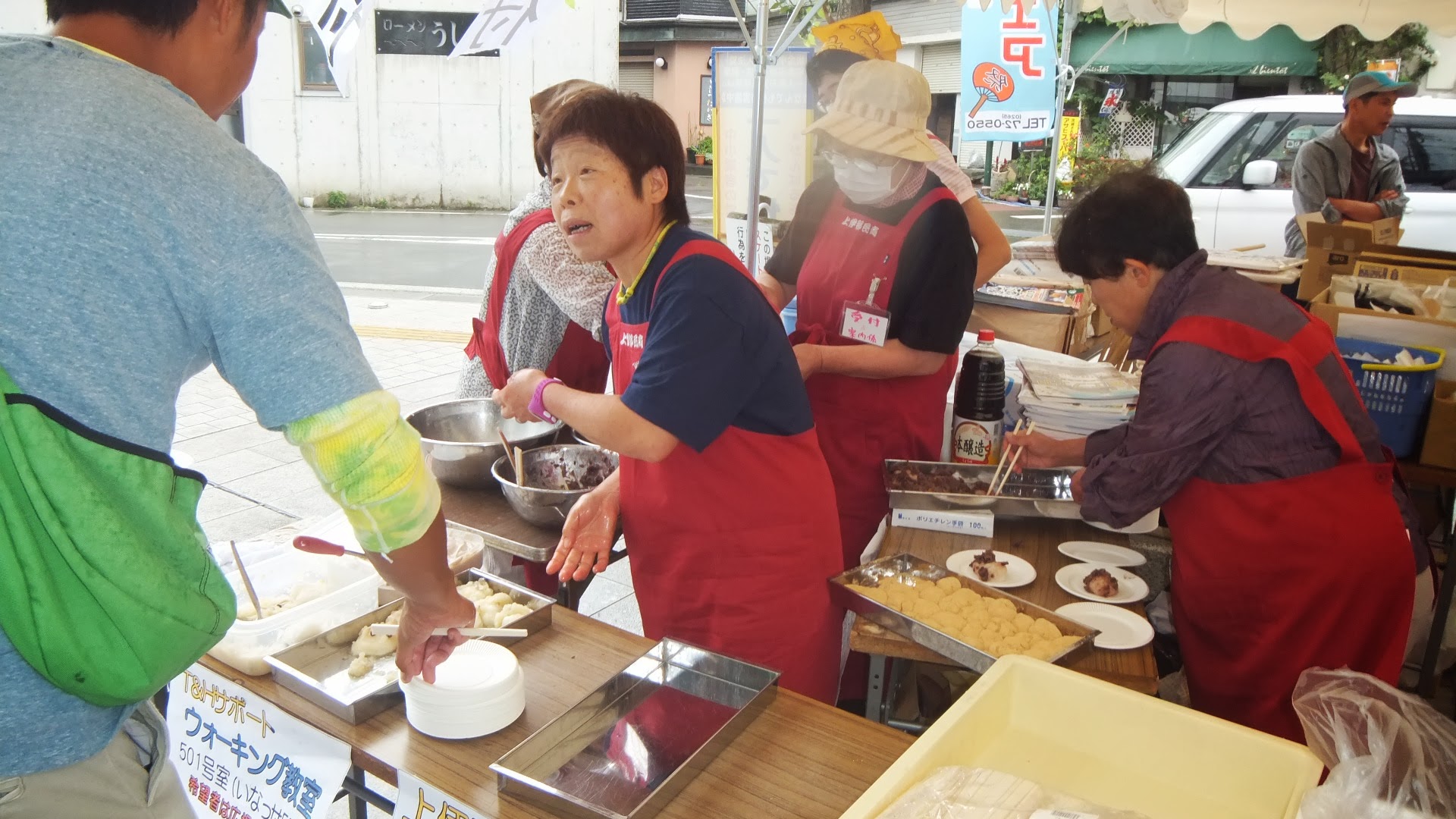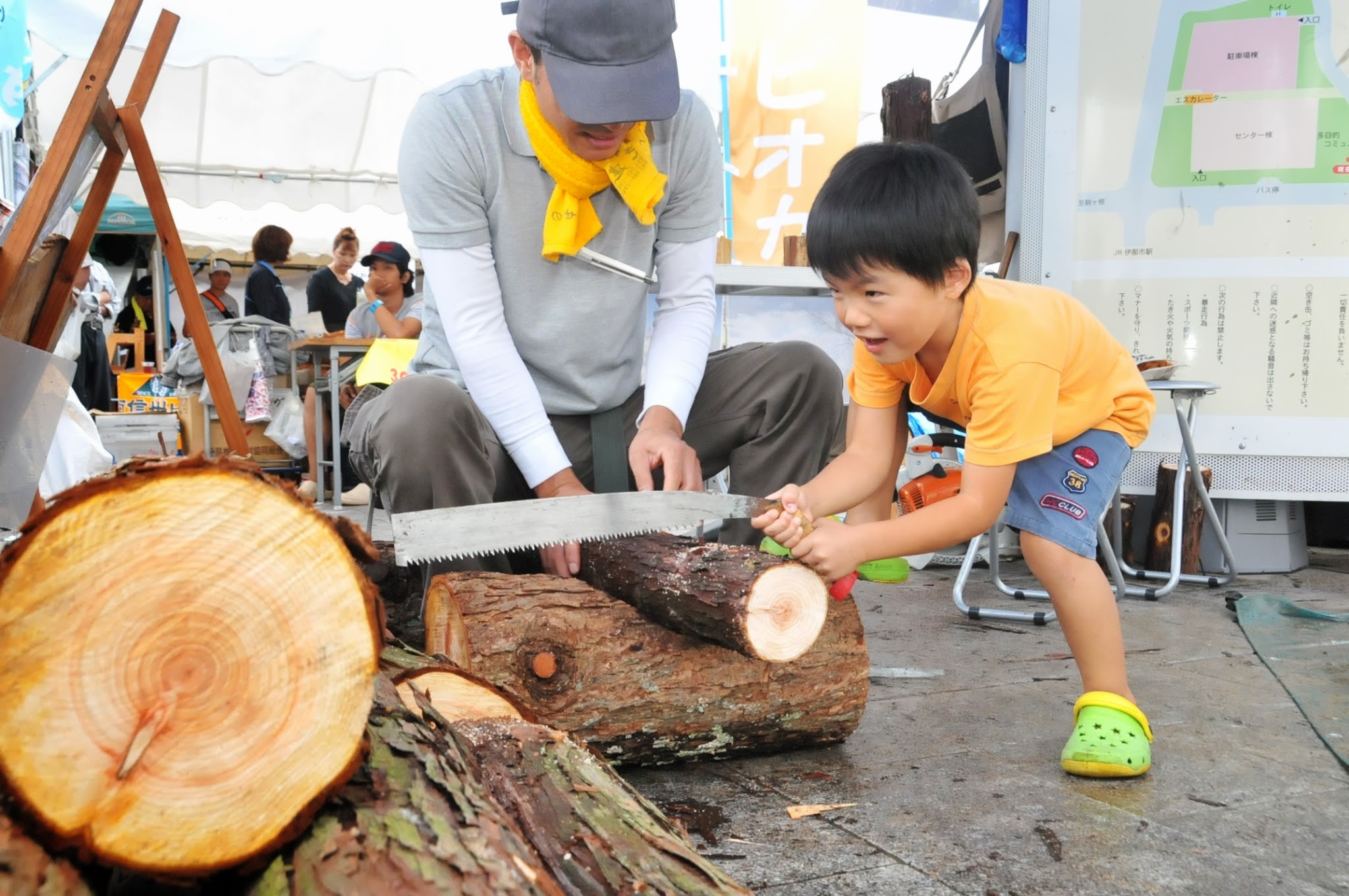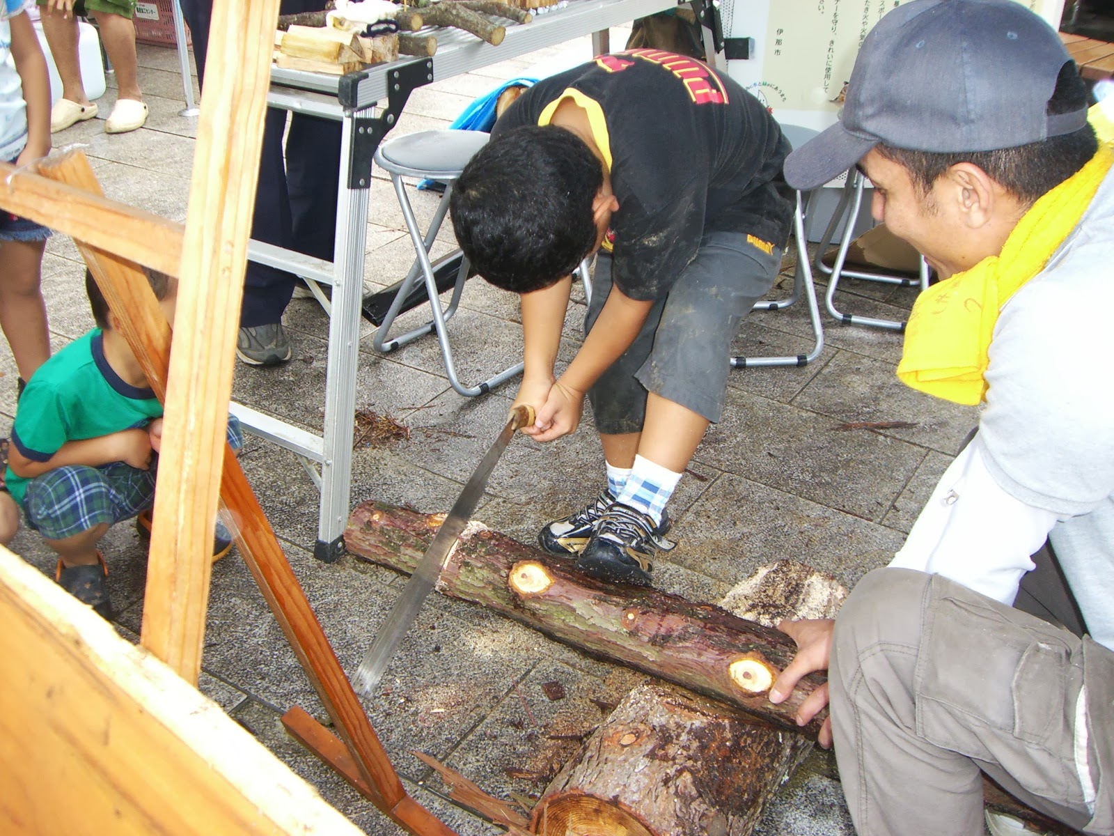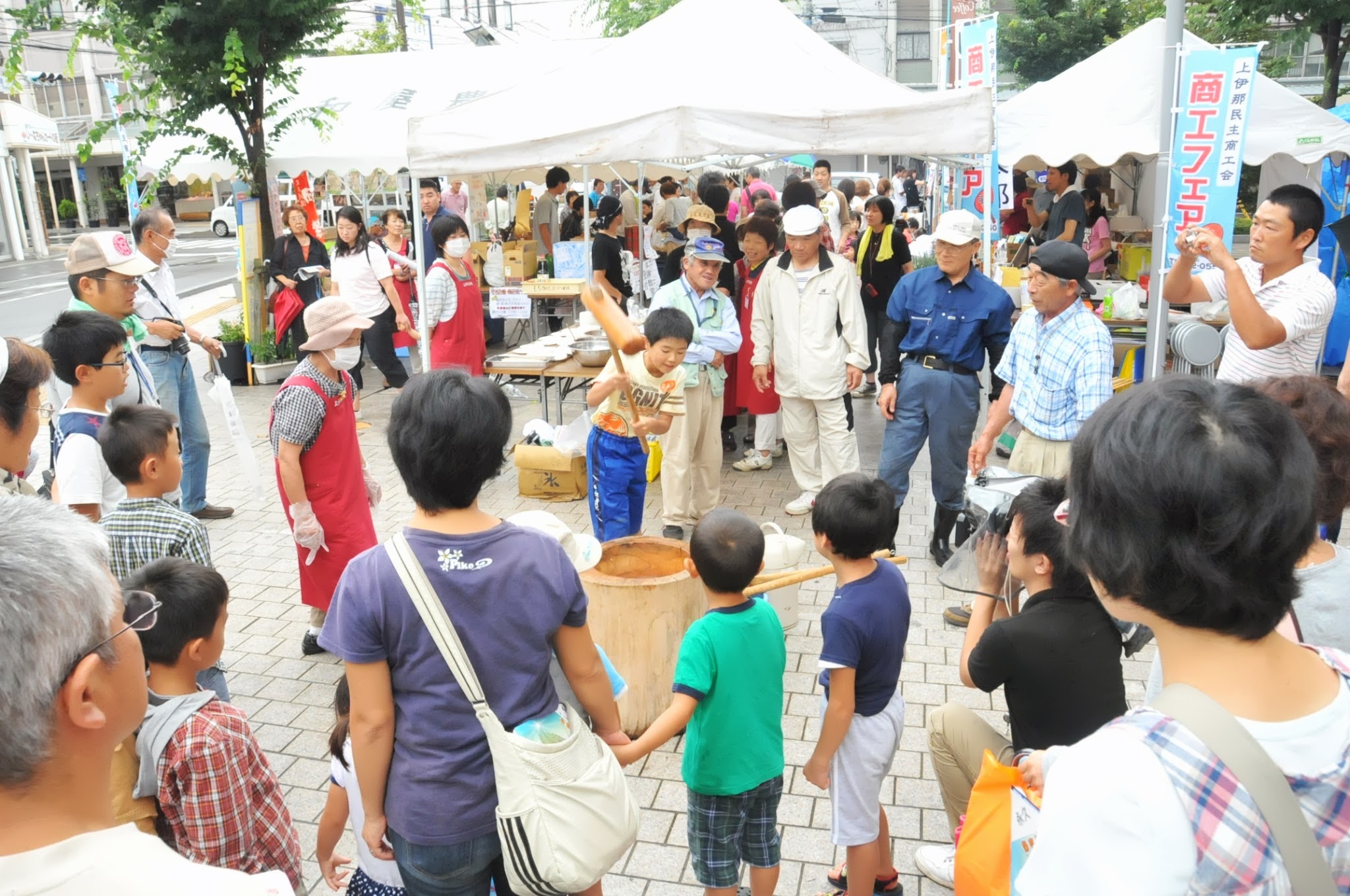 伊那谷里山くらし研究所の重量当て丸太切りは、子供たちに大人気! 子供たちみんな 必死です。鋸を初めて使った子も多く、良い経験になったようです。 湯沢左官の塗り壁体験。こちらは 大人気!お父さんがいつまでも離れないので、子どもさんが待ちぼうけです。自宅のリフォームを自分でやろうと思っていたという方は、「壁の塗り方が分かったので、自分の部屋を塗ってみたい」とおっしゃっていました。DIYにも役立つ体験系ですよ。 大人に大人気だったもう一つは、大工さんの どんなイベントでも必ず行列が出来る鉄板の企画です。みんなチラシ1枚でめざとく見つけてきちんと包丁を持ってきています。 ご希望があれば、大工さんに 教えて貰えます。みんな切れるようになった包丁に大満足。 子どもが行列したのは、農事組合法人いつわの いつわさんが米を蒸すなどの下準備を全てやってくださったので、後はつくだけ。 のかけ声に合わせて、みんな ついたお餅は、午前・午後と2回みなさんに振る舞われました。 下平自動車の 皆さん興味津々でのぞき込んでいます。 室内も広場もどの企画も大人気で、大行列だったので、時間が合わなくて残念ながら体験できずに帰ってしまわれたお客様もいました。来年はもっとブースを増やそうかなと思っています。今年は準備が足りなくて、体験系が少なかったので、来年はもっとたくさんの業種を揃えてもっと商工フェアっぽくやりたいと思います。皆さんのこんな体験やりたい!というご意見もお待ちしておりますよ。 ※カフェは来週9/7(土)は出張営業のため、終日貸切となります。予めご了承ください。その他の9月の営業のお知らせは、8/28の記事(@営業のお知らせ)にあります。ブログ右側の営業カレンダーもご覧下さい。 ※カイロは来週9/8(日)は出張のため臨時休業とさせていただきます。何卒ご了承ください。なお、カイロは、予約制にて営業しております。予約が埋まってしまいご希望のお時間を承れないことが増えてきましたので、お早めにお問い合わせ・ご予約をいただきますようお願いいたします。 大人気ウォーキング教室のお知らせだよ。 有報堂特製ランチ&健康ウォーキング教室 日 時 9月21日(土) 9:30 受付開始 10:00〜ウォーキング教室 ※雨天時は、室内で運動教室を行います。 11:45〜お食事 参加費 1,800円(ランチ代込み) 持ち物 タオル、帽子など お申し込みは、有報堂(76-4353)かT&Hサポート(090-2151-4232)まで。 有報堂&周辺を会場に、ウォーキング教室のあとヘルシーなランチをする企画です。 ウォーキングを教えてくれるのは、もちろん スポーツの秋ですよ、ウォーキングにも良い季節です。大勢の皆さんのご参加をお待ちしております。 ※来週9/7(土)は出張営業のため、終日貸切となります。予めご了承ください。その他の9月の営業のお知らせは、8/28の記事(@営業のお知らせ)にあります。ブログ右側の営業カレンダーもご覧下さい。 ※カイロは、予約制にて営業しております。予約が埋まってしまいご希望のお時間を承れないことが増えてきましたので、お早めにお問い合わせ・ご予約をいただきますようお願いいたします。