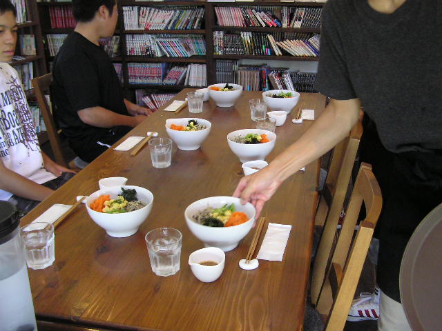 何が忙しかったのかと言えば、 先週の水・木と東部中の生徒さんが に来てくれました。 予約の豆腐ハンバーグや 作ってみました。みんなで試食もして大満足(のはず)。 金曜日は、土曜日の出張営業の仕込みで大騒ぎ。 土曜日出張営業したのは、 です。 雨の中でしたが、結構なお客さんで 寸胴いっぱいに作っていったのに、早々と売り切れ。もっと仕込めば良かったorz 定番の に加えて、 ちょっと手間がかかりすぎたので、来年はどうしようか検討中です。夜の21時までのイベントで一日がかりでした。 というわけで、先週はてんやわんやだったのです。今週はブログも更新出来るはずです。 ※カフェは9/16(月)祝日のため臨時営業いたします。ぜひご利用ください。その他の9月の営業のお知らせは、8/28の記事(@営業のお知らせ)にあります。ブログ右側の営業カレンダーもご覧下さい。 ※カイロは9/14(日)15(月)は、出張のため臨時休業とさせていただきます。何卒ご了承ください。なお、カイロは、予約制にて営業しております。予約が埋まってしまいご希望のお時間を承れないことが増えてきましたので、お早めにお問い合わせ・ご予約をいただきますようお願いいたします。