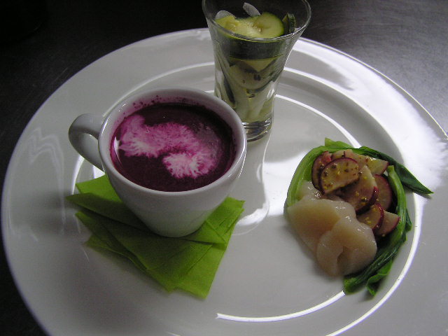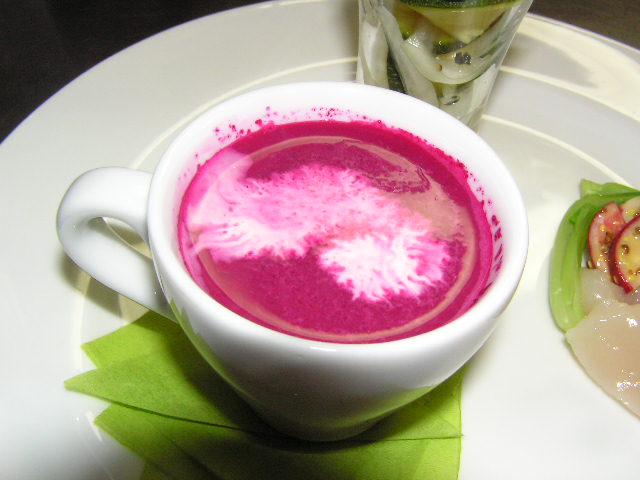ビーツのポタージュ♪赤い色が綺麗でしょう。 いつも有報堂が利用している、大塚農場の無農薬のビーツです。ビーツは、かぶを硬くしたような食感です。しっかりゆでてポタージュにしたら、ちょっと珍しい前菜になりました。 もう暑くて暑くてぐったり・・・という今日この頃、元気のでる鮮やかなスープで、身体の中からスッキリ!しませんか。色のついた野菜は、元気もでるし栄養たっぷり!有報堂のコース料理で、ゆっくり、ゆったりお食事会はいかがですか。ご予約、お待ちしていま〜す。 ※7/12・13(金・土)は、夜貸切となっています。大変申し訳ありませんが、ご了承ください。その他の7月の営業のお知らせは、6/29(@営業のお知らせ)の記事にあります。ブログ右側の営業カレンダーもご覧下さい。 ※カイロは7/14〜15(日〜月)は、出張のため臨時休業になります。あらかじめご了承ください。なお、カイロは予約制にて営業しております。予約が埋まってしまいご希望のお時間を承れないことが増えてきましたので、お早めにお問い合わせ・ご予約をいただきますようお願いいたします。 赤くぐつぐつと茹でられているのは、 明日のご予約は、ビーツを使った料理をお出しするので、その準備中です。 何になるかは、明日のお楽しみ。 ※7/12・13(金・土)は、夜貸切となっています。大変申し訳ありませんが、ご了承ください。その他の7月の営業のお知らせは、6/29(@営業のお知らせ)の記事にあります。ブログ右側の営業カレンダーもご覧下さい。 ※カイロは7/14〜15(日〜月)は、出張のため臨時休業になります。あらかじめご了承ください。なお、カイロは予約制にて営業しております。予約が埋まってしまいご希望のお時間を承れないことが増えてきましたので、お早めにお問い合わせ・ご予約をいただきますようお願いいたします。