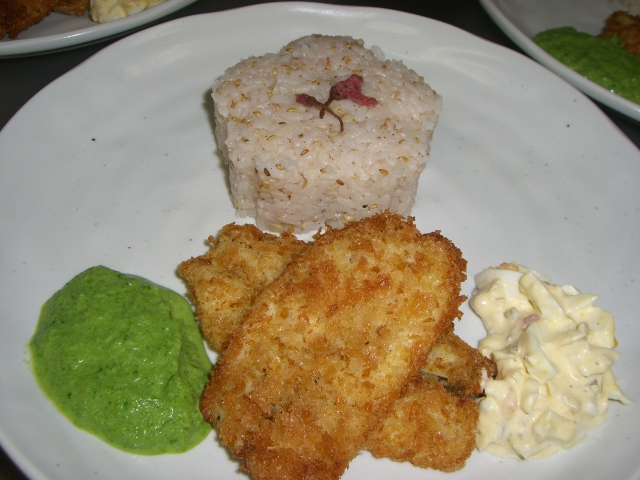 有報堂カフェのお食事予約。コース料理をご注文いただくと、当たり前ですが通常とはちょっと違ったメニューが出ます。 先日は、桜コースのなかで をお出ししました。有報堂では滅多にでない揚げ物。チカは淡泊なので、やはり揚げ物が一番美味しいと思う。この日は、ソースが2種類。タルタルソースと菜の花ソース。菜の花ソースは、菜の花と牛乳で作ります。菜の花は、細かくすると苦みが増します。ポタージュなどにすると、この苦さがちょっと・・・・・・と悲しいことになってしまいます。そのときどきで菜の花が違うので美味しいときもあるのですが、作ってみないと分からないので、ポタージュにはなかなかできません。が、菜の花の独特の味(苦み)がフライには良く合うのです。というわけで、菜の花ソース♪ マヨネーズベースのタルタルソースよりヘルシーです。今年はまだまだ寒いので、もう少しは菜の花も収穫出来るようです。皆さんもいかがですか。 そうは言ってもあと一、二週間かな。菜の花ソースを食べたい!というあなたは、早めにコース料理のご予約を。 ※カフェは5/4・5(土・日)18:00〜貸切(17:00LO)、5/6(日)夜貸切となります。G.W.期間は貸切が増えております。申し訳ありませんがご了承ください。なお5/6(日)の日中の貸切はなくなりました。突然の貸切・予約のご要望も増えておりますので、ご来店前にお電話でご確認頂けるとより安全です。その他の5月の営業のお知らせは、4/25(■■■)の記事にあります。ブログ右側の営業カレンダーもご覧下さい。 ※カイロは5/6(月)は出張のため臨時休業となります。また5/8〜12は研修のため(■■■)休業させていただきます。あらかじめご了承ください。なお、カイロは予約制にて営業しております。予約が埋まってしまいご希望のお時間を承れないことが増えてきましたので、お早めにお問い合わせ・ご予約をいただきますようお願いいたします。