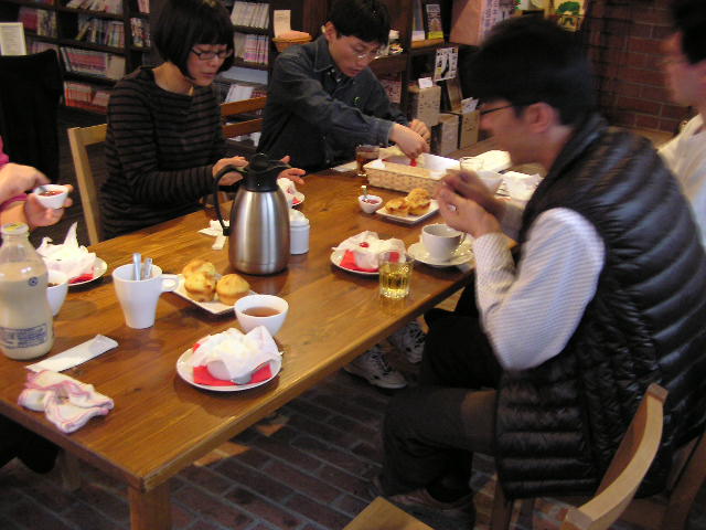 毎日 先日のご予約では、 をお出ししました。吹雪いていたけど、冷たいアイスクリーム。でも大丈夫。ペチカがあるからぬくぬくです。通常メニューのヨーグルトアイスは、ディッシャーで丸く盛りつけていますが、今回は絞ってみました。くるくるとらせん状になったところに、いちごソースがかかってちょっと春らしいデザートに。ゆっくり食べても溶けにくい。コース料理の最後のデザートタイムは、これまた話しに花が咲いて皆さん長居していらっしゃいますので、そんなときにもぴったりです。 外は寒くても春は来ていますよ〜。有報堂で春を感じるお食事会はいかがですか。 ♪この時期だけ! さくらコース(2500円)は、4月下旬までご予約承り中です♪ ※カフェは明日4/13(土)は、夜間貸切のため通常営業は17:00までとなります(LO16:00)。また、来週4/20・21(土日)は予約のため終日貸切となります。申し訳ありませんが、ご了承ください。その他の4月の営業のお知らせは、3/28の記事にあります。ブログ右側の営業カレンダーもご覧下さい。 ※カイロは4/13・14(土日)は出張のため臨時休業となります。あらかじめご了承ください。なお、カイロは予約制にて営業しております。予約が埋まってしまいご希望のお時間を承れないことが増えてきましたので、お早めにお問い合わせ・ご予約をいただきますようお願いいたします。 雪だよ〜。寒いよ〜。 今回の製本教室のスイーツは、 「布でくるんだ、製本とコラボしたスイーツですよ」 「この布は寒冷紗ですか」と先生がすかさずつっこんでいます。寒冷紗は本の補強に(■■■)使います。 残念ながら寒冷紗ではなく、ガーゼでした。 そして ついていました。甘いスイーツと甘くない焼き菓子でしっかり量があるおやつになりました。 みんな みんな布についたクレームダンジュを綺麗にこそげています。 そのままでも美味しいクレームダンジュですが、この季節ならでは、いちごソースを添えました。お好みで、かけて食べます。これもまた美味しい。チーズでなくヨーグルトを使っているのでさっぱりです。チーズマフィンは、黒胡椒がきいて、おなかにたまります。みんな集中して製本に取り組んだのでお腹が空いたようです。飲み物もすすみます。 お茶をしながら、「次回はいつですか」「カメラマンの仕事はどうですか」「自分も写真を製本してほしい」などと盛り上がっています。外は極寒でしたが、店内は終始ほんわかでしたよ。 さぁ、美味しいおやつ&お茶つきの製本教室、次回は貴方もいかがですか。 ※カフェは来週4/20・21(土日)は予約のため終日貸切となります。申し訳ありませんが、ご了承ください。その他の4月の営業のお知らせは、3/28の記事にあります。ブログ右側の営業カレンダーもご覧下さい。 ※カイロは4/13・14(土日)は出張のため臨時休業となります。あらかじめご了承ください。なお、カイロは予約制にて営業しております。予約が埋まってしまいご希望のお時間を承れないことが増えてきましたので、お早めにお問い合わせ・ご予約をいただきますようお願いいたします。 土日は荒れ模様!酷い天気でした。日曜日は・・・ ここのところ、土日は割と忙しくてブログの更新が出来ないでいます。吹雪いていても忙しい、ありがたいことです。 日曜日は、製本教室をやりましたよ。吹雪の中でも室内はペチカの暖かさで、穏やかな和やかな教室でした。 有報堂Bは今回は、 製本します。「手ぬぐいに「わ」と書いてあるので、「わ」から始まる本はありませんか」といきなり、有報堂ブックスに言っています。「えっ!何突然。「わ」から始まる本はそんなにないのに」「もうみんな席についているのに。もっと早く言ってよ」とぶつぶつ言っている有報堂ブックス。ですが、早速図書室から本を持って来ます。流石です。 選んだ本は、 でした。『わけあってふゆにでる』と読みます。 有報堂Bは嬉しそうに 有報堂Bの 良い感じです。 有報堂ブックスは、 を製本します。相変わらずリュパンシリーズです。 有報堂ブックスの 前回製本した本(■■■)と同じシリーズには、とても思えません。二つ並んでいたら全然違う本に見えるだろうな。 もシックです。 この本にはもともとついていた 黒い栞に付け替えました。 次回の製本教室は、6月15日(土)に決定!皆さん今からご準備を。 あなたも世界に一つだけの本を作りませんか。 ※製本教室のお茶の様子は、また明日。 ※カフェは来週4/20・21(土日)は予約のため終日貸切となります。申し訳ありませんが、ご了承ください。その他の4月の営業のお知らせは、3/28の記事にあります。ブログ右側の営業カレンダーもご覧下さい。 ※カイロは4/13・14(土日)は出張のため臨時休業となります。あらかじめご了承ください。なお、カイロは予約制にて営業しております。予約が埋まってしまいご希望のお時間を承れないことが増えてきましたので、お早めにお問い合わせ・ご予約をいただきますようお願いいたし