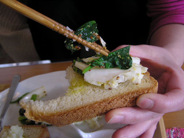 期間限定ではない新メニューが久々の登場です。 スープ付きで600円です。有報堂自家製パンを使った、お食事メニューです。 今までの具をはさんだサンドイッチと違って、サラダ(具)と主食(パン)を一皿に盛りつけた感じになっています。ほぼ野菜のみで作る2種類の具と、ファットスプレッドとマスタードに替わって、オリーブオイルと塩がついてきます。有報堂らしいヘルシーなサンドイッチです。 それを、お好みで それだけで食べるもよし。 食べるも良し。何通りもの食べ方が出来ます。ぜひおためしくださいね。 新たな定番メニュー・オープンサンドを食べに、春休みは有報堂へどうぞ。 ※カフェは3/24(日)18:00〜貸切(LO17:00)、30(土)13:00〜貸切となっております。あらかじめご了承ください。その他の3月の営業のお知らせは、2/28の記事にあります。ブログ右側の営業カレンダーもご覧下さい。 ※カイロは予約制にて営業しております。予約が埋まってしまいご希望のお時間を承れないことが増えてきましたので、お早めにお問い合わせ・ご予約をいただきますようお願いいたします。 昨日は、強風吹きすさぶなかウォーキング教室をやりましたよ。 ウォーキングが終わったら酷い雨になっていましたが、ウォーキング中は強風なものの、雨も降らず無事 「僕、晴れ男ですから」とたっちゃんが勝ち誇っています。 ウォーキング教室は、何回も参加されている方も徐々に増えていますが、 講習から始まります。 皆さん1回の参加では忘れてしまうこともあるかもしれませんし、講師の方から見るとちょっと違うという場合もあります。一度出たからもう大丈夫ではなく、定期的にウォーキング教室にご参加頂くと、より綺麗に歩けるようになりますよ。 風は強かったものの、お天気は良かったので、皆さん終わって「暑い暑い」と言っています。 運動して代謝がアップしたところで、今回は初の メニューは、 黒ごまマフィン、フローズンヨーグルト、おはぎ(黒ごまきなこ、あんこ)です。 何だか、もの凄いボリュームが・・・・・・「ボリュームはありますが、ヘルシーです」と有報堂Bは言っています。 今回のテーマは油脂や脂肪分を控えたスイーツです。だからと言って寒天だけ・・・というとちょっと寂しいので、材料を選んでみました。マフィンとフローズンヨーグルトは、有報堂で通常メニューやレジ横にならんでいるものと同じです。マフィンはバターではなくなたね油を使います。フローズンヨーグルトは生クリームを少量にして、ヨーグルトとフルーツをたっぷり使います。ごまやきなこ、あずきは、抗酸化作用や美肌効果がありますよ。ちょうどお彼岸なのでおはぎを作ってみましたが、甘さ控えめで腹持ちがよいので、おやつにもぴったりです。塩分の多いスナックや、脂肪分の多いケーキを食べるより、ヨーグルトやおにぎりのほうがいいですね、とたっちゃんも言っていましたよ。夜お腹が空いたときも、ヨーグルトはおすすめだそうです。 お茶タイムには、そんな食生活で気をつけたいことなども話したりして、盛り上がりました。気軽にいろいろ質問できるので、皆さん喜んでいたようです。 ご参加頂いた皆さま、T&Hサポートの池上さんありがとうございました。 いよいよ冬から春へ、ウォーキングにもよい季節です。今回参加できなかったという方、次の企画をお待ちくださいね。次はランチか、お茶会か、乞ご期待! ※3/21日(木)は18:00〜貸切、22日(金)は夜貸切、24日(日)18:00〜貸切(LO17:00)となっております。あらかじめご了承ください。3月の営業のお知らせは、2/28の記事にあります。ブログ右側の営業カレンダーもご覧下さい。 ※カイロは予約制にて営業しております。予約が埋まってしまいご希望のお時間を承れないことが増えてきましたので、お早めにお問い合わせ・ご予約をいただきますようお願いいたします。 先日もお知らせしたように(■■■)、ふきのとうピザが始まっています。 相変わらず、もの凄い勢いで売れています。ありがとうございます。まだ、食べていないあなた!なくなる前に一度はご注文を。 ふきのとうは、毎年自分たちで採りにいったり、頂いたりしています。買うととても850円では提供できない仕入れ値になってしまうので、毎年必死で探しています。 収穫してから、使うまでにダメになってしまうものもあって、割と量の確保に苦戦しています。 そんななか今年は、代表が開店当初に移植したふきのとうが有報堂の西側の斜面に 苦節5年。ついに自分たちの敷地で収穫できるときがきた!!上の写真には、ふきのとうが三つばかり顔を出しています。分かりづらいですね。クリックすると良く見えます。 代表が「見て、見て〜♪」とご機嫌でスタッフを現地(?)に案内しています。 結構たくさん出ています。来年は更にたくさん出るに違いありません。夏場の草刈りは要注意です。 今年のふきのとうピザは、有報堂の自家製ふきのとうがのっているものがあなた