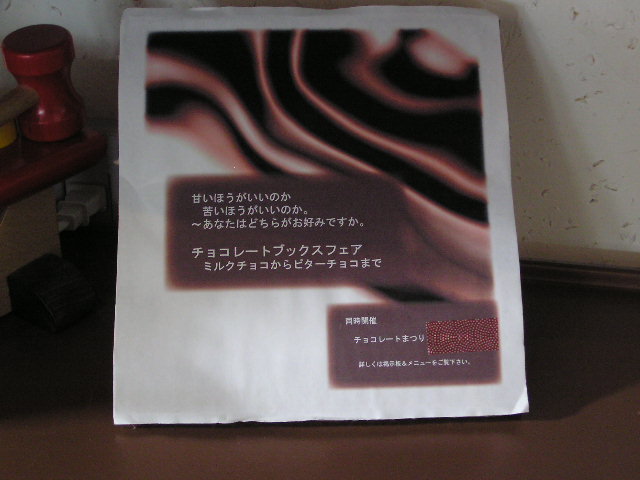 祝!4周年\(^O^)/ 開店記念日は1月21日。 そう今週の月曜日だったのです。休みの日でもブログを更新しようと思っていたんですが、出来なかったのです。 皆さまに支えられて、無事4年間やってこられました。ありがとうございました。ただただ感謝です。 ご存じのように有報堂の名前の由来は、情「報」が「有」るところ(「堂」)です。 もう一つは、「報いが有る」という意味が含まれています。頑張った分のいいことがあるように、やっただけの甲斐があるようにという願いが込められています。 努力してやったことがちゃんと評価されること。正しいことが正しいと認められること。頑張ってやり続けたことが必ず報われること。このことが社会全体の当たり前になっていけば、だれもがやりがいを持って仕事が出来るし、意欲を持って勉強も出来る。好きな趣味にも打ち込めるのだと思っています。 報いが有る世の中になるように、有報堂が出来ることは何なのか常に考えていきたいと思います。今年1年有報堂へ来られる方たちに「来てよかった」と言ってもらえるように。有報堂が発信する情報を受けた人たちが「有報堂にノッてよかった」と思ってもらえるような年にしたいと思っています。 今年も新たな企画を計画中!5年目の有報堂も目が離せないぞ。 やるのだ。 フェア本棚は、比較的 なってきています。 年々チョコレート本フェアに出る本は増えていますが、倉庫から持ち出せずにフェアが終わってしまい、日の目をみないチョコレート本もあります。 「今年こそ、チョコレート本を全部フェア棚に!」とブックス担当は、意気込んでいますが。「毎年言っているよね」とつっこまれています。「今年こそは・・・」だそうですよ。どれぐらいフェア棚が増えるか注目を。 チョコレート本を読みながらちょっと一服はいかがですか。 もう少ししたら、人気のあのまつりも始まりますよ。 ※1/19・20(土日)のカフェは、出張のため臨時休業となります。申し訳ありませんが、ご了承ください。その他の1月の営業のお知らせは、12/27の記事にあります。ブログ右側の営業カレンダーもご覧下さい。 ※カイロは予約制にて営業しております。予約が埋まってしまいご希望のお時間を承れないことが増えてきましたので、お早めにお問い合わせ・ご予約をいただきますようお願いいたします。 期間限定で、 をやっています。ゆでてつぶしたさつまいもを入れた、どっしり、しっとりとした食感です。 横に添えたのは、飴色に煮た紅玉りんごです。甘酸っぱいりんごとケーキを一緒にどうぞ。 数に限りがありますので、なくなり次第終了です。 ※セットでドリンクをご注文いただくと合計金額から100円割引になります。 ※1/19・20(土日)のカフェは、出張のため臨時休業となります。申し訳ありませんが、ご了承ください。その他の1月の営業のお知らせは、12/27の記事にあります。ブログ右側の営業カレンダーもご覧下さい。 ※カイロは予約制にて営業しております。予約が埋まってしまいご希望のお時間を承れないことが増えてきましたので、お早めにお問い合わせ・ご予約をいただきますようお願いいたします。 またしても 今日は凄いです。この冬一番です。有報堂スタッフも家に帰れるかどうか分かりません。お客さんも来れるかどうか分かりません。 こんな時には、 有報堂Bの雪の日のお薦めです。美味しい牛乳でほうじ茶を煮出した、ほうじ茶ミルク。お店で飲んでいるのに、ご自宅でこたつにあたってほっこりしているような気になりますよ。有報堂Bはカフェオレ好きですが、このほうじ茶ミルクにお砂糖を多めに入れて甘くして飲むのも好きです。冬季限定ドリンクのほうじ茶ミルク。現在チャイが独走中ですが、こちらもぜひおためしくださいね。 ※1/19・20(土日)のカフェは、出張のため臨時休業となります。申し訳ありませんが、ご了承ください。その他の1月の営業のお知らせは、12/27の記事にあります。ブログ右側の営業カレンダーもご覧下さい。 ※カイロは予約制にて営業しております。予約が埋まってしまいご希望のお時間を承れないことが増えてきましたので、お早めにお問い合わせ・ご予約をいただきますようお願いいたします。 今年もやるよ。 「第9回伊那夜の街オリエンテーリング」 有報堂や愉快な仲間たちも所属している上伊那民商で主催しています。今年も伊那市の後援がとれました。ありがとうございます。 日 時 3月6日(水) 18:00〜18:45受付 スタート19:00 集 合 伊那市セントラルパーク 参加券 3,000円(当日販売は致しません) ※参加店でも購入できます。 〈ルール〉 ※当日受付でチケットと交換でコース表をもらう。 ※一斉にスタートし指定の順序でお店を回り、スタンプをもらう。(用意されたメニュー以外は別途料金) ※午後9時までにゴールされた方の中から抽選で、参加店で当日限り使用できる「飲食券」を進呈。(1万円1本、5千円6本、3千円20本) お問い合わせは、上伊那民商(0265−72−0