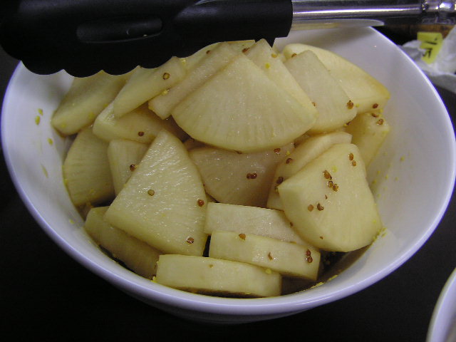 水餃子定食は人気で、暫定メニューのはずがずっと続いています。人気の秘密は、小鉢ではないかと考えています。 最近水餃子定食の小鉢で人気なのは、 これは、予約でもめったにお出しすることがないので、水餃子定食で食べるしか方法はありません。 酢と醤油をベースに、中華材料の花椒を入れて漬ける即席漬けです。色は茶色いですが、酢をきかせているので、塩気は控えめです。普通の山椒とはまた違ったさわやかな風味で、ごはんがすすみますよ(水餃子定食はごはんがおかわりできます)。いまは大根が美味しい季節なので常備しているため、かなりの確率で食べることが出来ます。昨年は、水餃子でこれを気に入って「瓶で売ってほしい」という方があったほど。ぜひ、冬の間におためしくださいね。 というわけで ☆被災地応援頑張りメニュー(募金付)☆ 水餃子定食(¥900)、フローズンヨーグルト(¥500)です。 寒くて寒くて暖まりたいという方は、水餃子定食を食べよう! ペチカの前で暖をとって、冷たいものが食べたくなったという方は、フローズンを食べよう! ※1月の営業のお知らせは、12/27の記事にあります。ブログ右側の営業カレンダーもご覧下さい。 ※1/13(日)のカイロは出張のため、臨時休業とさせていただきます。あらかじめご了承ください。なお、カイロは予約制にて営業しております。予約が埋まってしまいご希望のお時間を承れないことが増えてきましたので、お早めにお問い合わせ・ご予約をいただきますようお願いいたします。 12月に急遽開催した「きつねまつり」(■■■)皆さんコンプリート出来ましたか? 気がついている方もいるでしょう。急遽開催したので、景品のお知らせをしていませんでした。景品は、 二種のきつねうどん(■■■)と同じく、焼いた揚げと煮た揚げが入っています。それに根菜をたっぷり、きのこも入って具だくさんです。焼いた揚げと煮た揚げ、それぞれにカレーうどんのだしがしみこんで、美味しい!! あったまります。冬にうれしいカレーうどん。今回は、コンプリートした方の特典です。 有報堂特製カレーうどんは、予約やイベントの時にしか食べられません。ぜひ食べたい!という方は、ご予約いただくか、ライブなどのイベント予告を、要チェックです。 きつねまつりは終わりましたが、2013年は新たなまつりも準備中!乞ご期待! ※1月の営業のお知らせは、12/27の記事にあります。ブログ右側の営業カレンダーもご覧下さい。 ※カイロは予約制にて営業しております。予約が埋まってしまいご希望のお時間を承れないことが増えてきましたので、お早めにお問い合わせ・ご予約をいただきますようお願いいたします。 |
