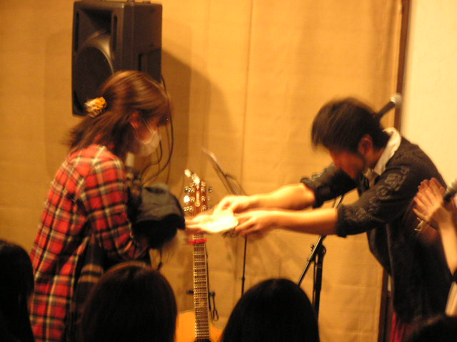 最近の予約メニューでよく出るのは、 生ものが全然ない有報堂っぽいちらし寿司です。二種のきつねうどん(■■■)と同じように焼いた揚げと煮た揚げを使っています。焼いた揚げは酢飯のなかに混ぜ込んでいますが、煮た揚げは上に乗せています。煮た揚げを混ぜ込むとべちゃべちゃになるからね。いなり寿司の変形のような感じです。 先日のご予約の方には、このちらし寿司と 豆腐ももちろんまめやさんのですよ。そして、お客様の希望で 通常のコース料理に更に足されています。こんなに食べられるのかしら・・・コース料理でもきつねまつり状態です。お揚げがとっても美味しかったようです。 このまめやさんの油揚げは、年明け1月8日(火)から発売開始ですよ。1枚80円(約7cm×9cm)で販売するそうです。油揚げの注文は、まめや(0265-94-2024)か有報堂にお問い合わせください。 年内は、有報堂でしか食べられないまめやさんの油揚げ、貴重です。きつねまつり(■■■)も年内いっぱいです。今年の営業日は残すところ後5日!油揚げを食べに有報堂へ急げ! ※本日12/26(水)のカフェは、貸切のため通常営業は19:00までとさせていただきます(L.O.18:00)。ご了承ください。その他の12月の営業のお知らせは、11/28の記事にあります。ブログ右側の営業カレンダーもご覧下さい。 ※カイロは予約制にて営業しております。予約が埋まってしまいご希望のお時間を承れないことが増えてきましたので、お早めにお問い合わせ・ご予約をいただきますようお願いいたします。 久々にレジ横のテイクアウト商品に新しい顔が・・・ 黒ごまマフィン(■■■)と同じように黒いですが、こちらは甘いのです。チョコレートだからね。甘党の有報堂Aは、マフィンの中で一番美味しいと思っているようです。試作の段階で「もう少し甘く」「もっとチョコレートを多く」と注文をつけてきました。やはりチョコレート星人です。 冬はやっぱりチョコレートですね。ちょっと温めると、チョコがとろけてさらに美味しい。レジ横で売っていますが、店内でもお召し上がりいただけます。深煎りの水出しコーヒーや、カフェオレ(各350円)と、よくあいます。 食べてみたい! 年末年始のおやつにしたい! おつかいものにしたい!という方は、予約がおすすめです。1個からでも、お取り置きしておきます。有報堂は30日まで通し営業中!ぜひ、おためしくださいね。 ※12/26(水)のカフェは、貸切のため通常営業は19:00までとさせていただきます(L.O.18:00)。ご了承ください。その他の12月の営業のお知らせは、11/28の記事にあります。ブログ右側の営業カレンダーもご覧下さい。 ※カイロは予約制にて営業しております。予約が埋まってしまいご希望のお時間を承れないことが増えてきましたので、お早めにお問い合わせ・ご予約をいただきますようお願いいたします。 ライブ(■■■)のあった一昨日は、 あちらこちら なので、朝からみんなで一生懸命 が、有報堂Bは きちんと雪かきをしてください。「凄いでしょう〜」みんなに誇らしげに見せていますが、受け入れられていません。 後ろの二つの正体は、 キャンドルを入れるかまくらでした。ライブの前に点灯です。かなりかっこいい! 再び誇らしげに見せびらかす有報堂B。「なかなかやるなあ」と代表が感心しています。有報堂Aは、自分の教えたスノーキャンドルの形と違うのでおかんむりです。 雪の日でも楽しめる有報堂に一服しに来ませんか? 30日まで、明日の火曜日も休まず通しで営業中ですよ。ご来店お待ちしております。 ※12/26(水)のカフェは、貸切のため通常営業は19:00までとさせていただきます(L.O.18:00)。ご了承ください。その他の12月の営業のお知らせは、11/28の記事にあります。ブログ右側の営業カレンダーもご覧下さい。 ※カイロは予約制にて営業しております。予約が埋まってしまいご希望のお時間を承れないことが増えてきましたので、お早めにお問い合わせ・ご予約をいただきますようお願いいたします。 昨日は凄い雪でしたねえ。朝から雪かきでぐったりの有報堂スタッフでした。夜のライブが心配でしたが、天気も持ち直して無事開催されました。 おなじみの 迎えて でやってきました。バンドの名前は、「宇宙新年」!?何故この名前になったかは、ライブに来た人にしか分からないのです。 それぞれの持ち歌や即興の演奏や皆さんお馴染みのカバー曲など、盛りだくさんの内容で大盛り上がりです。 有報堂代表と有報堂Aは「大槻さんをどこかで見たことがある」と囁いています。ずいぶん以前に、有報堂代表と有報堂Aが企画したイベントに別のバンドで出演してくださっていたのでした。 このクリスマスシーズンに、オサカさんや福澤さんのライブをやるのがかなり定例化しています。そのライブの恒例は、出演者からの 争奪 欲しい人と出演者でジャンケンです。 おめでとうございます。 オサカさんからは象さんグッズ、福澤さん、大槻さんからはご自身のCDがプレゼントされました。 し