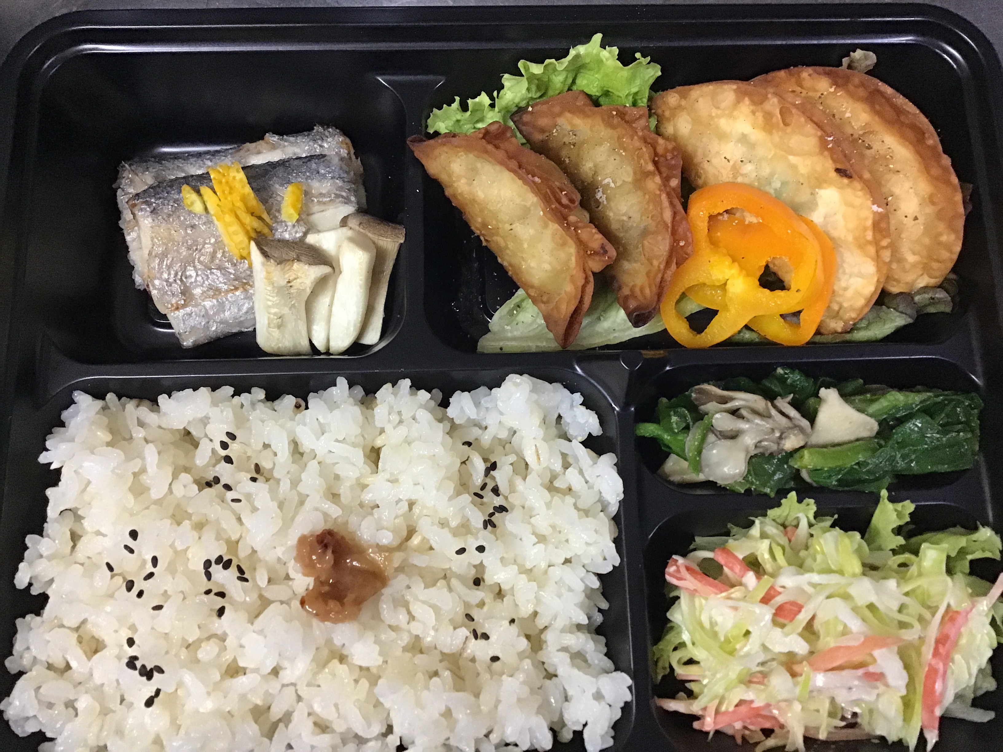 舞茸の炊き込みご飯、筑前煮、ローストポーク、魚介春巻き(たら、ホタテ・エビ・エリンギ)、大根の酢漬け、里芋サラダでした。これにチョコバナナパウンドがついて1,200円でした。 お陰様で大好評でした。ありがとうございます。 有報堂のお弁当は、野菜が多くて味付けも薄めにしているので、ヘルシーです。ご希望があれば飲み物やデザートもお付けします。 単価は1000円〜、個数は昼10個〜・夜20個〜で承ります。個数によって単価はご相談に応じます(お安くできることもあります)。有報堂のお弁当はいかがですか?お弁当は予約制です。スタッフにお気軽にお問い合わせください。 ※3月の営業のお知らせは2/29の記事(■■■)にあります。ブログ右側の営業カレンダーもご覧下さい。 ※カイロは完全予約制にて営業しております。早めに電話または窓口でお問い合わせ・ご予約をいただきますようお願いいたします。 先日作った安心安全、完全手作りの 雑穀入り五分づきごはん、太刀魚塩焼き、揚げ餃子(豚肉・海老)、ほうれん草辛子和え、コールスローでした。これで1,000円。 有報堂のお弁当は、野菜が多くて味付けも薄めにしているので、ヘルシーです。ご希望があれば飲み物やデザートもお付けします。 単価は1000円〜、個数は昼10個〜・夜20個〜で承ります。個数によって単価はご相談に応じます(お安くできることもあります)。有報堂のお弁当はいかがですか?お弁当は予約制です。スタッフにお気軽にお問い合わせください。 ※3月の営業のお知らせは2/29の記事(■■■)にあります。ブログ右側の営業カレンダーもご覧下さい。 ※カイロは完全予約制にて営業しております。早めに電話または窓口でお問い合わせ・ご予約をいただきますようお願いいたします。 |