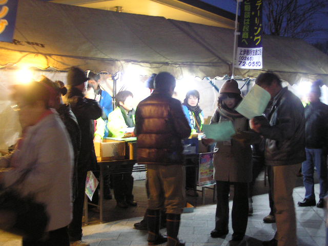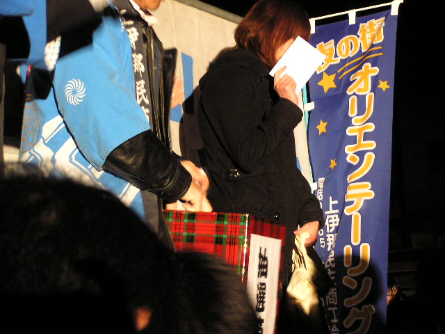 雪かきしている間もずっと雪が降っていて、夜オリは開催出来るのか心配でしたが、午後からは雪も止んで晴れ間も。実行委員の方々は、13時に集合してスタート&ゴール地点のセントラルパークの雪かきです。有報堂代表も、カイロの予約が全て終了してから、すっ飛んでいってずっと雪かきをしていましたよ。 その甲斐あってセントラルパークは、 受付開始の18時より前から、すでに 受付が始まると 上伊那民商の会長と、後援を頂いた伊那市の白鳥市長から挨拶が。 19:00になったら、さぁ出発です。 今回有報堂カフェ部門のまわったコースは「J-2」です。 1軒目は 看板の電気はもう切れそうです・・・一抹の不安が・・・ 結構広いお店ですが、ママ(おばあちゃん)が一人で仕切っています。二組同時に入ったらもうダメです。オーダーが覚えられず、15分たっても飲み物が出てきません。夜オリのルールは、移動時間込みで一店舗30分の滞在です。果たして飲んだり、食べたりして店を出て行くことが出来るのでしょうか・・・。20分過ぎに無事飲み物が。オーダーしたものとは違っていたけど・・・。 25分ぎりぎりで、お通しと このししゃもは美味しかったので、有報堂Aは少し機嫌を直しています。おばあちゃんの接客があまりにもつきぬけていたので、有報堂Bは手伝いをしてあげたくなったようです。1軒目と2軒目が割と近いお店だったので、無事完食して店を出ることが出来ました。 気を取り直して2軒目です。 寿司好きの有報堂カフェ部門は、うきうきしています。「天丼かちらし寿司が選べます」と言われて、一緒にまわっている5人全員がちらしを選んでいます。 出てきました。ここは、お酒は別料金のようです。ちらし寿司の具に生ものが少なく、お酒も飲めないので有報堂Aがご機嫌斜めになっています。追加で鉄火巻きを注文しています。今回一緒にまわった、Hさん、Tさん、Uさんと有報堂Bはあまり飲まないのでアルコールが出なくても気にしていません。鉄火巻きは巻いてある「鉄火」がたっぷりで美味しかったです。みんなで食べてぺろりです。 3軒目は、「幸あり」。(看板の写真を撮り忘れました) が出てきました。有報堂Aは焼酎のロックを、有報堂Bは焼酎のお湯割りを頼んでいます。有報堂Bは1軒目でお湯割りを頼んだのに水割りが出てきたので、お湯割りが出てきただけでとても喜んでいます。韓国人のママさんと韓国ネタで大盛り上がりです。ママさんは19歳の娘さんがいるそうです。とてもそんな大きなお子さんがいるように見えず、みんな「若いですね」と驚いています。普段はカラオケ&飲み放題がセットのコースをやっているそうです。 4軒目は パブです。フィリピンの綺麗なお姉さんがたくさんいます。相変わらず国際色豊かな夜オリです。カラオケでみんな盛り上がっています。有報堂Bは、カラオケをすすめられましたが、前回駒ヶ根の夜オリで酔いがまわり過ぎて1曲全うできなかったので、遠慮しています。一緒にまわったHさんTさんUさんが熱唱しています。 最後は、店中総立ちで踊っていました(踊っている様子は、手ぶれしていて良い写真がありませんでした)。飲んで歩いて、飲んで踊って、だいぶ酔いがまわってきていますが、21時までにセントラルパークに戻らないと抽選会に参加できません。 20:55頃からみんなダッシュでセントラルパークに向かっています。途中、中溝通りの出口でお振る舞いの豚汁を食べている人たちに、「急がないと抽選会に間に合いませんよ〜」と声をかけながら走っていく有報堂B(良い人です)。「ライバルが減るから声をかけなくていいのに」とぶつぶつ言いながら走っていく有報堂A(悪い人です)。 21時には間に合いましたが、 抽選券の引換所に近づくのが一苦労です。 抽選箱もなかなか舞台に届きません。 司会が交通整理中です。 抽選会では、夜オリ参加店で当日限り使用できる「飲食券」が当たります。3等は3000円で20本あります。2等は5000円で6本あります。1等は、10,000円です。 3等は5人の、 自分で自分の番号を引き当てた強運の人もいましたよ。 2等は 「当たった〜」「外れた〜」 と大騒ぎです。 1等は おめでとうございます。\(^O^)/ 終わった・・・何も当たらなかった・・・と思った人にも嬉しいお知らせ、 ビールや発泡酒やノンアルコールビールがあたります。キリンビールはいつも大盤振る舞いです。ありがとうございます。 大盛り上がりの抽選会後、みんな夜の街に二次会にと消えてゆくのでした。 有報堂スタッフたちは、セントラルパークの片付けなども無事終わった22:30過ぎ・・・疲れていたけど、時間も遅かったけど愉快な仲間たち(上伊那民商青年部)と元気に二次会に向かいます。 有報堂カフェ部門のコースはちょっと外したので、別のコースに入っていた「中華居酒屋華久(はなきゅう)」で二次会です。今回は、夜オリ会場で愉快な仲間が増えた!!ので、みんなご機嫌です。それぞれのまわったお店の情報交換、商売の話しにと