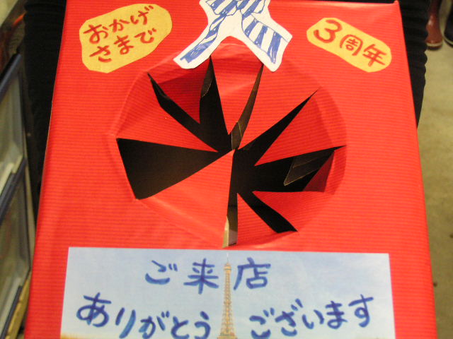 レジ横のテイクアウト商品に、またまた新しい顔が・・・ 冬といえばチョコレート。チョコレートまつりは鋭意準備中ですが、テイクアウトもチョコ関係を多くしています。チョコパイ・チョコカンパーニュに続く、おやつにも軽食にもなるすぐれものです。 ミルクチョコと相性のいいバナナをたっぷり入れて焼きました。運が良ければ、チョコの塊がごろごろと・・・。バナナはフェアトレードの、無農薬バナナを使用しています。 そのままでもふんわり柔らか。ちょっと温めても美味しいですよ。特に牛乳とよくあいます。おやつに、朝食に、ホットミルクやカフェオレと一緒にどうぞ。 来るべきチョコレートまつりに向けて、レジ横も充実する予定です。忘れずにチェックを!!! ※1月の営業のお知らせは、12/27の記事にあります。ブログ右側の営業カレンダーもご覧下さい。 今年初の新メニューは、 冬季限定 米めんやうどんなど、麺類の登場が続いておりましたが、ようやくあったかごはんメニューができました。 やわらかく炊いた玄米を、豆乳と野菜を入れてリゾットにしました。通常メニューのリゾットはトマト味ですが、このリゾットは豆乳に玄米粉を溶いたもので玄米を煮ています。まろやかな豆乳と香ばしい玄米粉で、和風のホワイトソースになっています。味付けも、ちょっと和風に味噌を加えています。雑炊のような感じにもなっていますが、とろみのついた豆乳と玄米でボリュームもありますよ。 今回は、せっかく豆乳と玄米を使っているので、動物性の食材を入れずに作ってみました。なたね油、野菜のだし、玉ねぎ、きのこ、味噌など、ベジ仕様になっているので、気になる方はぜひお試しくださいね。 年明け早々から冷え込んでいます。有報堂のあったかメニューで、内側から身体をあたためましょう。ペチカもしっかり焚いてお待ちしております。 ※1月の営業のお知らせは、12/27の記事にあります。ブログ右側の営業カレンダーもご覧下さい。 吹雪いています。新年最初の通常営業は散々な天気です。外に出る気になりませんね。 今年も準備が出来ました。 今年は去年よりも早く準備が出来ました。有報堂も成長しています。 いずれも予約にて承ります。3日前までに、営業時間中に店頭またはお電話でご予約ください。 昨シーズン、ご好評をいただいた自家製生チョコ。冬になると巷にもチョコレートのお菓子がたくさん出ていますが、生チョコほど市販品と違いが出るものはないなと実感しています。不純物・添加物は一切入っていないので、有報堂生チョコは要冷蔵で、賞味期限は14日程度と短くなっています。純生クリームなどを使用すると、やはり長くは保たないのです。 洋酒もちょっと入って、「ブランドものに負けない味」と自信をもっておすすめしています。口溶けも、とてもなめらかです。ぜひ一度、食べ比べてみてください。 チョコの本格シーズンとなる2月に向けて、まずは自分用に、一箱いかがでしょうか。一度食べてみて、良かったらまたリピートしてくださいね。ご連絡、お待ちしております。 ※1月の営業のお知らせは、12/27の記事にあります。ブログ右側の営業カレンダーもご覧下さい。 ・・・年越しです。 今年は、3月の東日本大震災の影響により、有報堂だけではありませんがサービス業は大苦戦でした。こんな時でも何とか無事乗り切ることが出来たのは、皆様に支えて頂いたお陰です。ありがとうございました。 一年目より二年目、二年目より三年目と徐々に出来ることが増え、成長しているような気はしますが、やはりまだまだです。いつになったら落ち着いてお店を回せるようになるのでしょうか。(一生無理かもしれません・・・) 今年は、日本のあり方が問われた一年でした。お店の建設中から「安心・安全」「エコ」「平和」「人との繋がり」を意識してきた有報堂としては、この路線は間違っていなかったと実感しています。そして、ここにこそ立ち戻るべきだと考えさせられた一年でした。これらのコンセプトと「経営」を両立することは、とても難しいことですが、これからも皆さまと一緒に、追求していきたいと思っています。 今年も一年間皆様には大変お世話になりました。 来年もよろしくお願いいたします。 皆様、どうぞよいお年を・・・ 年明けからは三周年企画が発動か!? ※年明けは1/1〜10まで休業させていただきます(1/2、3、8の貸切営業を除く)。何卒ご了承ください。その他の年明け1月の営業のお知らせは、12/27の記事にあります。ブログ右側の営業カレンダーもご覧下さい。 |