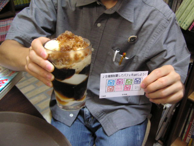 台風の動きが読めない・・・ 昨日は3日(土)の野外イベントが中止になったとお知らせしましたが、今日になって判断は明日の昼頃と言われました・・・ 台風がそれるかも・・・それないかも・・・誰にも分からない。 有報堂としてはイベント用に仕入れをしてしまっているものがあるので、イベントが開催されると助かるのですが、果たしてどうでしょう。 と言うわけで、明日の営業は、貸切なのか一日通常営業か、半日営業か判断をつけかねています。決まり次第すぐにブログでお知らせしますので、やきもきしてお待ち下さい。 ※9月の営業のお知らせは8/31の記事にあります。ブログ右側の営業カレンダーもご覧下さい。 夏まつりモードに押されて、影の薄くなってしまったフロートまつり(■■■)ですが、着実にチャレンジャーを増やしています。しかし、皆さんなかなか猛者(■■■)にはなれません。(だからこそ猛者) そんな猛者たちがゲット出来たのは、 フロートまつりも残すところあと4日!! 今日を除けばあと3日! 特典のパフェへの交換は、今月いっぱい大丈夫なので、まずはフロート制覇をこの3日間で成し遂げてください。 フロートまつりを応援するかのように、3日(土)は当初貸切営業の予定でしたが、台風のせいで野外イベントが中止に・・・なってしまったので通常営業いたします。 このチャンスを逃すな!! 悔いの無いよう存分に闘うが良い!!!更なる猛者の登場を待つ!!!! ※9月の営業のお知らせは8/31の記事にあります。ブログ右側の営業カレンダーもご覧下さい。 9月の営業のお知らせです。 月・火は定休日ですが、祝日の関係で月曜日に営業している日もあります。 ↑↑↑ クリックすると大きくなります。 9月変則営業 10日(土)14:30閉店(13:30LO) 19日(月)祝日のため営業 貸切の予定は、 9月 3日(土)出張営業のため終日貸切(通常営業はいたしません) 8日(木)夜貸切 14日(水)夜貸切 17日(土)16:30〜貸切(L.O.15:00、close16:00) 21日(水)夜貸切 23日(金)夜貸切 となっております。夜貸切の日は、通常営業は19:00までです。(いずれも通常営業の1時間前がL.Oになります) 貸切以外は通常営業をしています。 ぜひお立ち寄りください。 夜の予約営業も貸切日以外は受け付けていますので、 お気軽にお問い合わせください。 晴れています。有報堂スタッフが悔しがっています。今日にすれば良かった夏まつり・・・ 「有報堂夏まつり2011〜有報堂と愉快な夏休み〜」の節電・電磁波レスライブは、震災支援のトークライブも交え、無事終了しましたよ。 ライブのトップバッターは、 有報堂Aのお気に入り・アンパンマンの歌(つるPOMのオリジナル曲)が、最初に聞こえてきました。トークライブのトップバッターもつるPOMです。栄村と宮城県に行ったときの体験を話してくださいました。 トークライブの二番手は、 宮城、栄村、陸前高田など、5回も被災地に行ったそうです。 歌唄いの二番手は、 最近歌を歌い始めたそうです。しぶい声を出します。 続いてトークライブ ご夫妻も、1週間宮城にボランティアに行った経験を語ります。みんなが出来ることをちょっとずつやれればいいなという思いになります。 以前ダーチャさんが「1週間も仕事を休んでボランティアに行けるのは、お客様のお陰。きっちり自分の生活基盤が出来ているからこそ、こういうことがやれると思う。お客様の中に、何にもやれなくて心苦しいとおっしゃる方がいるけど、そんなことはないと思う。お互いが支え合っていることが、直接的ではないにせよ被災地支援になる」とおっしゃっていました。本当にその通りだと思います。 そしてお馴染み 大島さんも仙台に行かれたそうです。仙台で大島圭太の持ち歌「キリンラガービールを飲みながら」を歌ったら、キリンビールの支社の方が涙ながらに話しかけてきたというエピソードを紹介されていましたよ。 投げ銭方式だったので、おひねりが大島圭太に向かって投げつけられています。小銭ばかりなので、大島圭太が「これも有難く頂きますが、現代風に封筒も回します」と冷静に対処しています。 大島圭太は今回も外に出て大盛り上がり♪です。 歌唄いお次は、 オリジナルだけでなくアンパンマンのマーチも歌っています。これはつるPOMの歌ではなく、アンパンマンの主題歌のほうです。アンパンマンのマーチをとても清らかに歌っています(by有報堂B)。オサカさんの癒しオーラが出まくっています。 歌唄いのとりは、 美しい歌声が響きます。お客さんから「有報堂にはもったいない」と声がとんでいます。どういう意味か(-_-メ) 昨年の夏まつりで有報堂に初登場して以来、有報堂のお客さんを虜にしている福澤さんです。 のコラボです。癒し度up です。 「ひとつにはならないが被災地を応援だ!!」の震災支援は、トークライブの他に 震災支援ブースも作り(写真撮り忘れました・・・)、原発本なども別立てで並べておいたら、熱心に読んでいるご家族などがいてブックス担当が大喜びしていました。 震災
