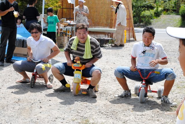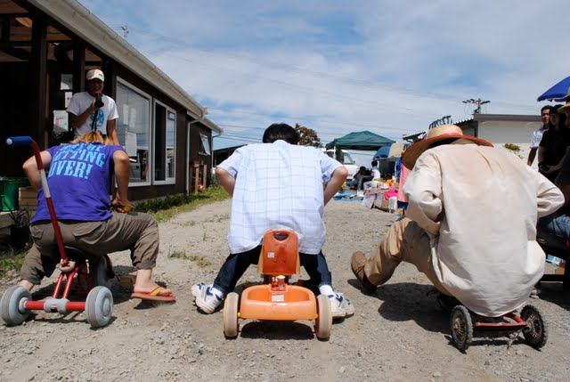 8月21日・日曜日(10:00〜16:00)の 「有報堂夏まつり2011〜有報堂と愉快な夏休み〜」では、昨年白熱の試合を見せた「三輪車A級ライセンス大島杯」を今年も行います。 レース参加者にはもれなく景品がついてきます(野菜とか・・・)。さらに昨年同様1〜3位には、豪華景品(当日のお楽しみ)を贈呈します。 三輪車レースに参加する選手を熱烈募集中!!です。 昨年まつりのムードを一気に盛り上げた三輪車レース。今年もいっちょ盛り上げてやるかと考えているあなた、昨年「次は勝つ!」と騒いでいたあなた、今年も是非エントリーを。 レースは11:00開始(エントリー〆切10:50)です。お昼を食べてゆっくりいこううかなと考えていた皆さん、ライブから参加しようかなと考えていた皆さん、それでは間に合いません。朝ご飯も昼ご飯も夕ご飯も有報堂夏まつりで食べたり、帰りにテイクアウトしたりして調達するといいでしょう。 この他にも夏まつりの企画は盛りだくさんです。レースに参加しなくても、ぜひお早めにご来場ください。 ☆夏まつり参加者特典☆ まつり当日、会場で (カフェ)食事予約をされた方 ⇨ 300円×ご予約人数分を割引! (カイロ)通常の施術予約をされた方 ⇨ 基本料金から1000円引き! 有報堂夏まつりに参加して予約をとって帰ろう! また、マイカップ持参の方は、ドリンク50円引きに!! (まつり当日に限り、有報堂タンブラー以外でも割引になります。) ※8/20(土)は、夜間貸切のため通常営業は17:30までとなります(LO16:30)。何卒ご了承ください。その他の8月の営業のお知らせは7/27の記事にあります。ブログ右側の営業カレンダーもご覧下さい。