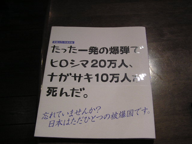臨時休業と定休日を使って長崎に行ってきました。 今年は、 2種類の鶴を繋ぎました。 大きい折り紙は、Kさんご一家が折ってくれました。ありがとうございました。 全部で 繋ぎました。小さい鶴と大きい鶴は、同じ30羽ずつ繋げたのに全然長さが違います。 長崎の平和公園に奉納してきましたよ。 代表が代表で 折り鶴にご協力を頂いた皆様ありがとうございました。今後ともよろしくお願いします。 平和のブックフェアは8月末まで開催しています。有報堂でフロートを食べながら、戦争や平和の本を読んでみませんか? 笑いながらフロートまつりをやれるのは、平和だからこそですね。有報堂のコンセプトの一つは「平和であってこそ商売繁盛」です。 平和な世の中を作るために、少しでも力を尽くしたいと思っています。皆さんも一緒に平和について考えてみませんか。 ※8/12(金)は、夜間貸切のため通常営業は17:30までとなります(LO16:30)。何卒ご了承ください。その他の8月の営業のお知らせは7/27の記事にあります。ブログ右側の営業カレンダーもご覧下さい。 7/30から始まった「フロートまつり」(■■■)。 休みに入る前の8/6(土)に、ついに出た 1週間でフロート全種類+1=合計7つのフロートを制覇したHさん。この調子なら「フロートまつり」開催中にあと3回位は制覇出来るのではないでしょうか。再チャレンジお待ちしております。 フロートを食べた後、「すぐにはパフェは食べられない」と賞品交換はまたの機会に持ち越されました。 さて、そんな猛者Hさんが最後に注文したお好みフロートのオーダーは アイスティー+バニラアイスです。 何と!カスタマイズにチャレンジしました。そうです、最後のお好みフロートは、カスタマイズが出来るのです。まさしくお好み!お好きなドリンクとアイスの組み合わせを選べます。(カスタマイズしなくてももちろんOKです) 350円ドリンクをベースに作るときはフロートは500円、450円ドリンクで作るときはフロートは600円になります。+100円すれば、氷コーヒーやチョコバナナミルクもフロートに出来るということです! 基本は皆さまの選んだとおりにカスタマイズしますが、あまり突飛な組み合わせを選ぶと悲しい味になります。(例えば、飲むヨーグルト+抹茶アイス)・・・もし、悲しい味になったときには、自分が悪かったんだと思ってあきらめてください。大丈夫です。お好みフロートを外しても、賞品の特製パフェがありますから(^_^)b 有報堂A的には、氷コーヒーフロートが一押しです。 皆さんも猛者になってみませんか? ※8/12(金)は、夜間貸切のため通常営業は17:30までとなります(LO16:30)。何卒ご了承ください。その他の8月の営業のお知らせは7/27の記事にあります。ブログ右側の営業カレンダーもご覧下さい。 7/10の記事(■■■)でもお知らせしましたように、8月21日(日曜日)10:00〜16:00で「有報堂夏まつり2011〜有報堂と愉快な夏休み〜」を開催します。 ライブやフリマをはじめ、お楽しみ企画が目白押し!の予定です。 今年の夏まつりでやるライブは、「節電&電磁波レスライブ」です。アンプもマイクも使わない生音のライブです。 昨年の夏まつりでも、電磁波過敏症の方のために電磁波レスライブを企画しました。今年は電磁波レスももちろんですが、昨日も書いた(■■■)ように、原発の是非を巡ってみんなが電気について考え始めている今だからこそ、節電も訴えたい!と思っています。 アンプラグドはもちろん、日中のライブなので基本は照明もつけません。観客から出演者まで、ライブの時間帯は携帯電話の電源を切ってもらいます。電磁波シャットアウト、節電のためにやれることは最大限やるライブを目指します。 ライブの出演者は、 そして、からさわちなつ(有報堂初出演なので写真はありませんm(__)m)です。 ライブは12:30スタートです。皆さん節電・電磁波レスライブを聞きにお越しください。 おまつりの一環ですので、入場料はありません。その代わり、出演者への投げ銭(おひねり)をお願いします。投げ銭の額は任意ですが、「素晴らしい」と思ったらたくさん、「うーん・・・」と思ってもたくさんお願いします。ご来場お待ちしております。 今年は、ライブの中盤で震災復興支援のトークライブも開催予定です。被災地に支援に行った方々のお話しを聞きながら、今私たちに出来ることを考えたいと思います。乞!ご期待。(詳しくはまたブログでお知らせしますので、チェックを忘れずに) ☆夏まつり参加者特典 まつり当日、会場で (カフェ)食事予約をされた方 ⇨ 300円×ご予約人数分を割引! (カイロ)通常の施術予約をされた方 ⇨ 基本料金から1000円引き! (どちらも去年より大盤振る舞い) 有報堂夏まつりに参加して予約をとって帰ろう! ※明日8/7(日)は、誠に勝手ながら、都合により臨時休業とさせていただきます。何卒ご了承ください。その他の8月の営業のお知らせは7/27の記事にあります。ブログ右側の営業カレンダーもご覧下さい。 昨日の続きだよ。 「