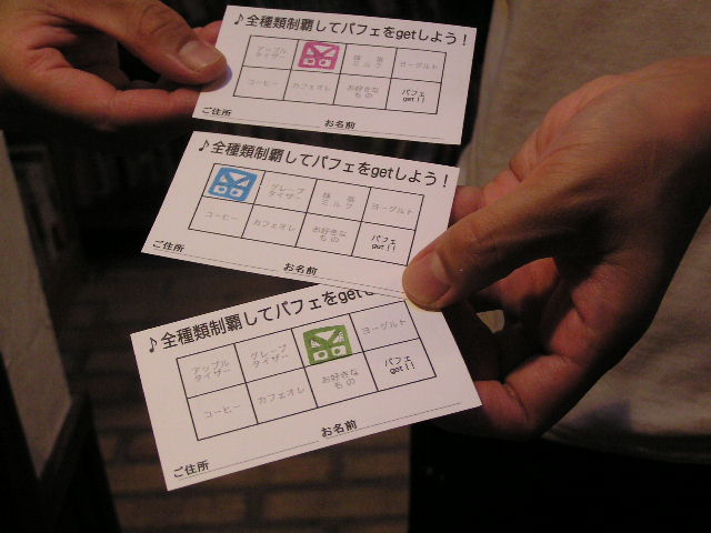 毎年恒例の カフェの本棚一本丸ごと 本日せっせと準備を始めたので、配置替えや新たな本の追加は随時行われます。毎日フェア棚をチェックしてくださいね。 いつものように今世界で 先の大戦で そして、銃後の長野では みんなで学習してみませんか。 そして、嘆いているだけでは始まらないので、 私たちに何が出来るのかも一緒に考えてみませんか。 今年も有報堂は、今週末に臨時休業を頂いて平和について考えるツアーに参加します。 お客様に 折って頂いた鶴もかなりの数になっています。 これを繋いで千羽鶴にします。(これがかなりの作業なので、来年はお客様に繋げる作業もやっていただこうかと考えている有報堂A) 何が出来るかの一つが、例えばこの折り鶴だと思っています。何かの意思表示をすることは、一歩を踏み出すこと。一歩を踏み出すことは、世界を変えること。だと考えています。自分の作りたい世界のために一歩踏み出すことは、案外簡単で些細なことかもしれませんよ。一緒に一歩を踏み出したいと思っている有報堂です。 この折り鶴は、今年は長崎の平和公園に奉納してきます。皆様の平和への思いをしっかりと届けてきたいと思っています。ご協力ありがとうございました。そして、今後ともご協力よろしくお願いします。 平和であってこその有報堂の商売です。 有報堂で戦争を読みながら、平和を読みながら、鶴を折りながら、平和について考えてみませんか。 今年は、例の人災だか事故だかのせいで「核」「原子力」への注目が集まっています。有報堂ブックフェアも、いつもにもまして「核」に力を入れています。詳しくは、明日ご紹介します。 ※来週8/7(日)は、誠に勝手ながら、都合により臨時休業とさせていただきます。何卒ご了承ください。その他の8月の営業のお知らせは7/27の記事にあります。ブログ右側の営業カレンダーもご覧下さい。 フロートまつり(■■■)が。 開始早々から順調にフロートのオーダーが入っています。 昨日いらっしゃったグループでは、早速 スタンプカードが出ました。お友達チャレンジではなく、個人個人で集めるようです。その心意気やよし!です。 写真を見て頂ければ分かるように、フロートの色に合わせてスタンプのインクの色も使い分けているようです。そんなことやりきれるのか!?と心密かに焦っている有報堂ブログ部・・・フロートのイメージと違う色でスタンプを押してしまっても笑って許してくださいね。 フロートまつり中なのに売り切れましたとは言えないので、アイスクリームの仕込みにも大わらわです。カフェ部門は万全の体制であなたのお越しをお待ちしております。 さあ君も今すぐフロートまつりに参戦だ!! ※来週8/7(日)は、誠に勝手ながら、都合により臨時休業とさせていただきます。何卒ご了承ください。その他の8月の営業のお知らせは7/27の記事にあります。ブログ右側の営業カレンダーもご覧下さい。 芝が 枯れたかな?と思っていたエリアにも新たに芝が生えてきて一安心です。 根が定着するまでは、「朝晩水まきが必要だ」と言われて、横着者の有報堂としてはやりきれるか心配でしたが、芝を植えてから(■■■)2週間くらいは、ほぼ毎日のように雨が降ったので、お陰様で有報堂スタッフはそんなに水やりをしなくて良かったのです。 「すごく良い砂をいれたねえ」「良い芝だねえ。高麗芝でしょ」とお客様から良く言われますが、有報堂スタッフはどこがどう良い砂なのかさっぱり分かっていません。運んでくださったAさんのご配慮です。芝は確かに値札には、高麗芝と書いてありましたが、カインズホームです。 何はともあれ全滅の危機は免れた有報堂芝、今年の夏まつりには(■■■)飲食スペースとして活躍する予定です。 芝に限らず、夏まつりの準備が着々と進んでいます。来月に入ったら随時ブログでお知らせしますので、毎日忘れずにブログをチェックしてくださいね。夏まつり当日も忘れずにご参加くださいね。 ※来週8/7(日)は、誠に勝手ながら、都合により臨時休業とさせていただきます。何卒ご了承ください。その他の8月の営業のお知らせは7/27の記事にあります。ブログ右側の営業カレンダーもご覧下さい。 まつりだ!!!! ・・・昨日は秋のようだと書いておきながら、真夏のフェアを明日から開催!! その名も「フロートまつり!!」 期間は、7/30(土)〜9/4(日)の約1ヶ月。 有報堂にある6種類のフロート(¥500)合計6杯+うちお好きなフロートさらに1杯=合計7杯の制覇で、有報堂特製パフェをプレゼント!!(賞品引換期間は9月末まで) スタンプラリー形式ですよ。まずは、この 手に入れます。後はひたすらフロートを食べるだけ。全種類制覇がルールです。 (お会計時にスタンプを押します) の6種類を、まず1杯ずつ食べます。さらに、この中からお好きなフロートをもう1杯。 ここまでで「もうおなかいっぱいだなぁ」なんて言ってる貴方、まだまだです。合計7杯食べ終わると、何と!有報堂特製パフェをゲ
