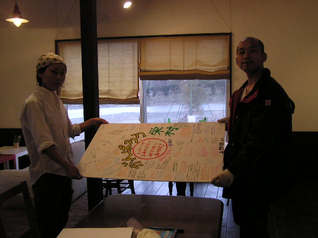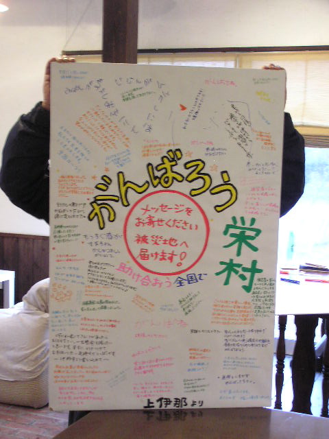 今年もやるよ。 安心・安全の国産レモンが手に入ったので、この4月は期間限定でレモンティーをお出しします。 昨年はいろいろと茶葉を探したりして難航しましたが、茶葉も国産レモンも計画的に仕入れができるようになりつつあります。冬季ドリンクの「はちみつレモン」も、「大盛りで!!」と注文してくださる方もありご好評をいただきました。 定番メニューの紅茶(ポット、¥350)にスライスレモンを添えてお出しします。ご希望があれば、通常のミルクも一緒におつけします。ポットなので紅茶はカップ約2.5杯ぶんあります。レモン、ミルク、ストレートと1杯ごとに変えてもいいかもしれません(かなりお得ですね)。 年度の変わり目でちょっと疲れているなという方、花粉症で鼻やのどがスッキリしないという方、さわやかなレモンの風味で、リフレッシュしませんか。 ☆被災地応援頑張りメニュー(募金付)☆ ペチカレー(¥800)、フローズンヨーグルト(¥500)好評発売中です。 ※4月の営業のお知らせは、3/27の記事にあります。ブログ右側の営業カレンダーもご覧下さい。 有報堂は、最近珈琲豆の仕入れ先を変更しました。(全てではありませんが) 松本にある自家焙煎珈琲のお店「豆工房」さんの豆を仕入れることにしました。 「大地にやさしく体にやさしく 安心しておいしく飲めるコーヒー」がモットーの豆工房さんのコーヒー豆は、安心・安全です。 減農薬栽培のコーヒーが主です。病虫害防除に使われている薬剤は、銅剤という予防剤で、日本では農薬指定されていないものです。そのため日本では、無農薬を名乗っても差し支えありませんが、ブラジルでは農薬指定のため豆工房さんでは減農薬と言っているそうです。 その豆工房さんのご依頼で、有報堂で珈琲豆を販売することになりました。 全て200g当たりの値段です。(豆の解説は豆工房さんパンフレットより一部抜粋) ブラジル産、ヤマモト農園。通常、珈琲の実には二つの珈琲豆が入っていますが、このロイヤルビーンズに使用されている豆は、一つの実に一つの珈琲豆しか出来ない「ピーベリータイプ」です。苦みも酸味もとても穏やかな、甘みを伴ったやわらかい口当たりが特徴です。 タンザニア産、アスコナ農園。キリマンジャロ・ンゴロンゴロ外輪山の標高1400〜1700mに位置するタンザニア国オルデアニ地区にある農園です。ブルボンは甘み豊かなコクのある豆です。 グァテマラ産、ウエウエテナンゴ地域。海抜1902mに位置するウエウエテナンゴ。標高の高い高原で採れる珈琲豆は、口当たりのよい甘みとコクを持ったストレートのやわらかい味です。 ブラジル産、ヤマモト農園。深煎りによる強い苦みを特徴にしています。深煎りにすることでより珈琲豆に含まれる糖分がカラメル化し、コーヒーをいれている時に甘い香りを出します。 水出しコーヒーは深煎りの豆で抽出するので、今後有報堂の水出しコーヒーもこのフレンチビーンズを使うようになります。これまでの豆よりは、スッキリした味わいです。(どちらがいいか好みは分かれるかもしれません) ブラジル産、ヤマモト農園。ロイヤルビーンズとウオッシュド・ミナスを主としたブレンド。やわらかな苦みに口当たりの良い甘みとコクを持っています。 ブラジル産、ヤマモト農園。ヤマモト農園は、国内のコーヒー品質大会で9000に及ぶ出品農園の中で9位(1999年)になるなど大変優れた品質を誇っています。できる限り農薬に依存せず、大地と天の恵みを一杯受けてはぐくまれた珈琲豆は軽い苦みと深いコクと豊かな香りに満ちています。完熟した珈琲豆のみを収穫し、水洗い方式(ウォッシュド)で仕上げています。 その他にも幾つか種類がありますが、今回あるのはこの6種類の豆です。 豆は、豆工房さんが見繕って持ってきてくださいますので、常に全ての種類があるわけではありません。が、3週間に1回は配達して頂けますので、お急ぎでない場合はご注文も承りますので、スタッフまでお問い合わせください。 これからは、今月のドリップコーヒーに豆工房さんの豆を使用することもあります。今月のドリップコーヒーは、ストレートの豆を使っているので、豆工房さんの豆だけでは回しきれないので、他からも仕入れます(そちらも美味しい豆です)。これからは、豆の違いだけでなく珈琲豆屋さんによる焙煎の違いなども味わってみてください。今月のドリップコーヒーが気にいったら、ついでにお家使いの珈琲豆を買っていくと更に幸せ度アップです。 ☆被災地応援頑張りメニュー(募金付)☆ ペチカレー(¥800)、フローズンヨーグルト(¥500)好評発売中です。 ※4月の営業のお知らせは、3/27の記事にあります。ブログ右側の営業カレンダーもご覧下さい。 皆様に書いていただいていた 上伊那農民組合の方に、栄村まで届けていただきました。 20日の土曜日にメッセージボードの 有報堂でやりました。 そのメッセージを 道中も周りにアピールします。 栄村は、幸いなことに死亡者がいな
