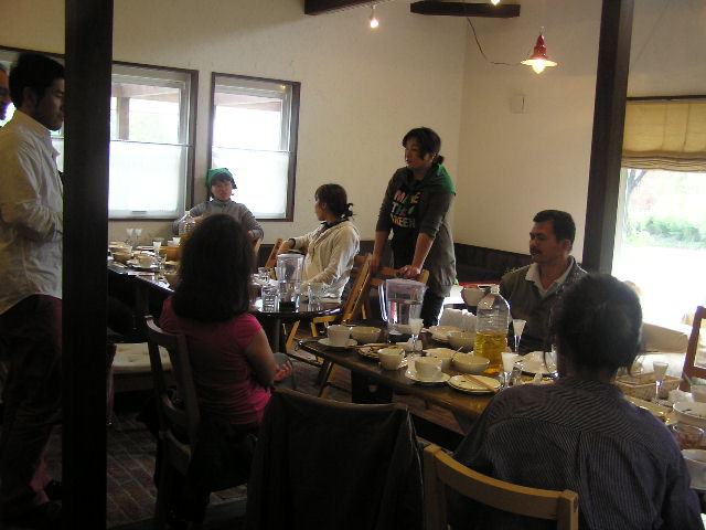 1993年に各国の農民運動の組織が集まって発足しました。日本の農民連は2005年に加入しています。ビア・カンペシーナでは「小規模で持続可能な農業は地球を冷やす」というスローガンのもとに、地球温暖化対策でも積極的に行動しています。 今日本で開かれているCOP10(生物多様性条約第10回締約国会議)に、ビア・カンペシーナからも代表を出しています。 そのビア・カンペシーナの代表団が、 ブログでも何度も紹介している「白毛餅」は、上伊那の農民連の製品です。代表団が上伊那へ視察に来るにあたって、昼食会場に有報堂が選ばれたのです。 とにかく和風のものが食べたいというお話だったので、今回は和風にしてみました。 もちろん白毛餅もあります。 更に白毛餅米を使った舞茸の炊き込みご飯もお出ししました。 今日の傑作は、 です。 何故傑作かというと、通訳の方がメニューの説明をしているときに「マッシュルームソース」と説明していたのです。厨房でスタッフが「マッシュルームソース!!」(゜ロ)ギョェと騒いでいます。なめこは英語圏にはないのでしょうか?今度なめこを英語で何と言うか調べてみたいと思います。 とてもタイトな日程であまりゆっくりしてもらえませんでしたが、どうにかご満足いただけたのではないかと思っています。料理のほかにも、店内の珪藻土の壁に稲が埋め込まれているのを見たり、私たちの自家工事でこの建物がつくられていることを知って驚いておられました。もっとお話しする時間があれば・・・、残念です。 ビア・カンペシーナの皆さん、今度はごゆっくりどうぞ。 ※10月の営業のお知らせは、9/30の記事にあります。ブログ右側の営業カレンダーもご覧下さい。 さぁ、続々出ますよ秋冬メニュー・・・ 冬期限定ドリンク第一弾は! お客様の「有報堂でチャイが飲みたい」というリクエストにお応えして、この秋からメニュー入りです! ロイヤルミルクティと同じように牛乳だけで煮出しています。茶葉だけでなく、香辛料を入れるのがロイヤルミルクティと違うところです。香辛料は、ジンジャー、クローブ、カルダモン、シナモンを配合しています。作ってみると、材料からして健康的な飲み物だなぁ・・・と思った有報堂B。 巷のチャイは、最初から砂糖も入れてつくるそうですが、有報堂のチャイは無糖です。お好みで、砂糖を入れてくださいね。スタッフの感想としては「砂糖はたっぷり入れるのが美味しい」です。甘さは自分で調節できたほうがいいですよね。 スパイスがいろいろ入っているので、とにかく温まります。マグカップにたっぷり入れてお出しします。この時期の夕方にぴったりです。・・・枯れ葉散る夕暮れは、ぜひ有報堂でチャイをどうぞ。 ※10/24(日)は、昼に大きな予約があるため通常営業は13時からとさせていただきます。ご了承ください。その他の10月の営業のお知らせは、9/30の記事にあります。ブログ右側の営業カレンダーもご覧下さい。 暑い時期には、あまりご用意できなかったテイクアウト商品。有報堂のパンやお菓子はただでさえ添加物ゼロなので、さらに暑いとすぐ傷んでしまうのです。 最近は涼しくなってきたので、わりと用意されています。そして、さりげなく新商品が置いてあったりします。 今日のテイクアウトの新商品は、 中身の写真を撮り忘れました。とても美味しそうな断面だったのに・・・食べちゃった。 今年は紅玉の仕入れに成功して、かなりの数を確保出来たので紅玉を使ったスイーツが炸裂しています。 その紅玉を皮つきのまま小さく切って煮て、シナモンを加えてパイ生地にはさみました。巷で売っているものより、りんごの酸味が強いと思います。せっかく甘酸っぱい紅玉を使っているので、甘くしすぎるのはもったいないし・・・形もあまり煮崩さずに残した状態にしています。 パイ生地もあまりバターの香りが強くなく、べたべたとせずにさっぱりとした後味でいくつでも食べられます!! 今日は朝9個つくったのが、15時過ぎには売り切れました。お買い上げの皆様ありがとうございました。そして急いで追加のりんごを煮ています・・・。そんなこんなであっという間に夕暮れ・・・日が短くなってきましたねぇ。 テイクアウト商品は、通常メニューと違っていつもあるとは限りません。レジ横をよくチェックして、忘れずにご購入くださいね。 ※10/24(日)は、昼に大きな予約があるため通常営業は13時からとさせていただきます。ご了承ください。その他の10月の営業のお知らせは、9/30の記事にあります。ブログ右側の営業カレンダーもご覧下さい。 先週の日曜日は、お祭りのフリマに出かけました。 カイロ部門は、ワンコインカイロをやりました。 大忙しでした。この中から誰か、定期的に通ってくれる人が出てくるといいのですが、果たして・・・ カフェ部門は、物販です。 豚汁、炊き込みご飯まで売らなければなりませんでした。 会場は火が使えなかったので、調理はすべて行く前