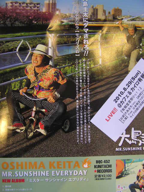 来る 8月29日日曜日11:00〜16:00に 「有報堂夏まつり2010 with大島圭太ビール片手にon the road」 を開催します。 とのコラボ企画です。 有報堂で何度かライブをしている、あの大島圭太が再びやってきます。 フリーマーケット(駐車場)とライブ(店内)を予定しています。(雨天決行の予定・・・) フリーマーケット出店者募集中!! 2m×2mのブースで、出店料は1ブース500円です。 先着15ブースまでとなります。 お問い合わせは、有報堂(0265)-(76)-4353まで ライブの出演者も募集中です。ライブは電磁波レスライブです。 生ビールやらかき氷を売ろうと張り切っている出店者もいますが、8月末の暑さはどうなることやら・・・ 有報堂初のフリーマーケット、色々お楽しみ企画も計画しますので、ぜひお越し下さい。 色々が決まり次第、今後も随時お知らせしますので、ブログを要チェックです。 ※誠に勝手ながら明日から6日まで臨時休業となります。ご了承ください。 ※8月の第1週と第2週の豆腐メニューは都合によりお休みとなります。 ※8月の営業のお知らせは、7/30の記事にあります。ブログ右側の営業カレンダーもご覧下さい。 |