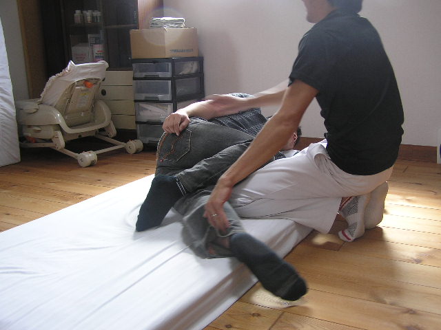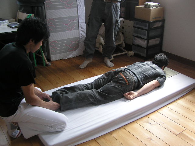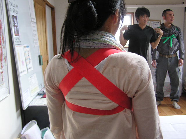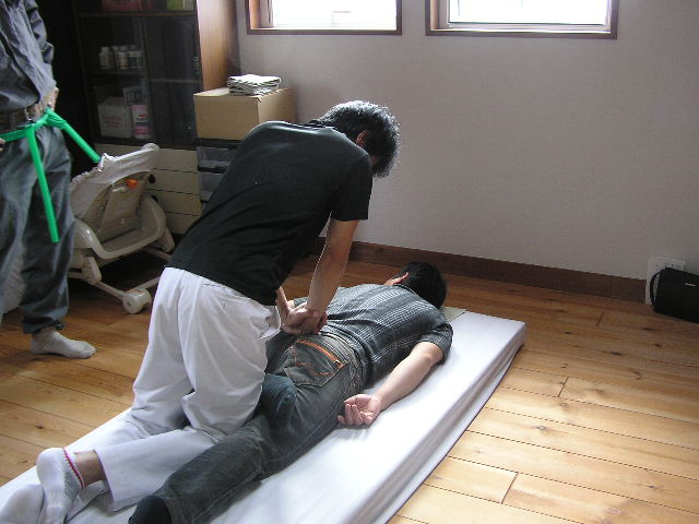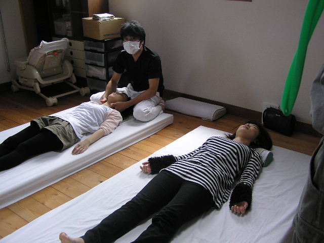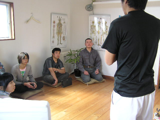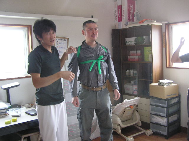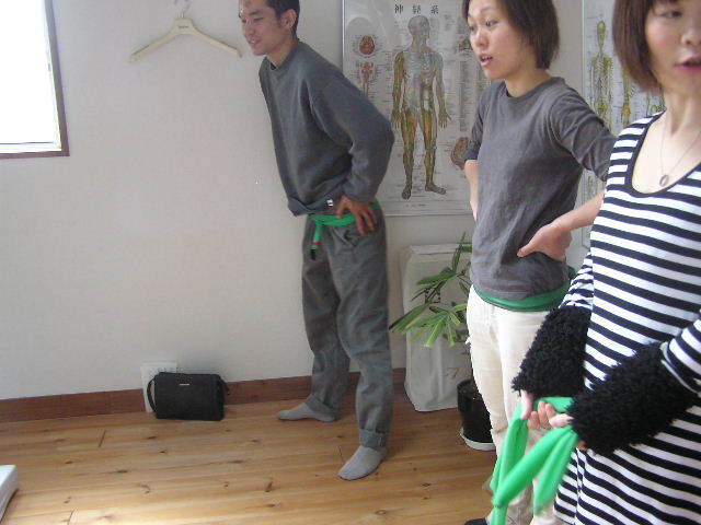 本日は朝から、業者仲間の皆さんがお仕事訪問企画で有報堂カイロプラクティック部門の見学にいらっしゃいました。(2009/10/29・12/13の記事も参照してください) まずは、「カイロプラクティックとは何か」など代表の話しをみんなで聞きます。 次は、施術体験をしながらの解説です。 耳の穴から肩、腰骨、膝、くるぶしの位置がまっすぐ一直線上にあるのが良い姿勢です。この大工さんは、左肩が下がって前に出ています。 右足の方が長く、左右が揃っていません。先生以外の人がみても揃っていないのが分かります。たいていの人は揃っていません。日々の生活や仕事の中でついてしまった癖のせいです。カイロプラクティックでは、そのずれを正常な位置に戻してあげる施術をします。 骨盤を整えると足の長さが揃います。しかし、100歩も歩けば元に戻ってしまうそうです。 そこで、BCBの出番です。BCBを使って体操をすることで、施術できれいに整えた骨格を維持することが出来ます。しかも、生ゴムは筋肉の代わりをして、生活習慣からついた癖を正常な動きに戻す働きをします。毎日体操をすることで、正常な動きになってくるそうです。 まずは、腰回しをします。 腰骨から5cm位下の骨盤にみどりのBCBを巻きます。足を肩幅に開いて、腰を左右同じ回数回します。最低30回ずつ回します。骨盤を固定せずに回すとかえって、骨盤がずれることもあるので、必ず骨盤を固定して回しましょう。実験台になった樵さんは、この腰回しの後、足が揃っていました。 次の運動は、肩回しです。 みどりのBCBをこのようにたすき掛けにして、後ろに肩をまわして肩胛骨を動かします。(みどりで強すぎる場合にはピンクのもので代用します) さて、みんなが運動をしている間も着々と施術が進んでいます。 首の運動もみんなでやってみます。運動用の枕を使ってストレッチです。 左は首の施術中で、右は首の体操中です。施術と体操と同じ効果が得られます。 朝から施術や体操をやってみんなすっきりした感じです。 これで一日仕事を頑張れそうです。 皆さんも有報堂カイロプラクティックで、体操や施術の体験をしてみてはどうでしょうか。 ※5月の営業のお知らせは、4/25の記事にあります。ブログ右側の営業カレンダーもご覧下さい。 今日の”みどりの・・・”は、 アスパラガスの美味しい季節になりました。これから6月上旬位までが旬です。 予約の前菜や 日替わりサンド などなど大活躍です。 皆さんのご家庭でもサラダや炒め物、天ぷら・フライなど、旬のアスパラはいろいろな食べ方で召し上がっているかと思います。 そんなとき、茹でるか焼くかなら、茹でるという方が多いのではないでしょうか。 しかし!ぜひお試しいただきたいのは「焼いて」火を通す方法です。 もちろん茹でても美味しいのですが、洗って硬い部分の皮をむいたらトースターなどで数分焼いてみてください。茹でたときよりもアスパラの旨味・甘みが凝縮して美味しさアップ!ですよ。 「みどりの」サンドイッチはアスパラがあるうちの限定メニューです。ぜひお早めにどうぞ。 ・・・有報堂周辺ではいちご狩りに代わって、アスパラ狩りなるものが始まっています。お金を払ってはさみ?を持ってアスパラを刈り取るという不思議な行為・・・。挑戦したことがないので興味津々です。体験したことがある方はぜひ情報をお寄せください。せっかくなら「みどりのゆび」で、店の敷地内にアスパラをにょきにょきと生やしてみたいものです。そうすれば自前でアスパラ狩りができるぞ・・・。 ※5月の営業のお知らせは、4/25の記事にあります。ブログ右側の営業カレンダーもご覧下さい。 今日の”みどりの・・・”は、 気温が高くなってきて、切り花の保ちが良くない時季になってきたので、「これを飾ったらどうでしょうか」とBさんから頂きました。ありがとうございました。 どれも「みどりのゆび」がなくても育ちます。(手がかかりません) そして です。 何故パキラにだけ名前があるかというと、兄がいるからです。 元々有報堂にはパキラ兄がいたため、パキラ君が二人に・・・。 それぞれ名前を付けることにしました。 「パキラは名字か、名前か」、「男名がいいか女名がいいか」「中性的な名前で」元々いたパキラ君に「翼」とつけたので、「キャプテン翼の弟の名前は?」「今思い出せない・・・」(大地君でした)などなどくだらないことで盛り上がっている有報堂は、今日も平和です。 みどりに囲まれてコーヒーを飲みながら、ゆっくり読書はいかがですか。 ※本日は夜貸切となります。(通常営業は19時まで)ご了承ください。その他の5月の営業のお知らせは、4/25の記事にあります。ブログ右側の営業カレンダーもご覧下さい。 今日の”みどりの・・・”は、 本日から販売開始の いよいよ暑い日も増えてきたので、冷たい飲み物が増殖中です。牛乳に、春限定スイーツの抹茶アイスを浮かべたフロートです。緑と白のコントラスト