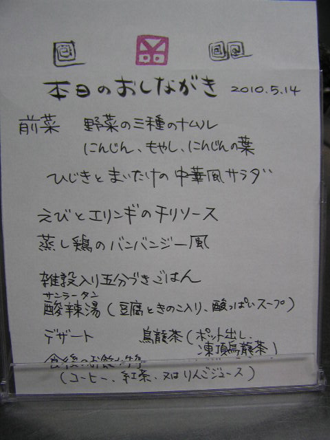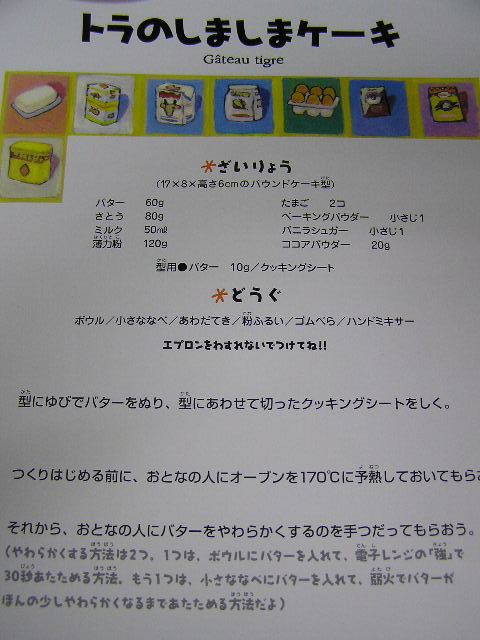 お品書きは 有報堂農園の無農薬無世話のにんじんと葉っぱです。にんじんの葉っぱがとてもやわらかく、ナムルにちょうど合いました。 サラダは 主菜は スープは これにご飯、デザート、食後の飲み物がついて2000円のコースです。今回は主菜を大皿盛りにして、好きなように取り分けていただくスタイルだったので、通常より主菜が1品多くついています。 今日の方々は、+350円で凍頂烏龍茶(ポット出しでおかわり自由)がつきました。 中華のコースはあまりやっておりませんが、コース料理はご予算・ご要望に出来るだけ沿うようにしております。今日のお客様は何度かご来店いただいている方でしたが、目新しかったのか中華・有報楼は予想以上にご好評をいただきました。メインのお料理が2種類あり、わいわいと取り分ける形式が受けたのかもしれません。 「有報楼」に限らず、和風・洋風などご要望にはできるだけ柔軟にお応えしていますので、皆さんも有報堂カフェでお食事はいかがですか。 ※5/16(日)は都合により臨時休業となります。ご了承ください。5月の営業のお知らせは、4/25の記事にあります。ブログ右側の営業カレンダーもご覧下さい。 有報堂カフェの手作りケーキ。まめやさん産休の関係で、「豆腐とナッツのケーキ」もしばらくお休みです。産休明けをお待ちください。その間、別のケーキをと考案している有報堂B…。ココア風味のものを考えて、そうだ!これにしようと思い立ったケーキがありました。 もとになっているのは… です。この絵本は有報堂の図書室のどこかにあります。 二人が卵や小麦粉まみれになりながらお菓子を作っています。 今回作るのは パウンドケーキですが、プレーン生地とココア生地を交互に重ねた、しましま模様のケーキです。 材料はバター、砂糖、ミルク、薄力粉、ココアパウダーなどなど…。しかし全く同じ材料では作りません。バターのかわりになたね油、砂糖も白く精製していない素精糖というふうに、よりヘルシーで安心安全の材料で作ってみました。(もちろんバターも、良いものを選べば安心安全ですが、ケーキ用にたくさん仕入れるのは大変なのです。) そして… 絵本の写真もこんな感じ。絵本の方が「ベンガルトラ」だとすると、有報堂のケーキのほうが若干「スマトラトラ」っぽいような…(単に切り方の問題ですね)。 そんなこんなで「トラのしましまケーキ」、単品¥450、ケーキセット¥700で明日から販売です。ぜひお試しください。 前出の『デザートブック』は、全部で20種類のデザートの作り方を紹介しています。どのデザートも、リサとガスパールの大好きなものばかり!だそうです。こんな風に絵本に出てくる料理やお菓子を再現してメニューにするのも、ブックカフェならでは。今後も積極的に作ってご提供していきたいと思います。乞うご期待!です。 ※5/16(日)は都合により臨時休業となります。ご了承ください。5月の営業のお知らせは、4/25の記事にあります。ブログ右側の営業カレンダーもご覧下さい。 毎週末にご好評いただいております「豆腐ときのこのどんぶり」と「豆乳プリン」ですが、豆腐工房まめやさんが産休育休に入る関係で、来週からしばらくお休みになります。見込みとしては、1ヶ月程度のお休みになる予定です。ご了承下さい。(まめやさんのお豆腐があまりにも美味しいので、他の豆腐屋さんの豆腐は使えないのです。) 再開する際はお知らせいたします。 今週末が、お休みに入る前の最後のチャンスです。 を食べたい人は、今週の金・土はぜひ有報堂にお越し下さい。数に限りがありますので、早いもの順です。絶対に食べたい!人は、早めにご来店を。 ※5/16(日)は都合により臨時休業となります。ご了承ください。5月の営業のお知らせは、4/25の記事にあります。ブログ右側の営業カレンダーもご覧下さい。 |