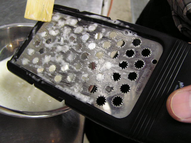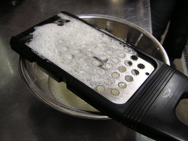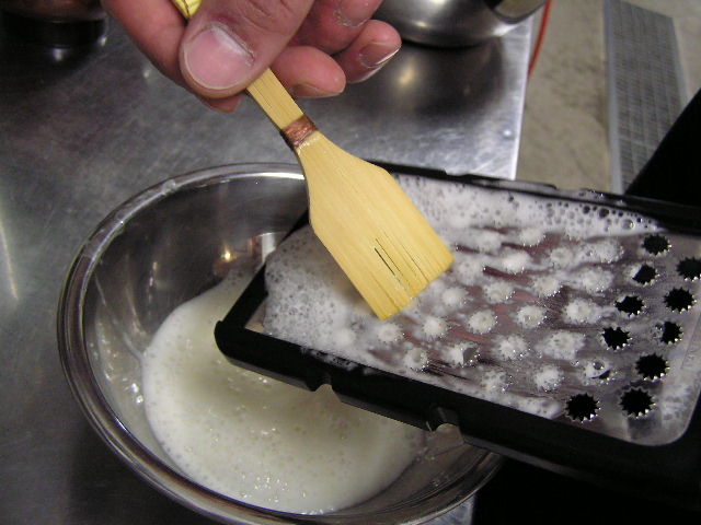 日々ブログを更新していますと、こういうことでもない限り文章を書かないなぁ…とつくづく感じます。手紙や葉書も同様に、わりとご無沙汰です。今やメールの時代、ペンを持って手紙を書く行為自体から遠ざかって久しいのは私だけではないはず…。 という皆さんのために、有報堂ではこのたび手紙キャンペーンをはじめることにしました。合い言葉は「有報堂で手紙を書こう」です。 友人のYさんにご協力いただいて用意しました。Yさんありがとうございます。とても綺麗に包装されています。よく見てみると 紙袋または透明な袋に入っています。紙袋はそれぞれ違ったスタンプが押されて、おしゃれな感じです。中身は… 封筒1枚と、便せんが2〜5枚入っています。価格帯は100〜200円です。ちょうど1通分がセットされています。 封筒は、便せんと同じデザインのものもあれば、このように白い封筒にハンコが押してあるものも。こんなシンプルな封筒もいいですね。 物販棚で箱に入れて売っています。箱から出して、じっくり品定めをしてください。種類がたくさんあって、迷うかも!? 1通分ずつのセットなので、買ってすぐ店内で書けばバッチリですね。もちろんペンもお貸しします。ご希望の方は、切手代を頂いて有報堂が投函するサービスも承ります(閉店後に最寄りのポストに投函しますので、急ぎでないものに限ります)。 ブックカフェなので、本や漫画をゆっくりと読んでいただくのが有報堂カフェの有意義な過ごし方ですが、ゆっくりと想いを巡らせながら手紙を書いてみるというのもまた、おすすめの過ごし方です。読んでみたら誰かに紹介したい本が見つかった!というときは、ぜひ手紙で伝えてみてはいかがですか。 手紙を書きながら長居するのにちょうどいい飲み物・ポットの番茶や紅茶もご用意しています。近々新メニュー(お茶)も登場予定。乞うご期待!です。 ※5月の営業のお知らせは、4/25の記事にあります。ブログ右側の営業カレンダーもご覧下さい。 今日のテイクアウトメニューには、新たなパンが・・・。 所謂田舎パンです。 強力粉に全粒粉を混ぜて焼きます。カフェ担当Bとしては、あのクリスピータイプのピザ(¥850)にも入っている全粒粉を積極的に使っていきたいという意向です。このカンパーニュなら、具は入れずに焼いているのでお食事パンとしても応用できると思っています。そのうち、予約メニューの中で登場するかもしれません。今日は試しにファットスプレッド(植物性油脂使用、マーガリン状のもの)を塗って食べてみましたが、洋風のコースなら肉料理のソースをぬぐって食べたりパスタソースにつけて食べたりするのはとても合いそうです。 味見をしながら全部食べてしまいたくなるぐらい美味しいカンパーニュは、 レジ横にて販売中です。残り少ないので、ぜひ買いたい!と言う方は、いますぐ有報堂へ。 先日はエビチリ・麻婆豆腐など中華料理炸裂で、「中華・有報楼」と化していた有報堂。今日は調子に乗ってベーカリー風に「ら・ゆうほのーれ」などとのたまっています。ベーカリーを名乗れるほど種類はありませんが、皆さんぜひレジ横のパンはチェックしてくださいね。 ※5月の営業のお知らせは、4/25の記事にあります。ブログ右側の営業カレンダーもご覧下さい。 冬の間はほとんどオーダーのなかったねばねば丼が、ゴールデンウィークに入ってからはかなりのハイペースでオーダーされています。夏かと思うくらい暑い日が続いていたので、涼しそうなねばねば丼を食べたくなったお客様が多かったのかもしれません。 そんなねばねば丼を作るときの強い味方は、 左側の竹製スクレーパーです。大きさがわかるように1/11の強い味方で紹介したスプーンを並べてみました。 竹製スクレーパーは、通常薬味などを下ろした後に使われていますが、長芋にも威力を発揮します。 ねばねば丼は、長芋をすりおろします。すりおろした後、長芋は これは、おろし金を叩くだけでは落ちません。 それを、この強い味方でこそげます。 まんべんなくこそげると 竹製スクレーパーのおかげで、長芋をきっちりこそげられて余さず使い切れます。おろし金を綺麗にできるので、洗うときの手間や水の使用量も減ります。まさしく強い味方です。 以前は箸などでおろし金の穴を1個1個つついたりして落としていましたが、なかなかきれいになりませんでした。百貨店のキッチン用品売り場でこれを見つけて以来、とてもお世話になっています。竹製なので変質しにくく丈夫で、洗ってすぐ乾くので重宝しています。実は中国製なので、日本製があればなぁと思い道具の買い付けに行ったときにはチェックしています。 竹製品と言えばざるやしゃもじ、有報堂ではお客様に出す箸も竹製品です。竹細工に限りませんが、こういう身近な道具ひとつとっても、なるべく国産のものを使っていきたいなぁと考えています。 竹製品に思いを馳せながらねばねば丼を食べに、有報堂にい