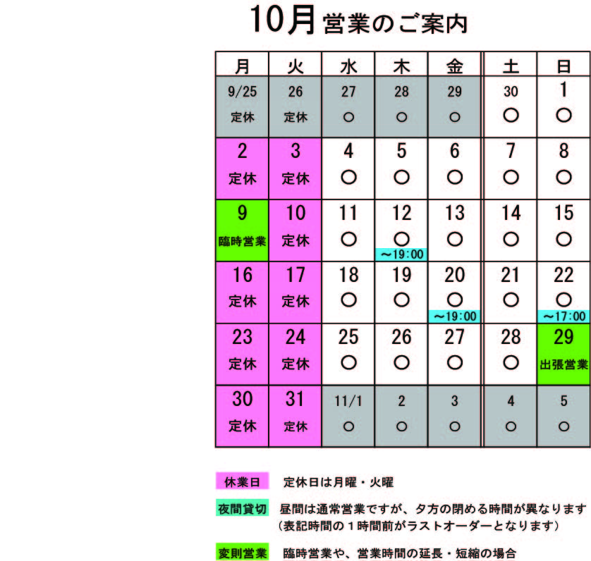 営業カレンダー