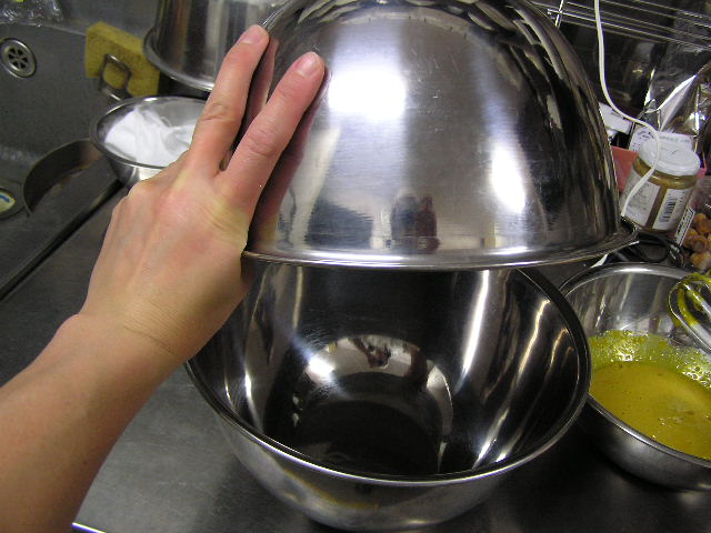 料理本は何かと不思議な例えが多いと思いませんか。その一つ、「耳たぶくらいの硬さ」。よく白玉を作る場合に出てきます。白玉粉をこねるときに、自分の耳たぶと同じくらいの硬さに…。 しかし、考えてみると白玉粉をこねながら自分の耳たぶはどのくらいの硬さか?ということはすぐに思い出せません。だからといってこねているときに耳たぶをさわるのは調理上ちょっと不衛生だし…。福耳かそうでないかでも違ってくるのではないか!?といろいろ考えると一般的な例えではないような…。と、そろそろ卵白が泡立ちそうです。 そしてさらに驚くべき例えを思い出しました! 何かの料理本で見たんですが、メレンゲの泡立ての際に、何と!「逆さにしても落ちてこない固さに泡立てる」と書いてあったのです。お菓子をつくるために材料を正確に計量し、真面目に手順どおりやっているときに、せっかく泡立てたメレンゲを逆さにできるでしょうか?!とても大胆な例えです。 しかし、例えた人がいるということは逆さにして落ちてこなかったというわけですから、試みる価値はあるかも? …と思って、気の向くままにやってみました。(時間はあまりなかったけれど) これで、例えどおりのメレンゲの泡立て成功!です。 しかし、毎回こうやって確認するわけにはいかないですよねぇ・・・。 ちなみに有報堂ブックスには、こういった「試み」をしまくった本があります。 とてつもなく、くだらなくて面白い本です。 ぜひこの「ココロミ」を読みにおいでください(笑)。 有報堂カフェのシフォンケーキのメレンゲは普段は逆さにせず泡立てを終了しているので、落ちたりしていることはありません!安心安全、ぜひお買い求めください。 ※もうこんな時間ですが、明日はバンクーバーオリンピック企画スポーツカフェの最終日です。(パラリンピックは検討中)有終の美を飾るべく9:00〜営業いたします。フィギュアスケートのエキシビジョンからスタートです。ぜひお越し下さい。 ドリンク・スイーツメニューは、9:00〜オーダー可能です。11:30より前にご飯ものなどのメニューをご希望の方は、仕込みの都合でできるものが限られますのでスタッフまでお尋ね下さい。 ※3月の営業のお知らせは2/24の記事にあります。ブログ右側の営業カレンダーもご覧下さい。 突然暖かくなりましたね。すっかり春です。 今日はAさんから 今日のお昼予約の方には、 をお出ししました。今年初の明日葉です。春ですね。明日葉は今から5月位までが旬です。天ぷらにするのが一番美味しいと言われていますが、煮浸しも美味しいです。 気温以外にも春を感じた一日でした。 でもウインタースポーツ真っ盛りです。 明日はお客様のご要望もあり、女子フィギュアスケートフリーの放映のため10:00〜スポーツカフェを営業いたします。 ドリンク・スイーツメニューは、10:00〜オーダー可能です。11:30より前にご飯ものなどのメニューをご希望の方は、仕込みの都合でできるものが限られますのでスタッフまでお尋ね下さい。 ※2/27(土)18:30〜貸切となるため、17:30までの営業となります(L.O.は16:30です)。ご了承下さい。2月の営業のお知らせは1/28に、3月の営業のお知らせは2/24の記事にあります。ブログ右側の営業カレンダーもご覧下さい。 お客さんは大盛り上がりです。 「真央ちゃん」「キム・ヨナちゃん」とみんながお母さんです。 今日のオリンピック長居セットの (上)左から小松菜ゴママヨネーズ、生チョコスプレッド、紅玉のジャム (下)左から白菜・えりんぎ・ソーセージのケチャップ炒め、バナナ・アーモンド、ヨーグルトクリーム です。 クレープは5枚ですが、トッピングは6皿・・・。何故でしょうか? 生チョコバナナで一品と考えていたんですが、お皿に一緒にのせてしまうとあまり綺麗ではないのと、たくさんのせられないので、分けてのせてみました。 なので、組み合わせは生チョコ+バナナではなく、ヨーグルトクリーム+バナナやジャム+バナナでもお客様のお好みでトッピング出来ます。(アーモンドも同様です)おかず系には合わないと思いますが、もしもなら試してみて下さい。試した人はぜひご感想を。6皿のトッピングを組み合わせて、甘い系を食べてからおかず系、そしてまた甘い系・・・と、5枚のクレープで皆さん楽しく悩みながら召し上がっていらっしゃいます。1枚のクレープを器用に半分に切って、10回分にして堪能している方もいます。トッピングで何通りも楽しめるので、とてもおすすめです。 バンクーバーオリンピックも残すところ後5日、皆さんも有報堂でオリンピックを見ながらクレープはいかがですか? ※2/27(土)18:30〜貸切となるため、17:30までの営業となります(L.O.は16:30です)。ご了承下さい。2月の営業のお知らせは1/28に、3月の営業のお知らせは本日の記事にあります。ブログ右側の営業カレンダーもご覧下さい。 3月の営業のお知らせです。 月・火は定休日ですが、ハッピーマンデーの関係で変則営業もあります