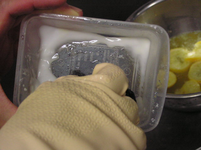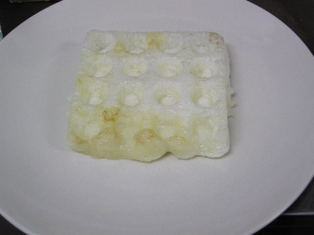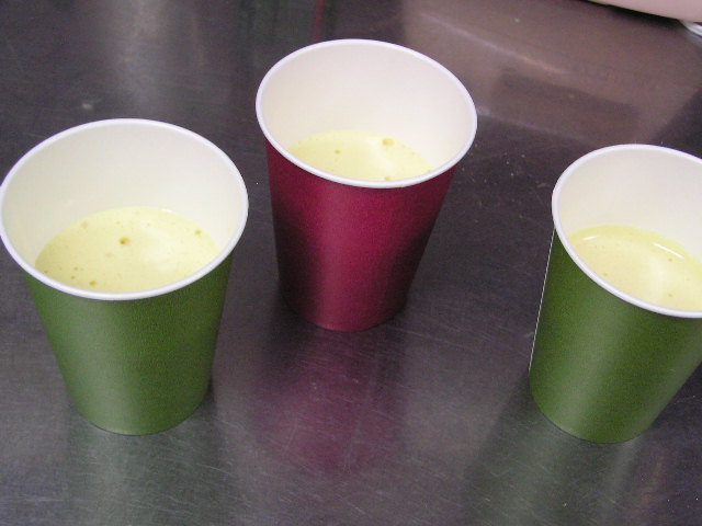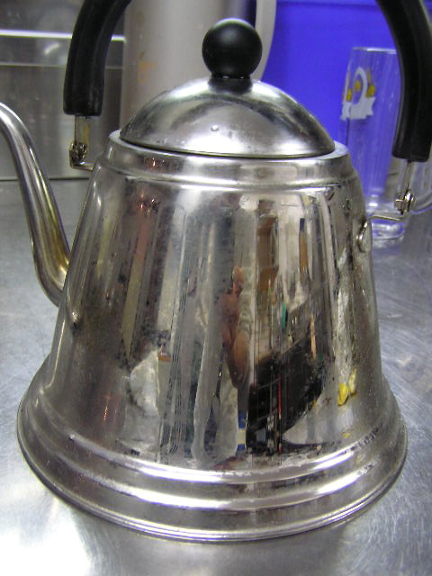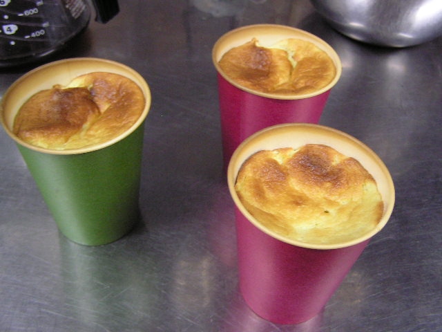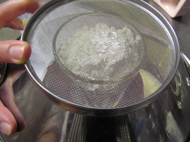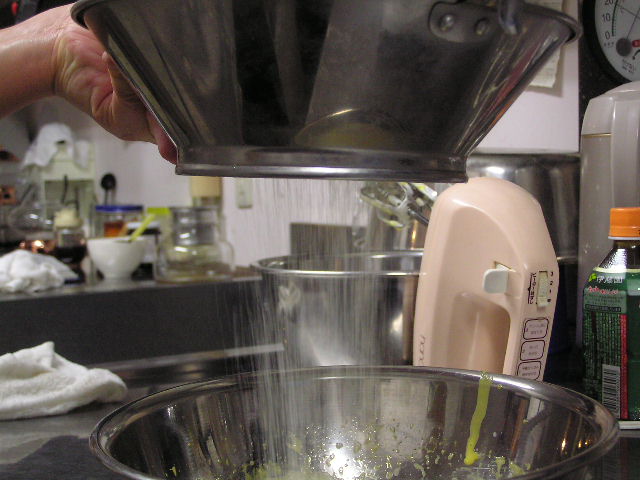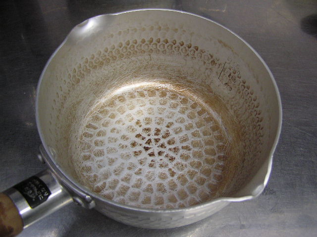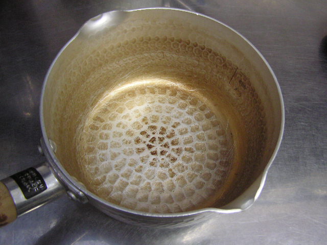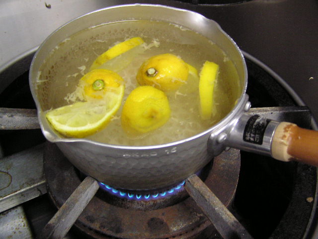 お菓子づくりで体力のいる工程…そのひとつに「粉ふるい」があります。製菓の道具としてはハンドルのついた計量カップ状のものがありますが、通常ご家庭でケーキなどを作る際には、丸いこし網とか粉ふるいのざるに粉をあけて手でゆすってふるう、のが一般的ではないでしょうか。しかし大量にふるう場合はもちろんのこと、あのゆする作業で腕を酷使しますね。 今回は有報堂で実践している、とても楽に粉ふるいができるワザをご紹介します。 まず、何でもよいのでグラスを用意します。 いつも使っている粉ふるいと、粉をふるい入れたい容器を用意します。有報堂の粉ふるい容器はフライパンのように持ち手のついたものです。写真はシフォンケーキを作っているので、この黄色い液体(卵黄・砂糖・なたね油・牛乳を混ぜたもの)に直接粉をふるい入れることにします。 このようにふるいの底をグラスの上辺にぴっちり当てて、隙間からこぼれないようにします。 そのまま密着させた状態でひっくり返し、グラスを網の上で動かして粉を下へ落とします。 最後はグラス内に残った粉をグラスのふちを使って落としきります。 この方法だとふるいを揺する腕の運動よりも少ない力で、とても早く粉がふるえます。しかも、ゆすっているうちに粉が容器の外へはみだしてこぼれることもありません。ぜひおためしください! これは粉を入れて混ぜたあとのシフォンケーキを、これから型に入れて焼くところです。テイクアウト用なので、紙コップに入れます。 「えっ、紙コップ?」と聞かれますが、その通りです。「コップがこげてない!」と驚かれますが、コップが燃えてしまうことはありません。ちょっと小さめでおみやげには最適です。ご来店の際はぜひチェックを!! バンクーバーオリンピック開催期間中のため、明日(もう既に今日ですが・・・)・明後日の土・日は9:00〜スポーツカフェをオープンします。その他、お客様のご要望やスタッフの独断と偏見で、オープン・クローズ時間が変動します。(決まり次第随時お知らせをします) ドリンク・スイーツメニューは、9:00〜オーダー可能です。11:30より前にご飯ものなどのメニューをご希望の方は、仕込みの都合でできるものが限られますのでスタッフまでお尋ね下さい。 ※2/27(土)18:30〜貸切となるため、17:30までの営業となります(L.O.は16:30です)。ご了承下さい。その他の営業のお知らせは、1/28の記事にあります。ブログ右側の営業カレンダーもご覧下さい。 国産レモンフェア中につき、レモンのへた・皮などが残るので、有効活用しようと。 まず、やかん わかりづらいかもしれませんが、こする前の写真は油膜があり曇っていますが、こすった後の写真はやかんに撮影姿が映り込んでいます(笑) 通常は油汚れは重曹でこすってきれいにしています。今回はレモンなのでおそうじ後はレモンの香りがしていい感じです。 今度は鍋 レモン+重曹で しかしもう少し… エコなおそうじとしては、油汚れには重曹、水垢には酢というのが一般的ですが、アルミの鍋はどうしても使っているうちに黒ずんでくるので、酸性のものでおそうじするといいらしいです。 ご家庭でレモンが残ったら、ぜひお試しください。 ※2/27(土)18:30〜貸切となるため、17:30までの営業となります(L.O.は16:30です)。ご了承下さい。その他の営業のお知らせは、1/28の記事にあります。ブログ右側の営業カレンダーもご覧下さい。 期間限定スイーツのモッフルが、定番メニュー入りします! 昨年12月からご提供しているモッフルですが、このあたりではわりと珍しいのか、 有報堂としても、オープン当時から地元産の「白毛餅」を知ってもらおうと餅メニューを展開してきました。餅メニューを増やせるのは嬉しいことです。そこで、今までの 焼きたてモッフルに黒蜜をかけ、バナナと黒ごまきな粉、バニラアイスをトッピング。ちょっと溶けたアイスとバナナ・きな粉を、もちもちしたモッフルにからめてお召し上がり下さい。(今までの「キウイとアイス」はまもなく終了となります) モッフルは白毛餅のおいしさと硬くなりにくい特長を活かせるスイーツなので、定番メニューとしてトッピングの種類を増やしたり変えたりしながらおすすめしていきたいと思います。 しかも、お餅なのでおなかにたまる!?スイーツです。小食の方ならお昼がわりになりそうなくらいです(たくさん食べる有報堂スタッフにはおやつですが…)。ご注文の際には、ボリューム(もち2個使用)にご注意ください。 お餅をお正月だけの食べ物にしておくのはもったいないなと思っています。白毛餅は通年で販売中、有報堂でも取り扱っていますのでぜひお試し下さい。 ※本日は19:00〜貸切となるため、18:00までの営業となります(L.O.は17:00です)。2/27(土)18:30〜貸切となるため、17:30までの営業となります(L.O.は16:30です)。ご了承下さい。その他の営業のお知らせは、1/28の記事にあります。ブログ右側の営業カレンダーもご覧下さい。 今