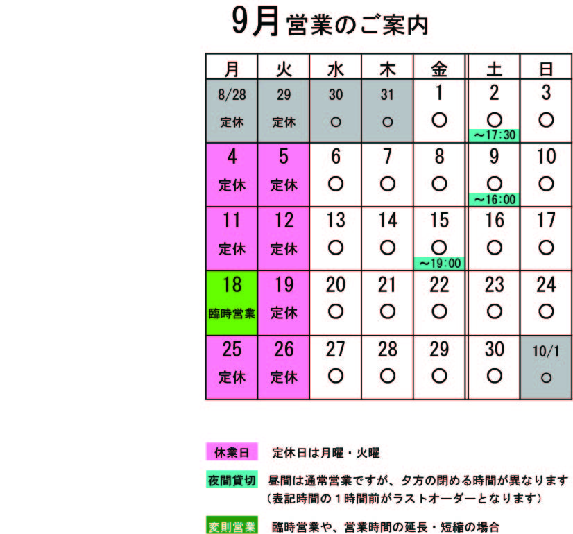 営業カレンダー