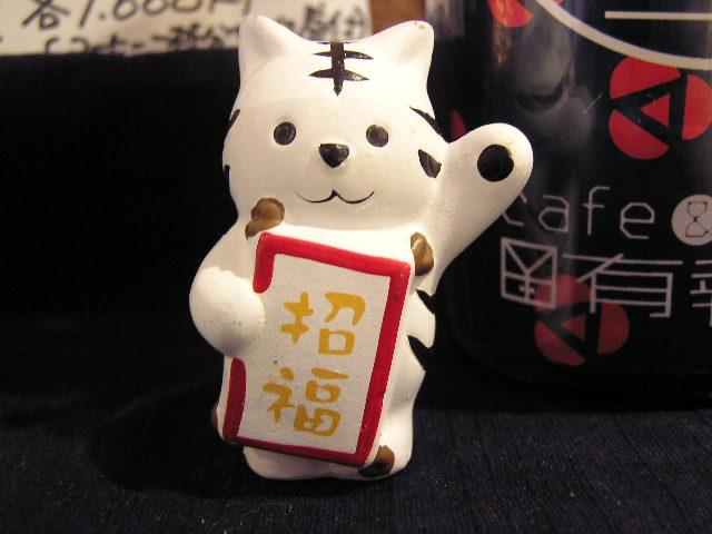 そのままでは鉄の板ですが、俗に鉄板が硬いことから「堅い」にかけて「間違いない」「確実な」などという意味で用いられているようです。特に芸能界なんかでは確実に笑いがとれる話を指して「鉄板ネタ」と言ったりするらしい…。大御所芸人の定番ギャグのことを「○○(芸人の名前)の鉄板」と言うとか。ちなみに私が目撃したのはファッション雑誌で「鉄板スタイル」。最強の(?)、これを着ていれば間違いないというコーディネートのことを指して使っていました。書籍のタイトルでも『1時間で御社の売上を伸ばす販促鉄板ワザ40』とか『お笑い芸人直伝! 鉄板フレーズ100選シチュエーション別“ハズさない”ウケネタ集』などと使われています。差し詰め「鬼に金棒」といったところでしょうか。 それで考えました。「有報堂カフェの鉄板はテフロンだ!」と…。微妙に意味が通じるようなそうでないような。(でも、有報堂の商品はどれもデュポン社のものではないのです・・・、しかしポリテトラフルオロエチレンよりかなり一般化しているので、この記事ではテフロンで統一します。) 厨房ではテフロン加工のものにかなりお世話になっているからです。フライパン、ピザ皿、炊飯器の内釜などなど。 有報堂カフェでは肉料理をほとんどしないので、野菜に火を通したりするとき、油を全く使わないで済むテフロンのフライパンは大活躍です。 ピザ皿はこんな風に ピザもお菓子も、パリッと香ばしく焼き上がりとてもいい感じです。 テフロン加工というのは、フッ素原子と炭素原子からなるフッ化炭素樹脂を使っています。これが化学的にとても安定で耐熱性・耐薬品性に優れているそうです。油が少なくても素材がくっつきにくいので扱いやすいです。実はテフロン加工のフライパンも、中身は鉄板だったりします。 しかし有報堂では鉄のフライパンの登場回数は少ないのです。鉄は最強なのに・・・鉄の方が圧倒的に美味しい炒め物が出来ます。有報堂はヘルシーなので、鉄の出番が中々ね。 これは中華鍋 おまけに…有報堂の「金棒」は、「金棒」ならぬこの じゃがいもの火通りを確かめたり、ケーキの焼き具合を確かめるために刺して使います。洗って何度も使えるので、竹串よりも格段に便利で、経済的です。 皆さんのご家庭の台所、「鉄板は鉄板」ですか?それとも「鉄板はテフロン」ですか? ※ 1/24(日)は11:30〜15:00の間、客席西側のテーブル席がすべて予約席となっております。座席が限られますのでご了承ください。 ※ 1/30(土)は都合により16時閉店(15時ラストオーダー)となっております。何卒ご了承ください。その他変則営業は随時お知らせをいたします。 ※1月の営業のお知らせは12/27の記事にあります。ブログ右側の営業カレンダーもご覧下さい。 有報堂には、お辞儀猫の他にも 猫たちは、レジカウンターの目立つところにいますが、 実は、 しかも、1匹ではありません。(ひっそり人間もいます) 牛は日々、牛歩で歩んでいます。 この微妙な動きに気がついた人はいるでしょうか。 有報堂で、牛と虎を探して見てください。 ※ 1/24(日)は11:30〜15:00の間、客席西側のテーブル席がすべて予約席となっております。座席が限られますのでご了承ください。 ※ 1/30(土)は都合により16時閉店(15時ラストオーダー)となっております。何卒ご了承ください。その他変則営業は随時お知らせをいたします。 ※1月の営業のお知らせは12/27の記事にあります。ブログ右側の営業カレンダーもご覧下さい。 今年は寅年です。 というわけで虎本を。 教科書にも載っていた中島敦「山月記」 波津彬子『幻想綺帖』一(ソノラマコミックス)に収録されています。波津彬子はとても綺麗な絵を描く漫画家で、泉鏡花のような幻想物を描くとぴったりくる人です。この『幻想綺帖』を手にしたときも「山月記」が一番最初で意外な気もしましたが、割としっくりきていました。が、この本の4話目に入っている泉鏡花の「第二菎蒻本」のほうがやっぱり良かった・・・です。 に「山月記」が載っています。こちらは当然中島敦の原文がそのまま載っているので、格調高い文章が読めます。綺麗な短編は、寝る前に読むのに最適ですね。討ち死にしないで済みますし(笑)、幸福な気持ちになって眠れます。この本は、浅田次郎が「心に残る物語」として選んだ13の短編が載っています。森鴎外、谷崎潤一郎、芥川龍之介、川端康成、中島敦、山本周五郎、永井龍男、井上靖、松本清張、梅崎春生、立原正秋、小泉八雲の作品が収録されています。どれも寝る前に最適な話ではありますが、有報堂のペチカ前のロッキングチェアで読むことをお勧めします。これにコーヒーがあれば至福の時を過ごせます。悪天候が続いていますが、ちょいと一服&読書にぜひご来店ください。 ※ 1/24(日)は11:30〜15:00の間、客席西側のテーブル席がすべて予約席となっております。座席が限られますのでご了承ください。 ※ 1/30(土)は都合により16時閉店(15時ラ