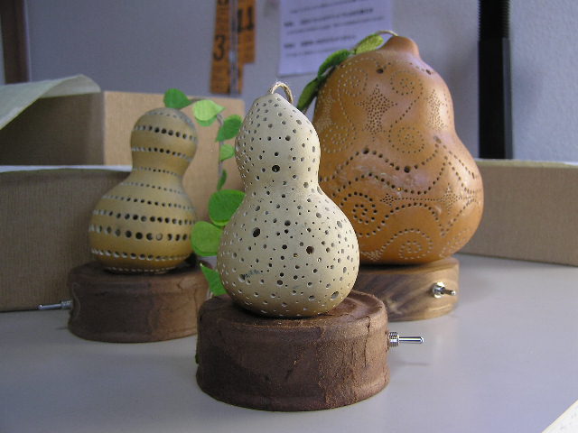 9/22の軽トラ市でお知り合いになった宮田村の善積農園さんの 軽トラ市で1本買って試飲してみたらとっても美味しかったので、有報堂でも提供することにしました。 1本(1000ml)のリンゴジュースを作るのに、5玉のリンゴを使っています。 保存料無添加のジュースです。 軽トラ市で買ったものは、サンつがるのリンゴジュースでしたが、今は紅玉のリンゴジュースです。11月は、信濃スイートとその他2・3種類のミックス、12月末頃からふじのリンゴジュースになるそうです。それに合わせて有報堂のリンゴジュースも切り替えていきます。それぞれの味をぜひ試してみてください。 紅玉のジュースは数が少ないのでお早めにご来店ください。 ※最新の営業のお知らせは、9/27の記事にあります。 ブログ右側の営業カレンダーもご覧下さい。 これはバターナッツかぼちゃ(9/23の記事参照)ではなく、 ニッチにいれるとこんな瓢箪ワールドが広がります。 これは、尨(むく)さんという瓢箪灯作家さんの作品です。 この瓢箪ランプは、尨さんがご自分で育てた瓢箪で作っています。全て手作りです。ちょっと下世話な話しですが、瓢箪灯のお値段は、瓢箪の大きさより穴の数で決まります。完全手作りのため作った時間が最大の経費です。 尨さんは、有報堂のある西箕輪で活動されています。 以前から知り合いで、有報堂もオープンの時からご利用いただいていましたが、このような魔術師だったとは・・・最近知りました。 実は有報堂のあまり表だって宣伝していない目標(コンセプト)というか、有報堂を作るにあたって持っていた思いと言えばよいのか、そんなものの一つに、「自分の好きなことをやって「健康で文化的な最低限度の生活」を送ろう」があります。そのために頑張っている人を応援して(協力して)いこうと考えています。このブログでも紹介している「伊那谷里山くらし研究所」、豆腐の「まめや」さん、酪農ヘルパーのKさん始め色々な人たちと、そんな思いで協力(応援)しあっています。そんなお仲間にぜひ尨さんもということで、瓢箪灯をこれからは有報堂でも扱っていこうと思っています。 販売も検討中ですが、イベント時のレンタルとデコレーションのお仕事もなさっているそうなので、手始めに、11月23日(日)の「勤労感謝の日に遊べ!」有報堂Liveで瓢箪灯デコレーションが登場します。音楽を聴きながら瓢箪の光に包まれてみるのはどうでしょうか。ぜひご来店下さい。チケット絶賛発売中!!(ライブの詳細は、9/25付の記事にあります) ※最新の営業のお知らせは、9/27の記事にあります。 ブログ右側の営業カレンダーもご覧下さい。 |