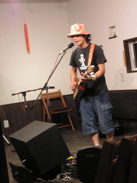みやちゃんさんのコメントにもあったように、次のライブの日程が決まっています。 日時 11月23日(月)勤労感謝の日 open18:30 start19:00 料金 前売り1,500円、当日1,700円(ワンドリンク・軽食付) 定員 30名(売切御免!早い者勝ち) 今回はチケット制です。有報堂でも販売しますので詳しくはスタッフまで。 有報堂初ライブの舞台を飾った大島圭太さんが再び有報堂にやってきます。 前回のライブの報告をしないまま次の企画が・・・ 8月のツアーのタイトルが『平和とロックについて』でした。今回のライブのテーマは『遊ぶ』だそうです。 この写真の楽器は、ギターではありませんよ。(見ればわかりますね)一五一会という楽器です。沖縄三味線とギターがくっついたもの。両方の長所を併せ持つ楽器で、指一本でコードを押さえられるのが売りです。暖かい音色でしたよ。大島さんは一五一会のインストラクターもされています。いつか有報堂でも教えてもらいたいものです。 11月23日の共演は 深瀬人寬(絵本のようにあたたかく、やわらかい唄(どんな・・・)) まだ有報堂では歌っていないので、写真はありませんが、深瀬さんは伊那では一番集客出来るという噂も。 今度のライブもおおいに期待です。ぜひお越し下さい。 ワンドリンクは、5種類くらいのなかから選べます。 アルコール類や、フードメニューは、別料金で承ります。 (ただし演奏中はフードメニューはご遠慮ください。演奏後に対応します) 秋の夜長に、ライブはいかがですか。ご来店お待ちしています。 ライブ・演劇等の企画も大いに歓迎!スタッフにご相談ください。 ※9月26日(土)17:00〜貸切となるため16:00までの営業となります。(L.O.は15:00です)ご了承下さい。その他の営業のお知らせは、8/28の記事にあります。 ブログ右側の営業カレンダーもご覧下さい。