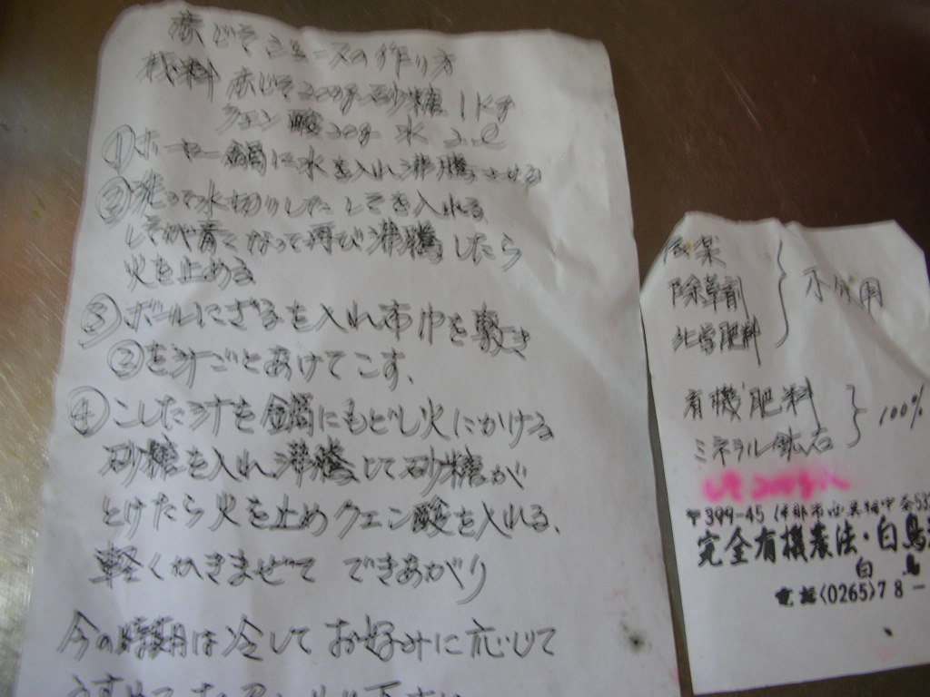 赤しそジュースの作り方が同封されていました。初めて作るにも安心です。
